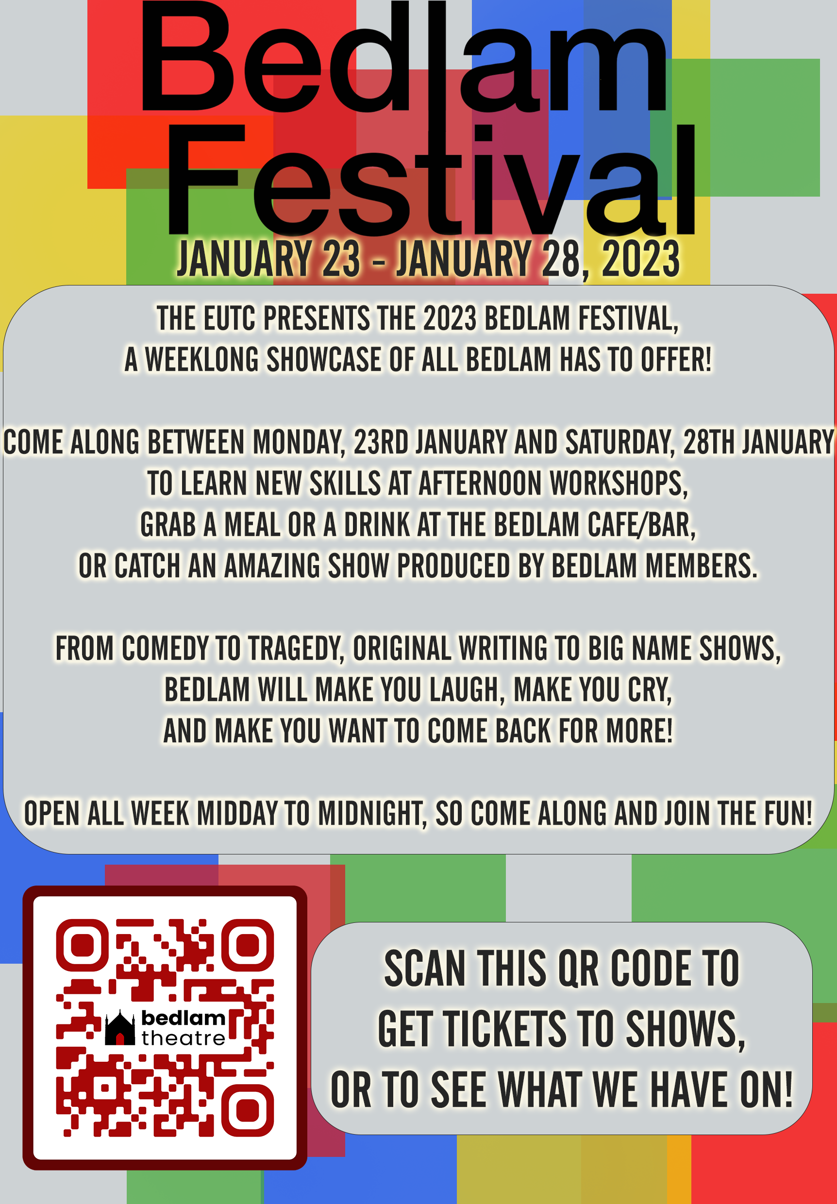 The EUTC presents the 2023 Bedlam Festival, a weeklong showcase of all Bedlam has to offer!