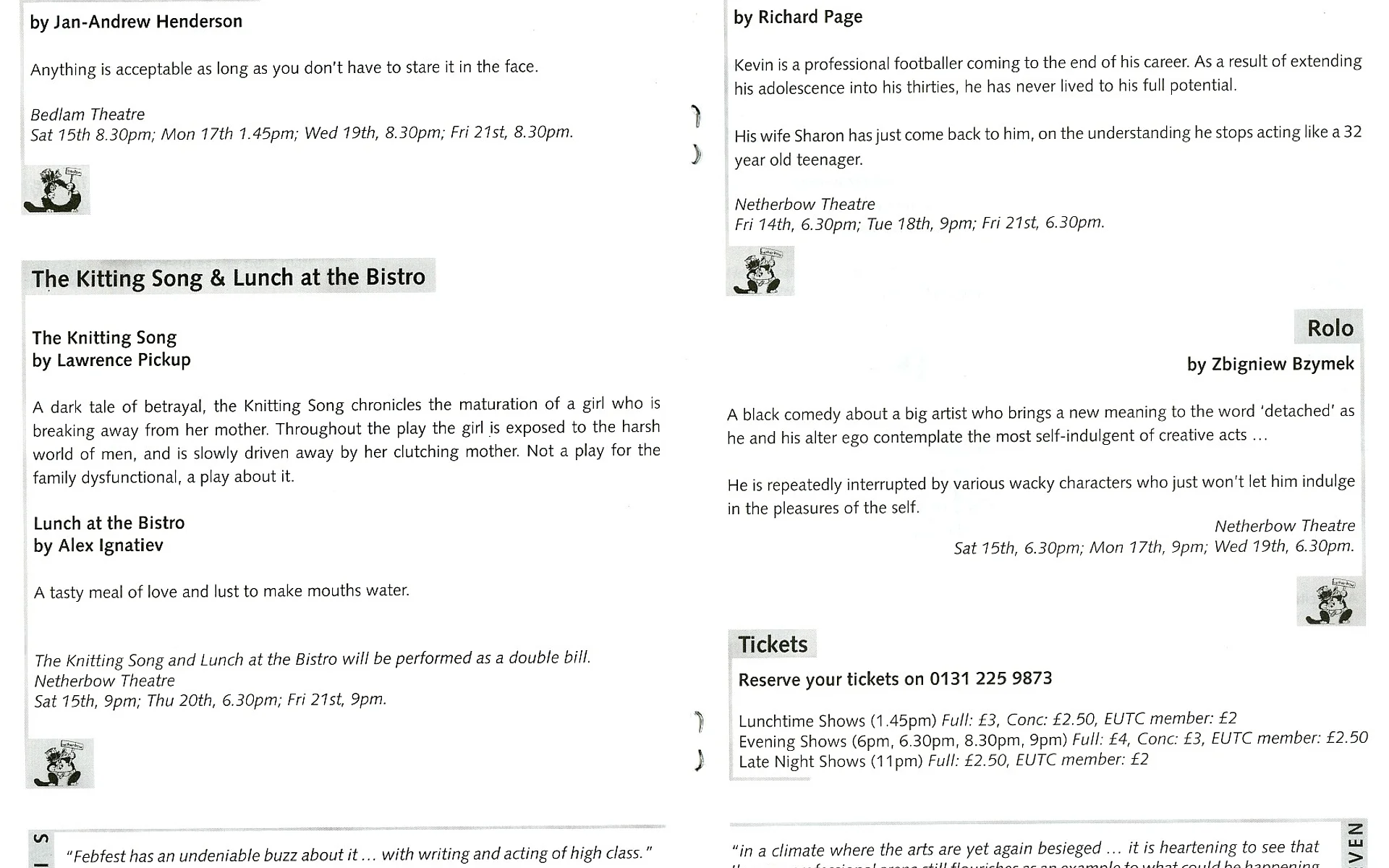 This festival finished on Saturday 22 February 1997, and this page is being kept for archival purposes only.
