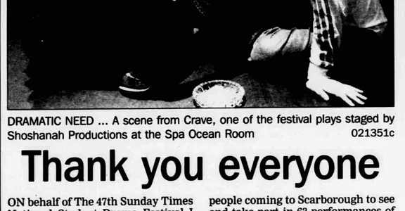 Sponsors: The Sunday Times, The Mackintosh Foundation, Esme Fairbairn Foundation, Arts Council of England, Scarborough Borough Council, The Calouste Gulbenkian Foundation & Foundation for Sport and the Arts; financially assisted by HSBC;