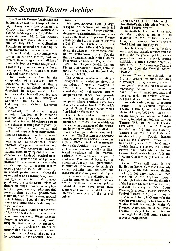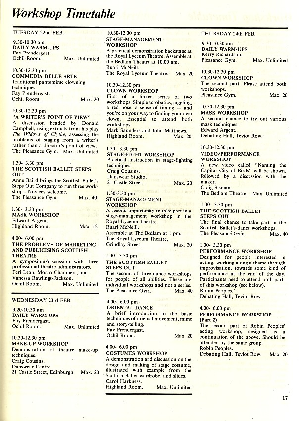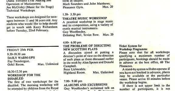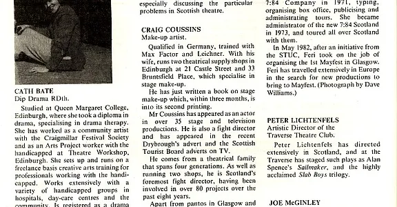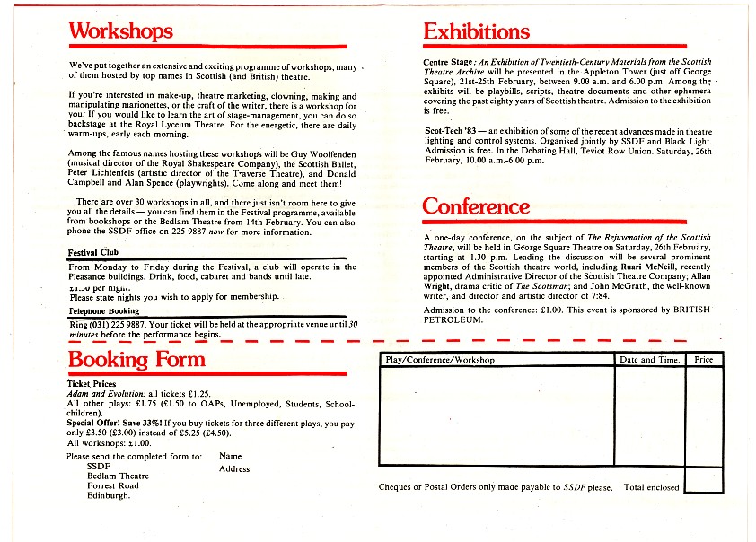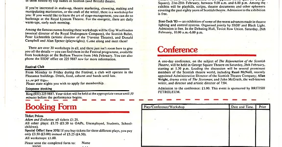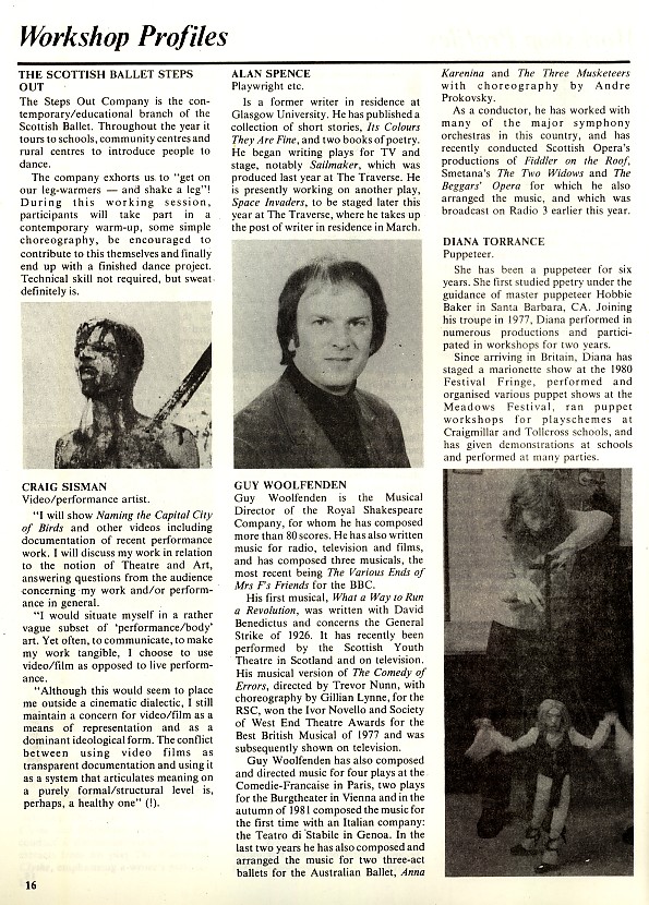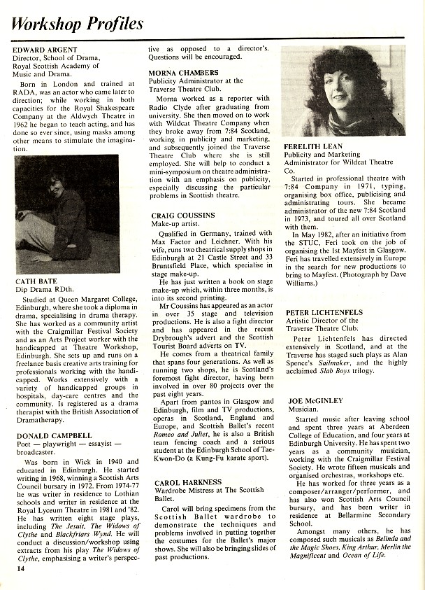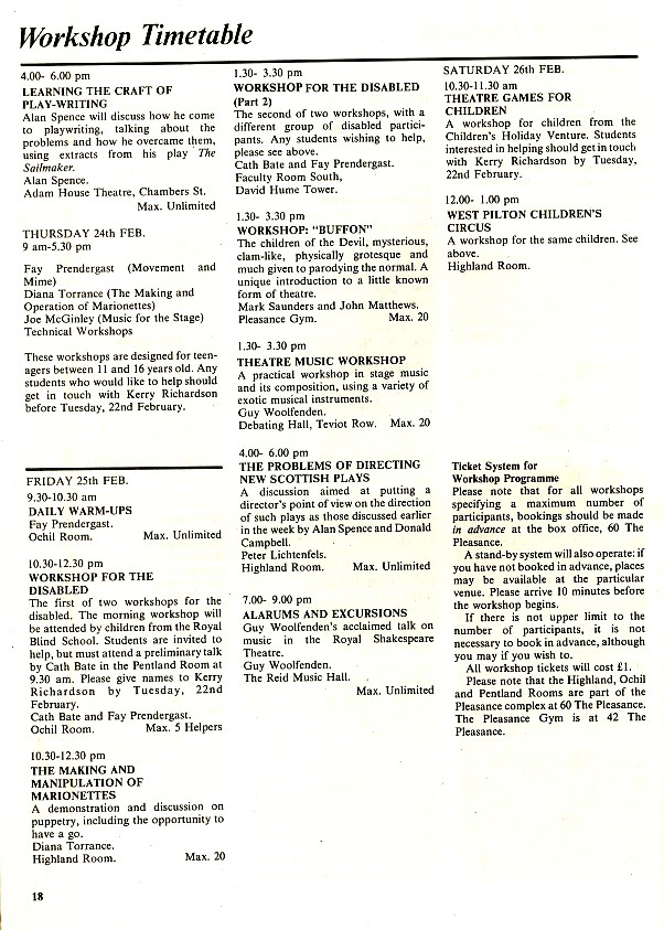 - Learning the Craft of Play Writing (Alan Spence, Adam House Theatre)