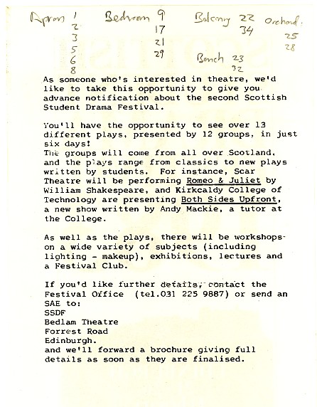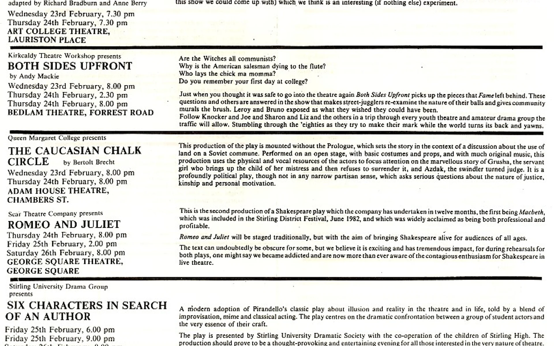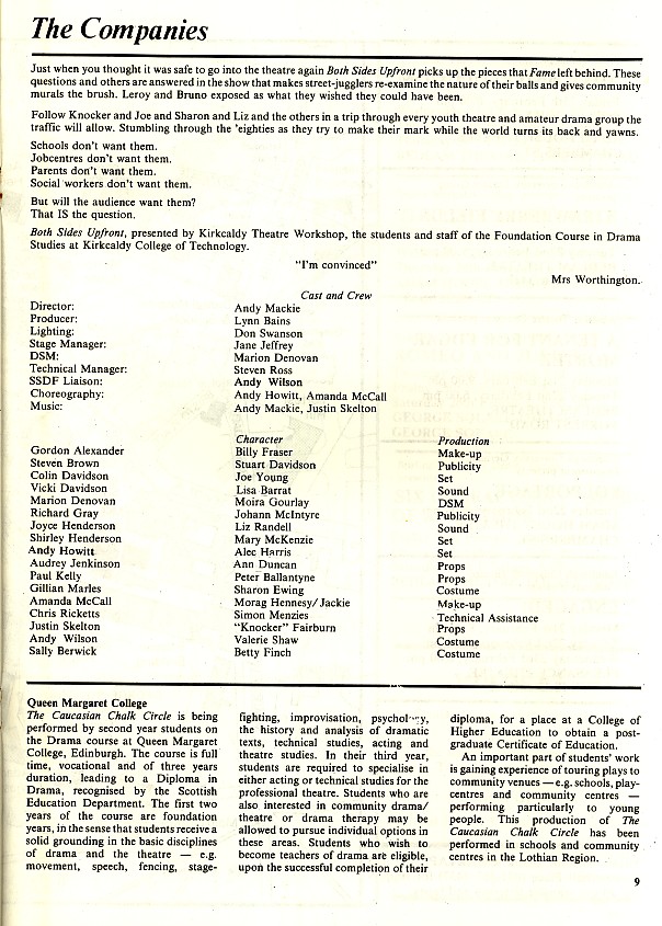 - Both Sides Upfront (Kirkcaldy Theatre Workshop, Bedlam)