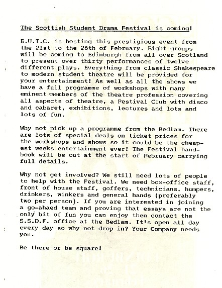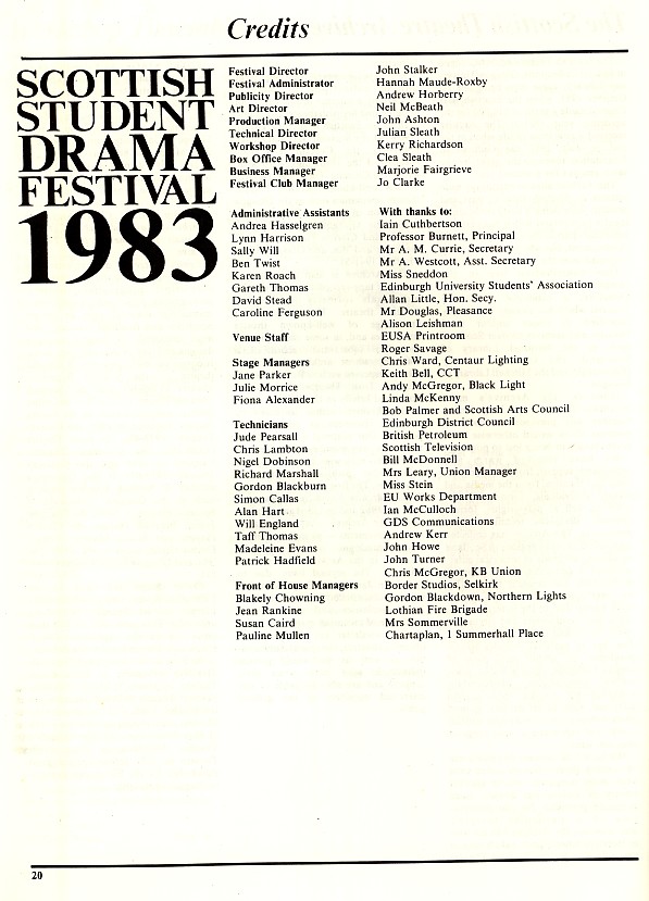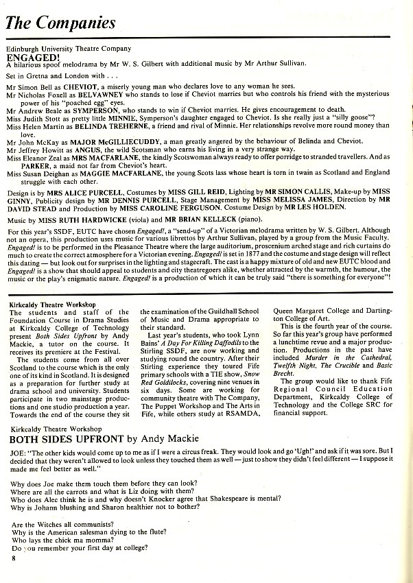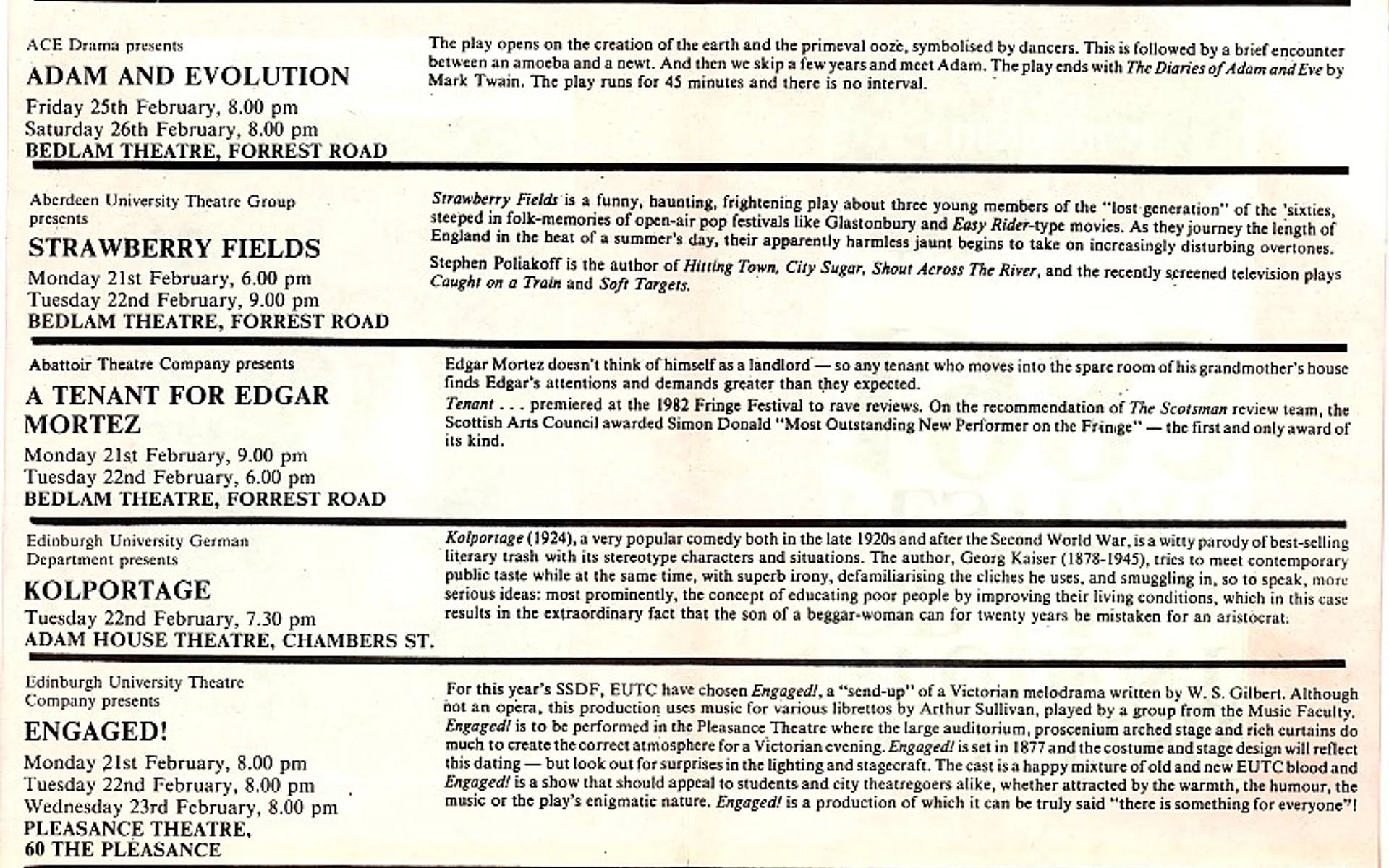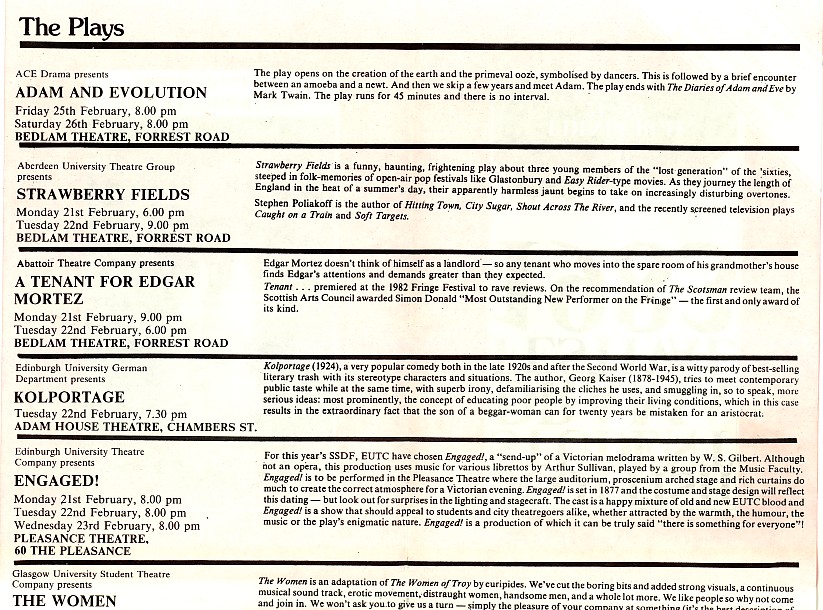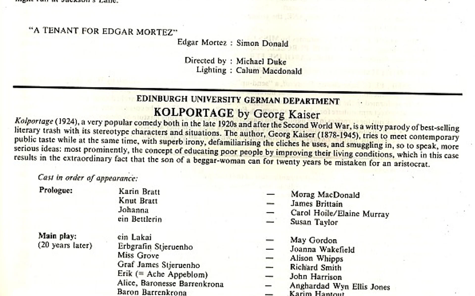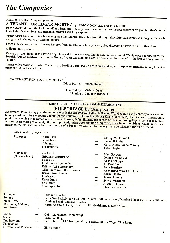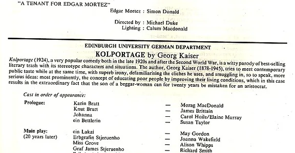 - Kolport Age (Edinburgh University German Dept, Adam House Theatre)