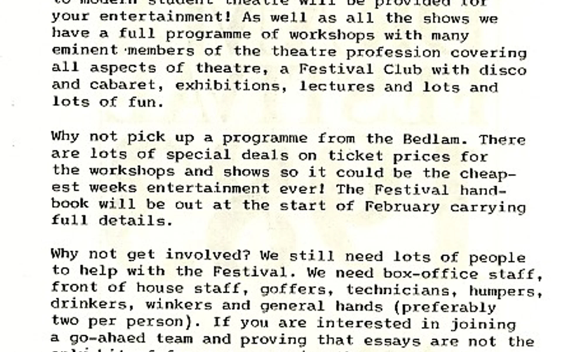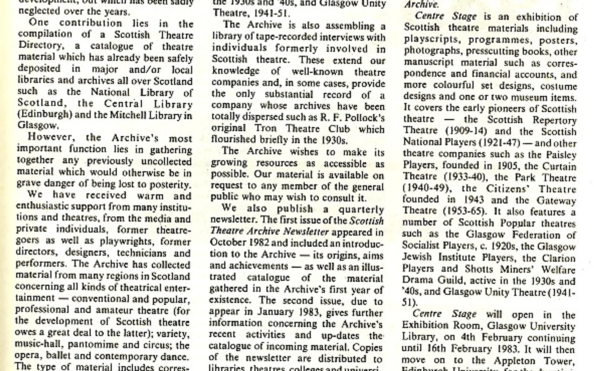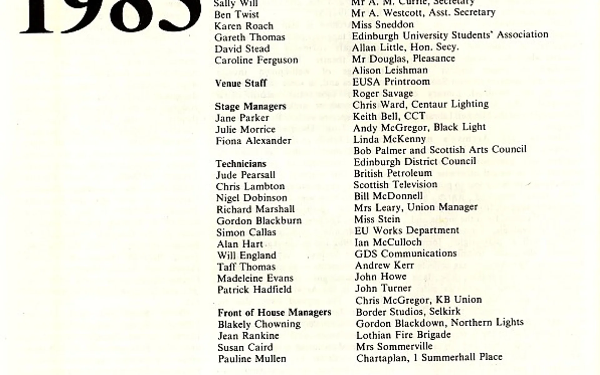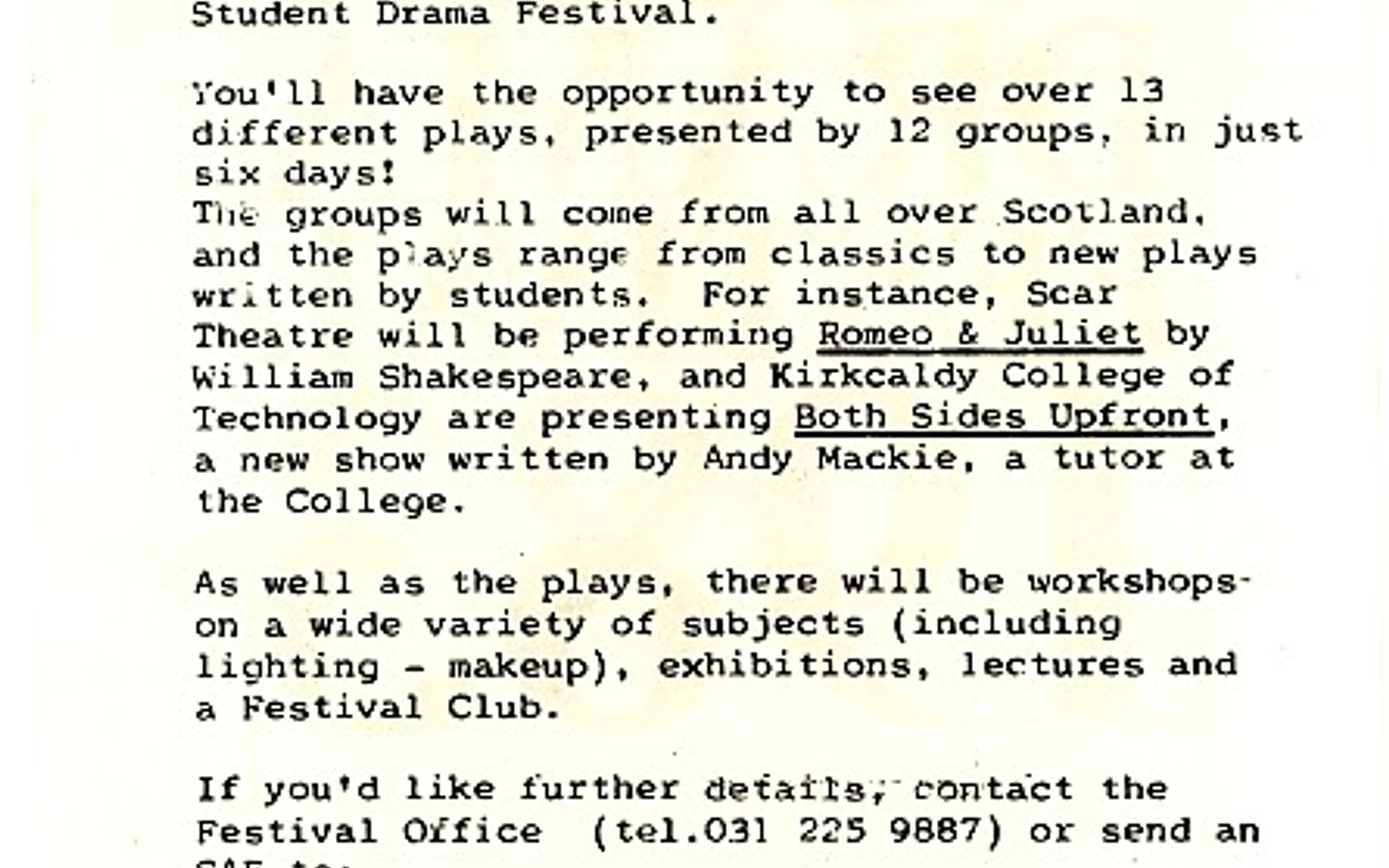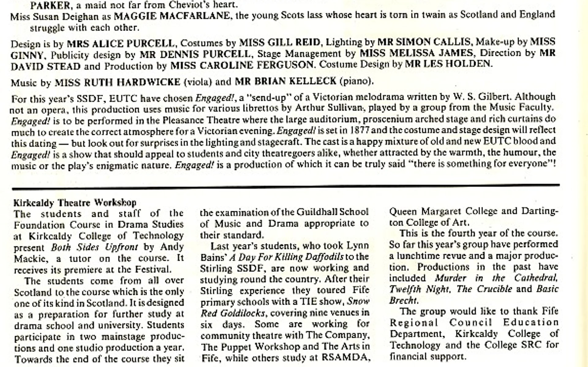 - Kolport Age (Edinburgh University German Dept, Adam House Theatre)