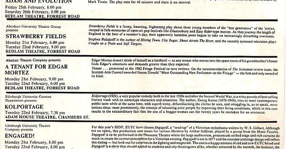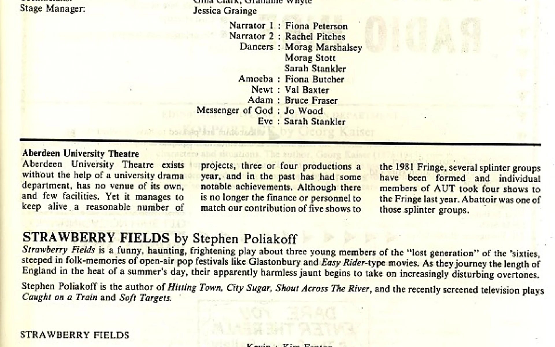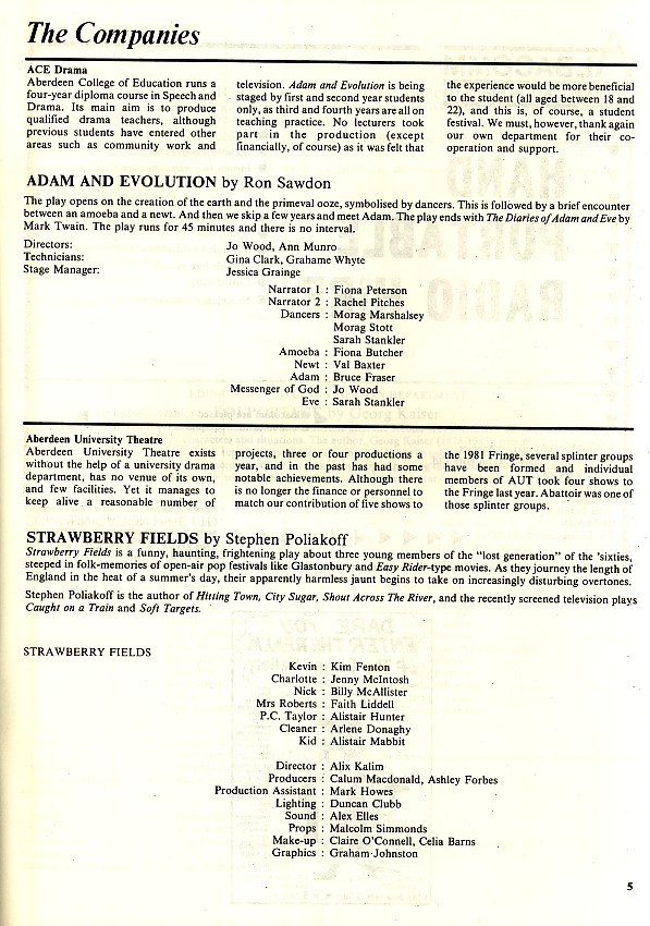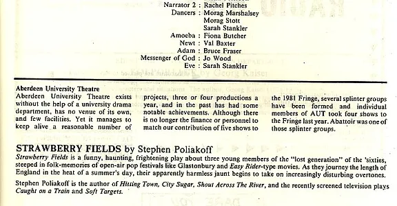 - Strawberry Fields (Aberdeen Univ Theatre Group, Bedlam)