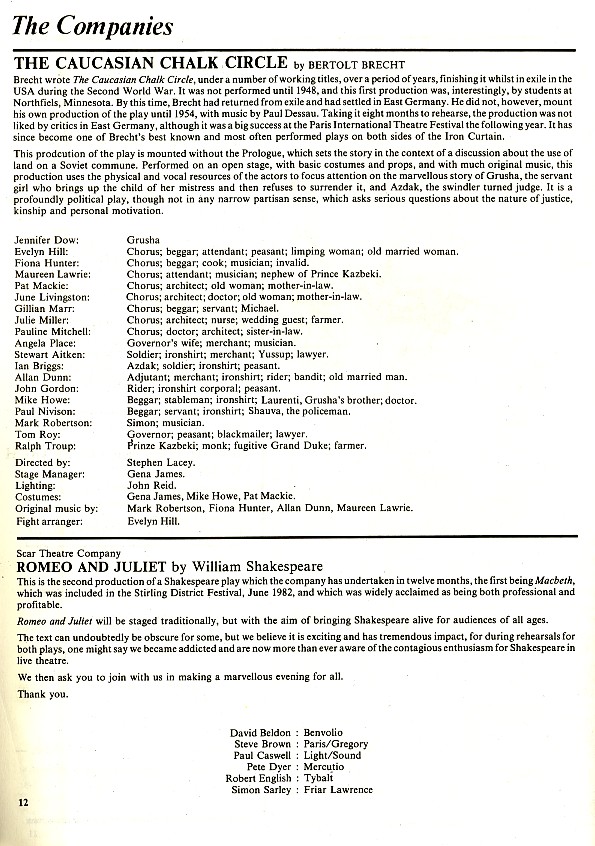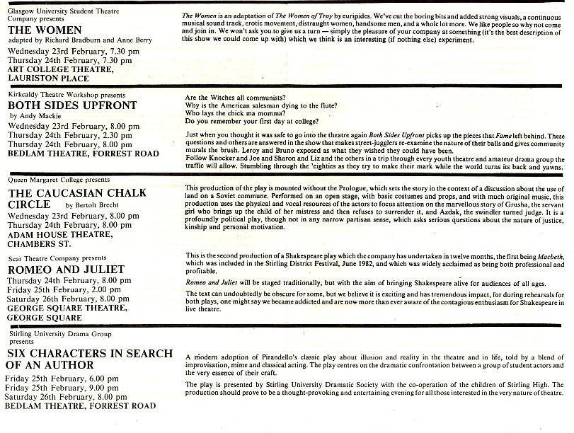 - Caucasian Chalk Circle (Queen Margaret College, Adam House Theatre)