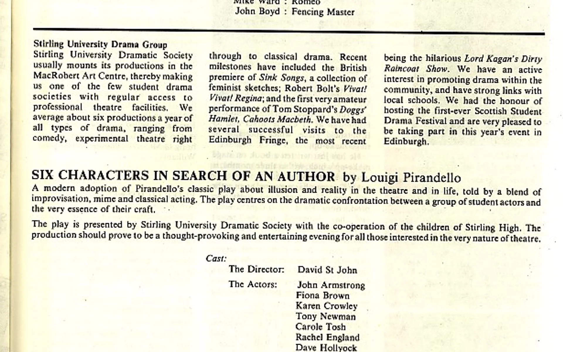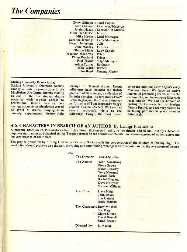- Six Characters In Search For An Author (Stirling Univ Drama Group, Bedlam)