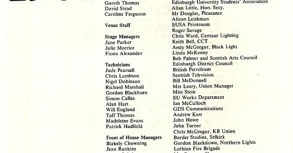 - Performing in Teviot (Robin Peoples, Debating Hall)