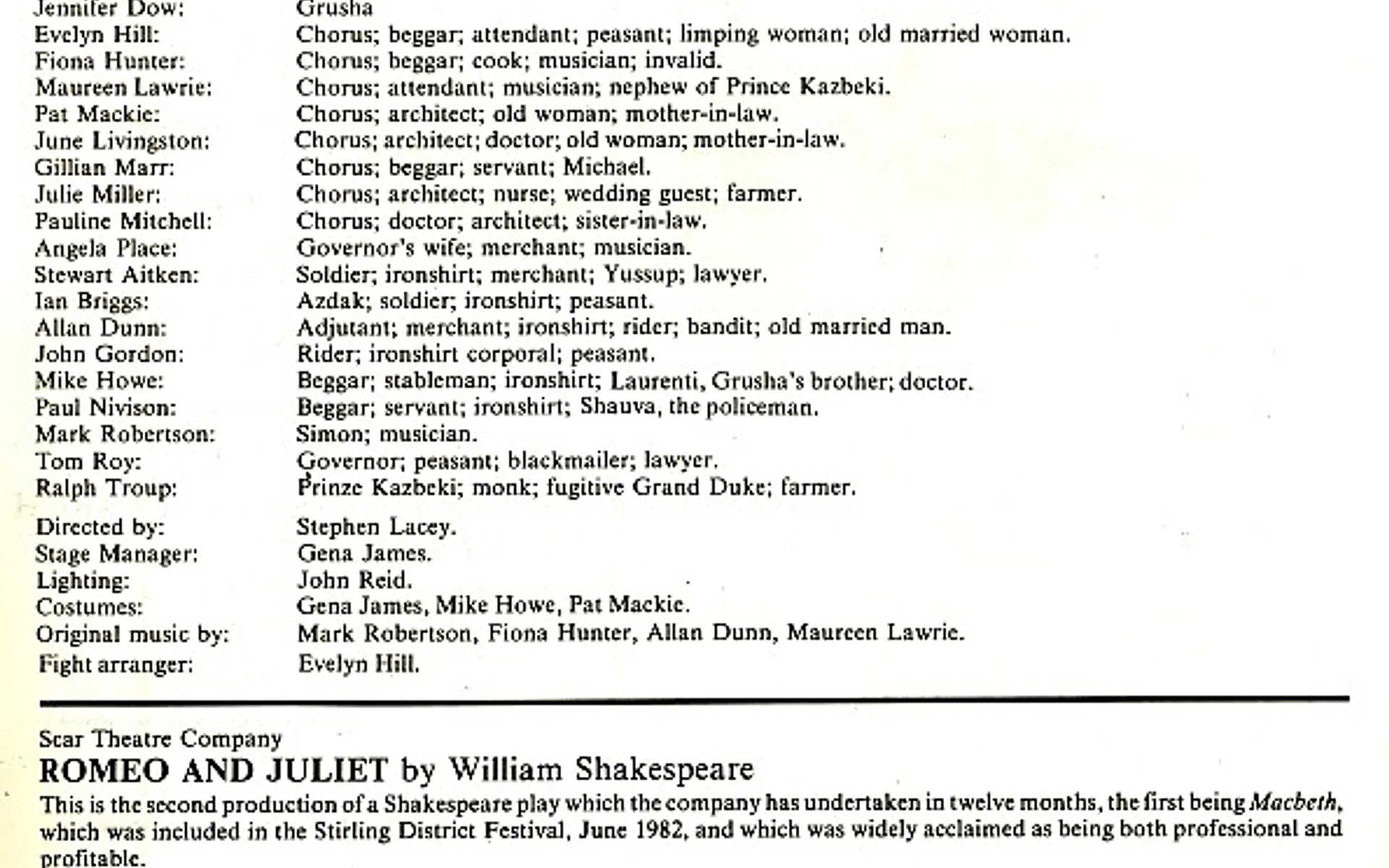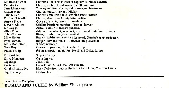 - Romeo and Juliet (Scar Theatre Company, George Square Theatre)