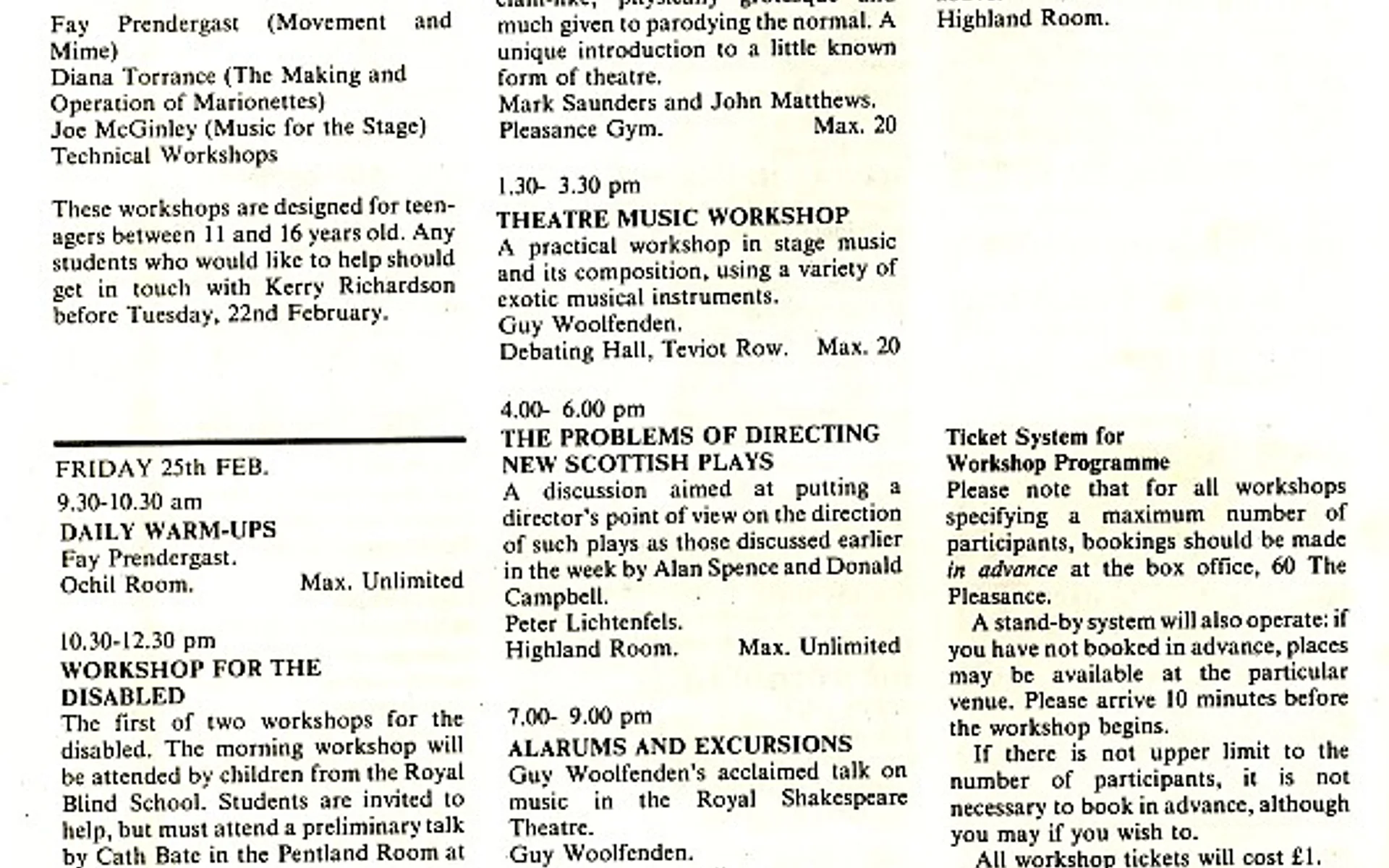 - Theatre Music Workshop (Guy Wooldenden, Debating Hall)