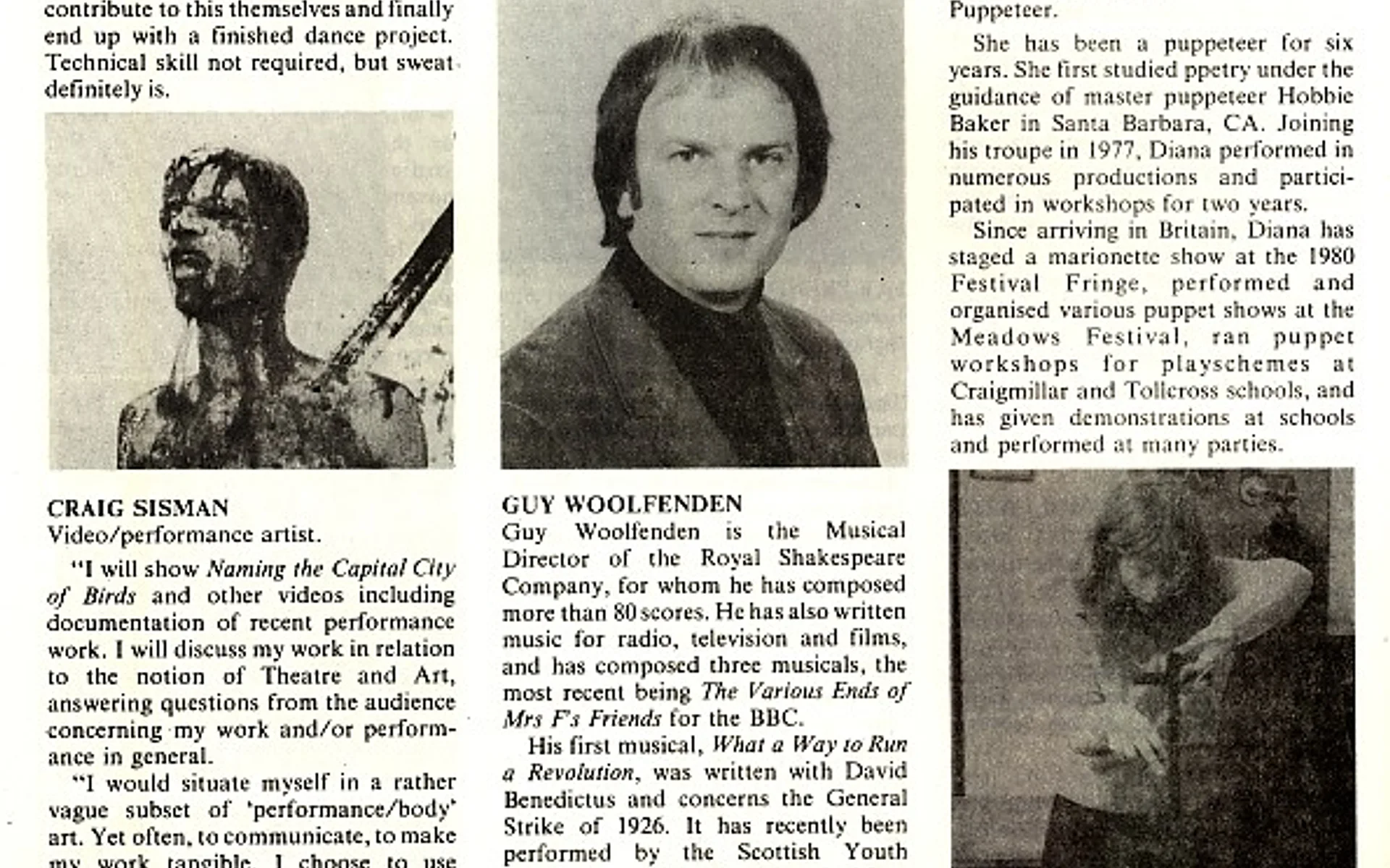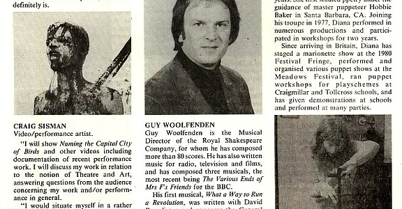 - Video/Performance Workshop (Craig Sisman, Bedlam Theatre)