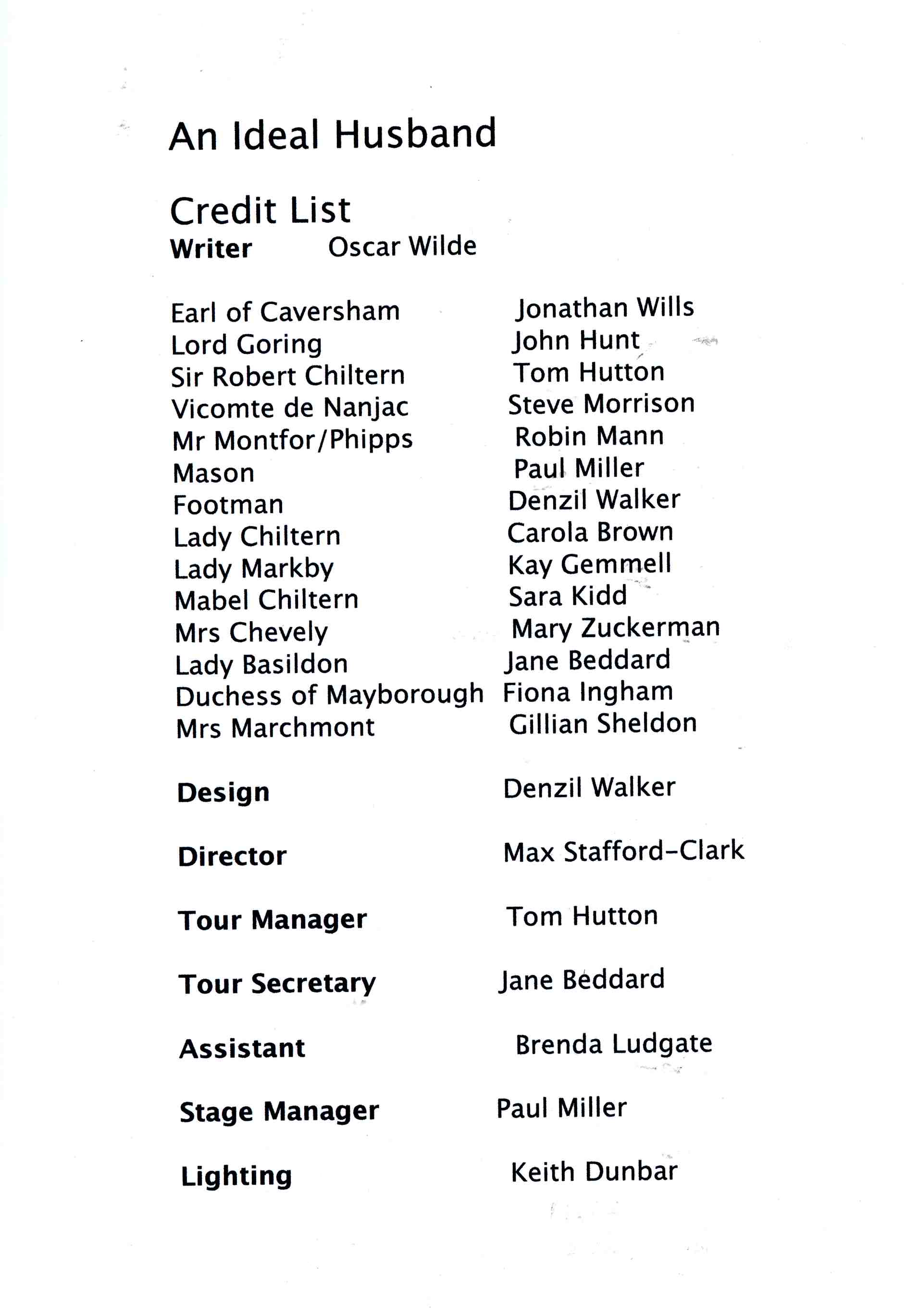 Sir Robert Chiltern / Tour Manager Tom Hutton