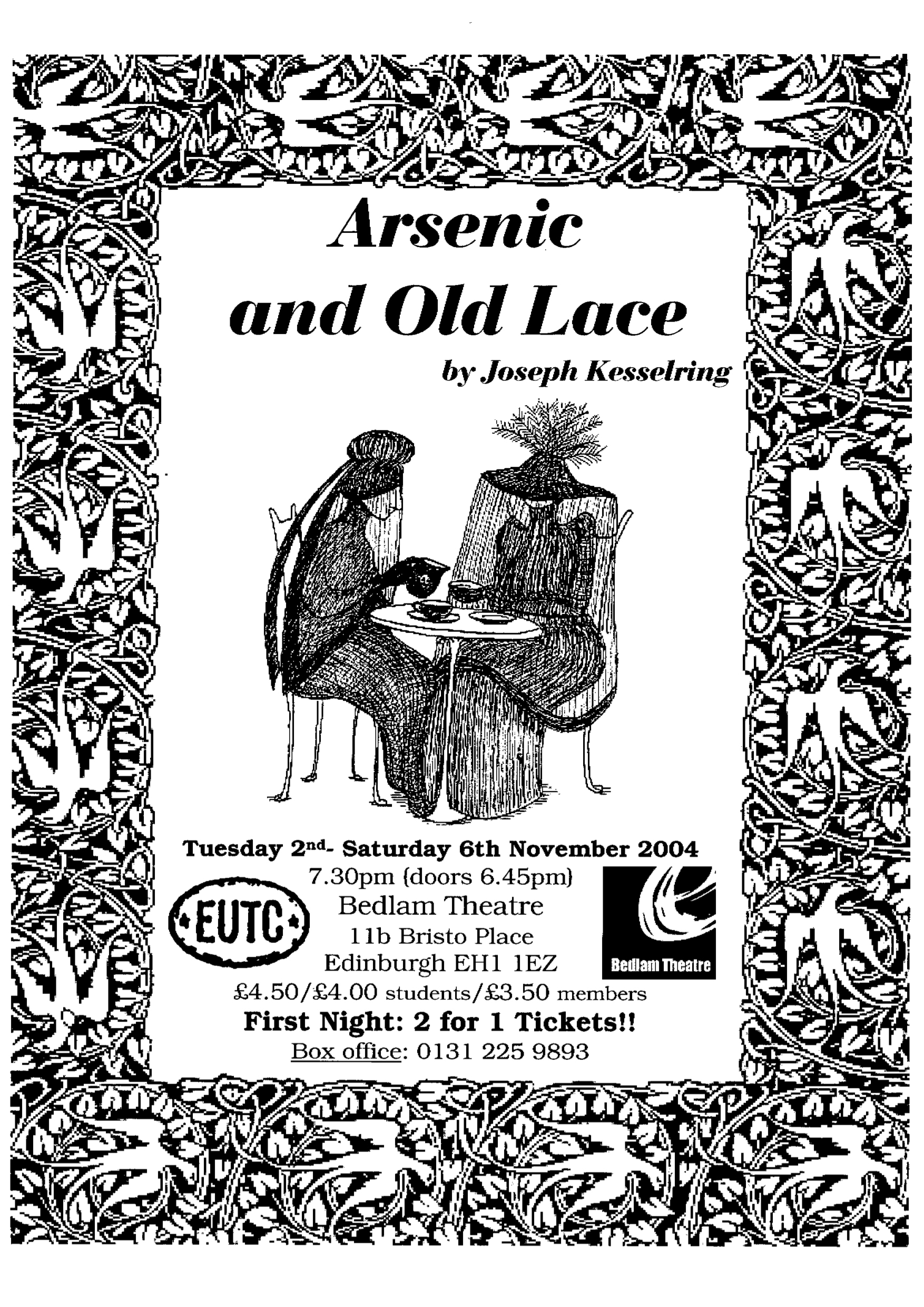 Come and check in to the Brewster’s guest house, the cosiest lodgings east of the Bates Motel. With a colourful array of residents from the elderly Brewster sisters to the young Teddy Roosevelt, not a day passes without event. All are welcome to wander the house at leisure, with the exception of the basement, which guests are forbidden to enter at any time… Later re-made as a film starring Carey Grant, Arsenic and Old Lace was a smash hit on Broadway with its perfect blend of suspense, humour, and flair for the macabre.