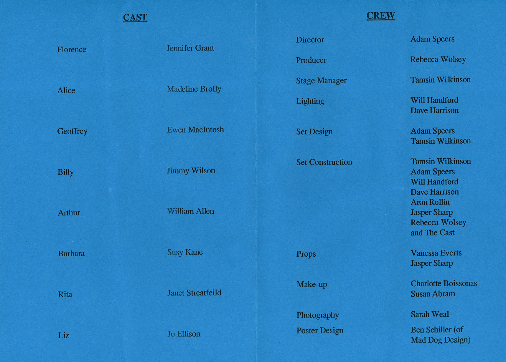 Producer / Set Construction Rebecca Wolsey