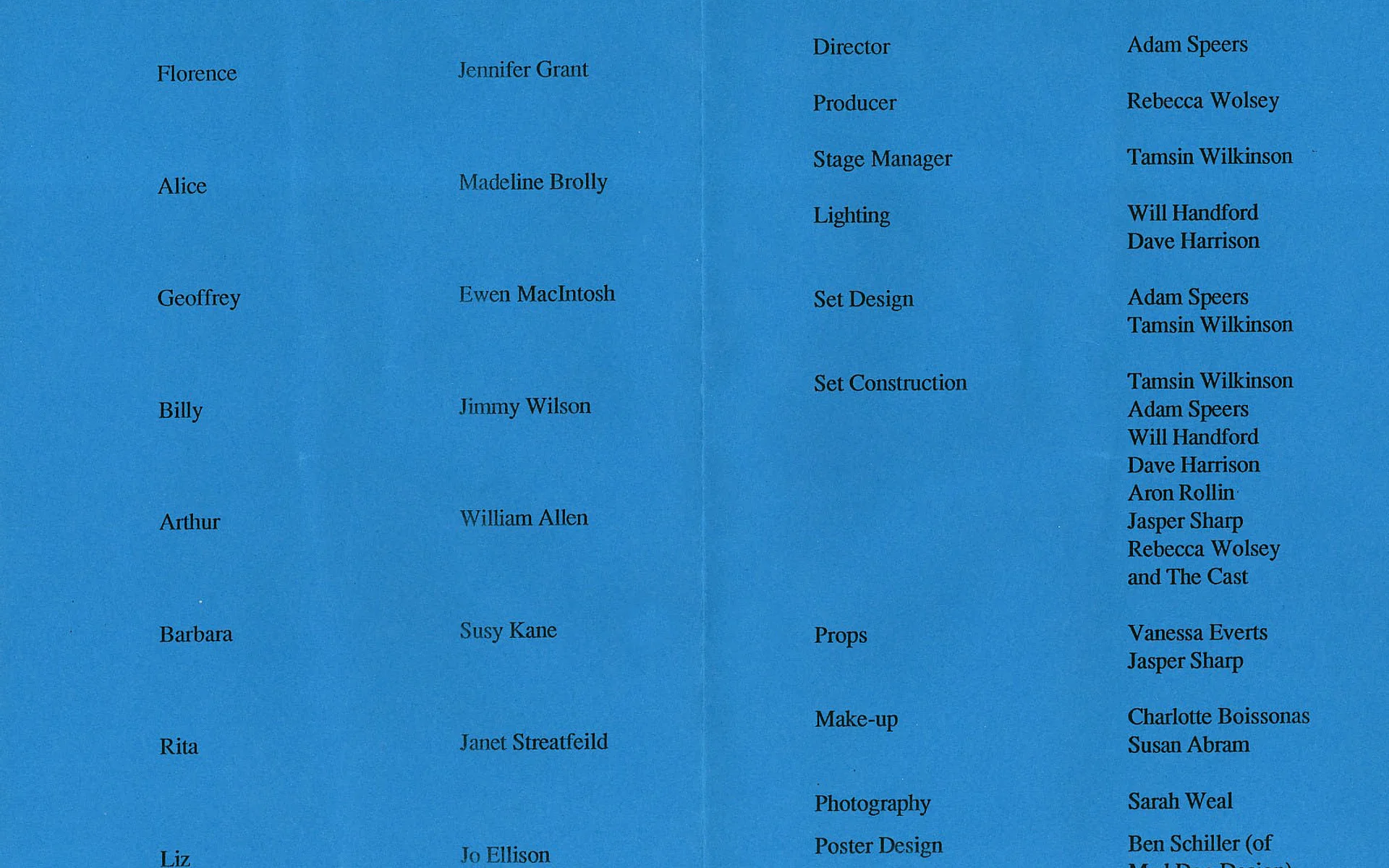 Set Construction / Set Design / Stage Manager Tamsin Wilkinson