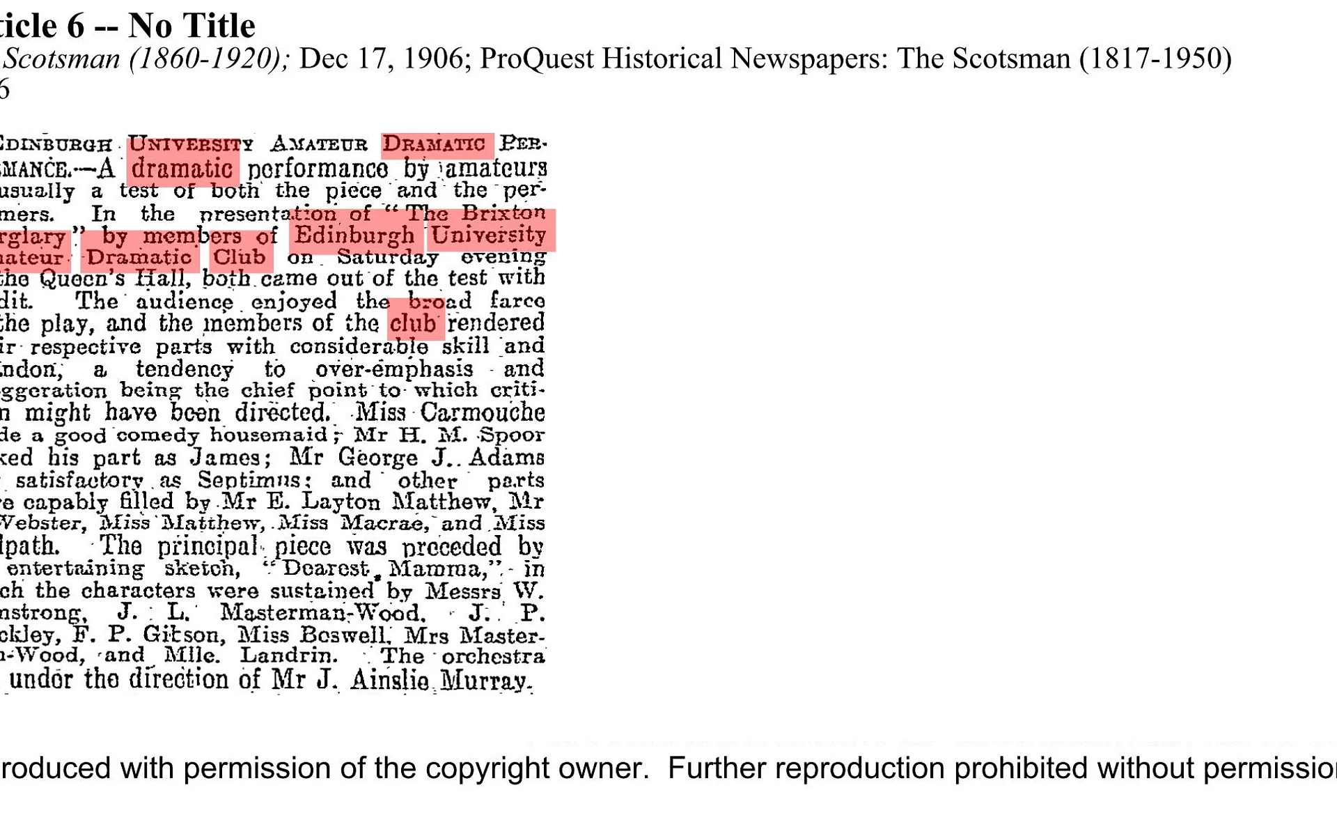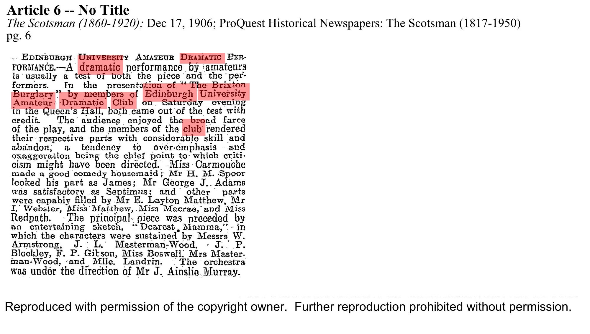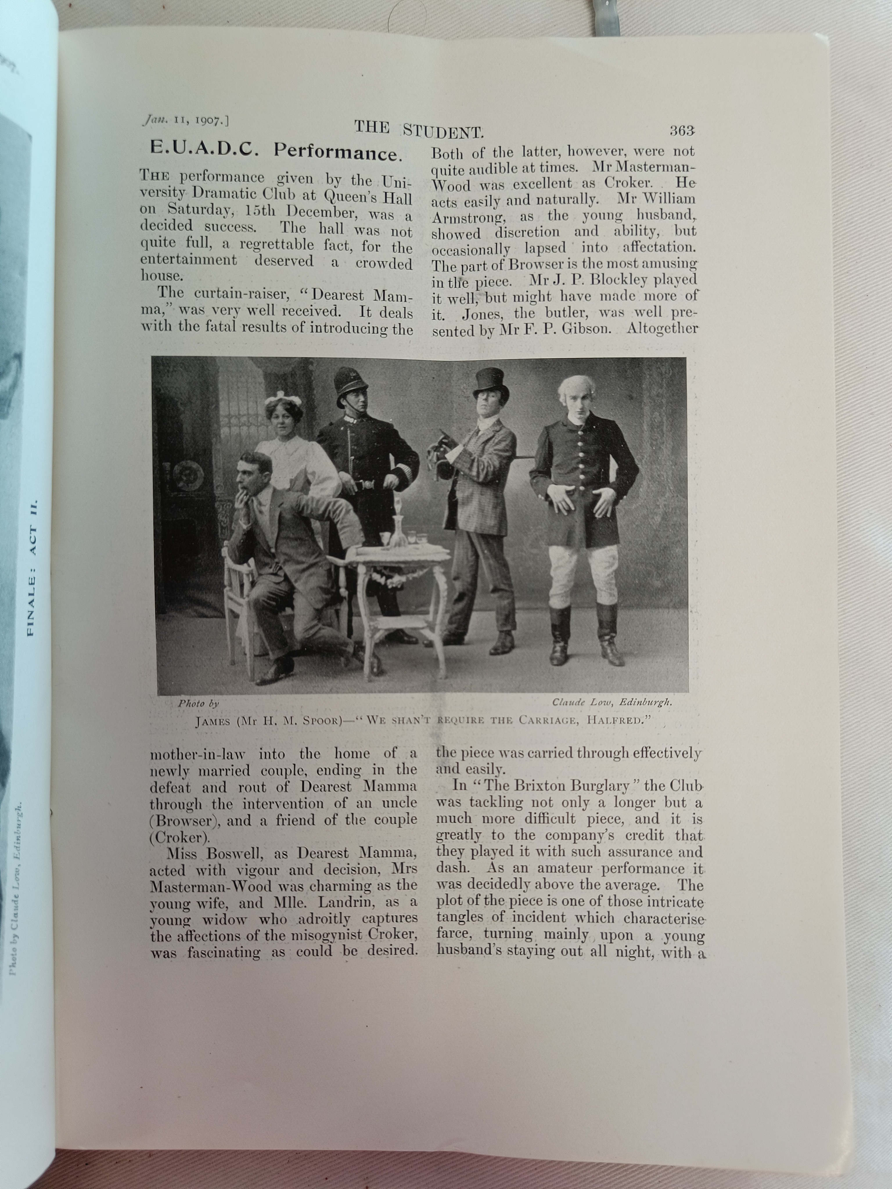 This double bill was also performed on the 18th at the Craiglockhart Hydropathic.