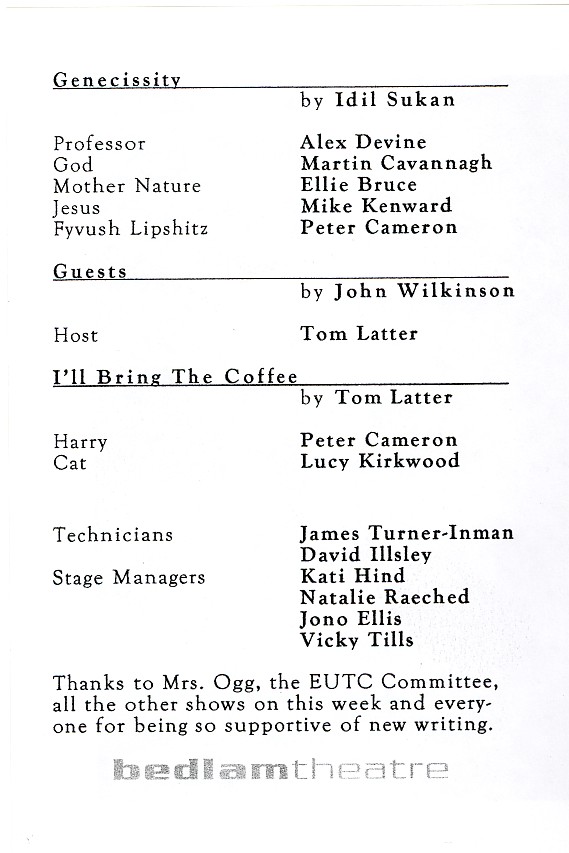 Three plays by Bedlam members: