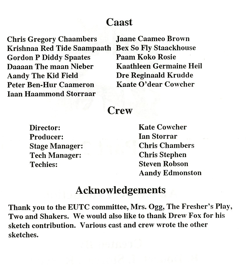 This show finished on Saturday 09 November 2002, and this page is being kept for archival purposes only.