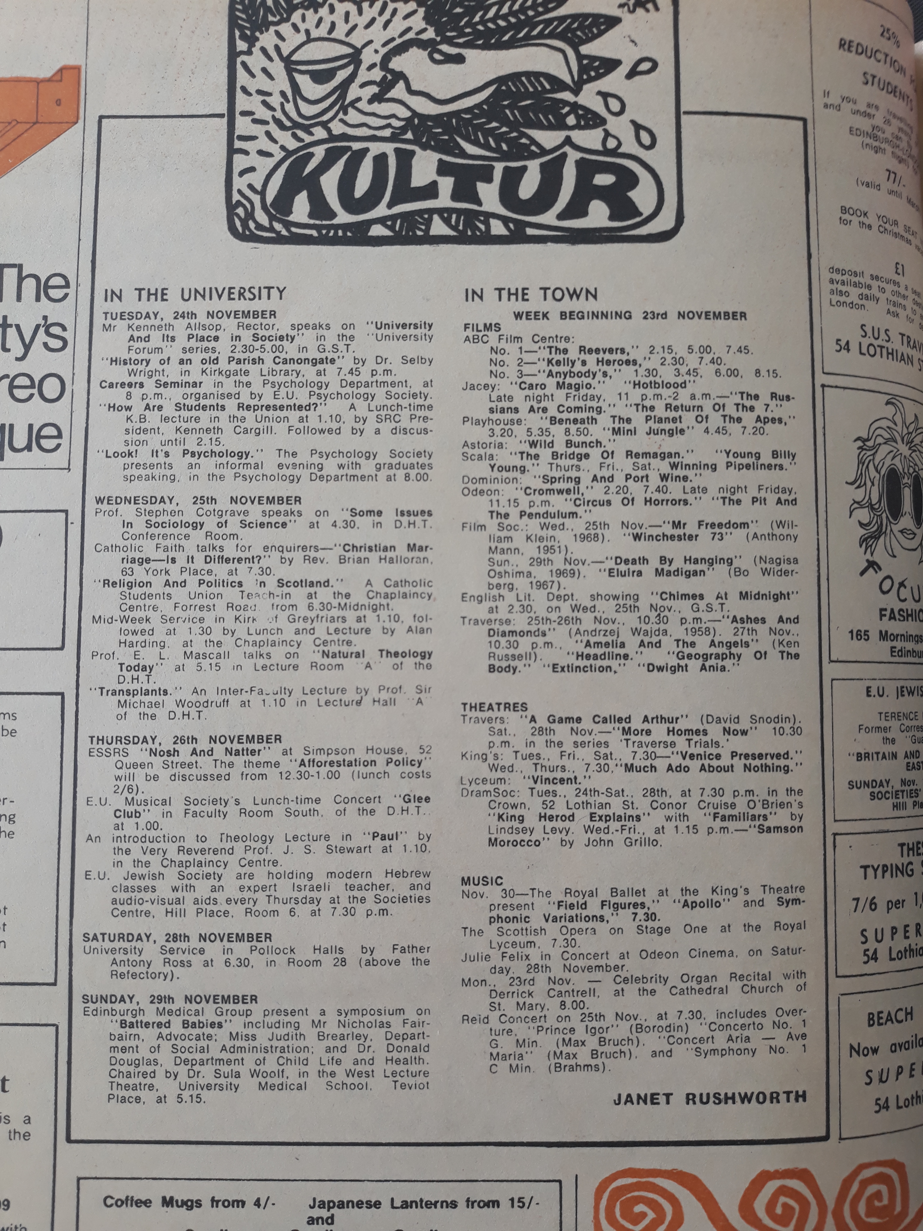 Tuesday 24 November - Saturday 28 November 1970
