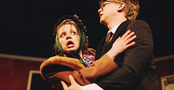 It is, with Harvey about, still a richly comic and US neighbourhood. A cab driver (Ian Culleton) dispenses philosophy and Judge Omar Gaffney (Eric Geistfeld) drawls his speech back to Louisiana. You might find Harvey at Charley’s Place on 12th and Main, or at the 4th Ave. Fire House, or at Blondie’s Chicken Inn or even in the grain elevator but it is at the Dowd residence at 343 Temple Drive that the comedy is really at home. Veta and Myrtle Mae are Elwood’s older sister and niece respectively. Their situation is becoming impossible and Veta (Caroline Elms) is beside herself, which in psychiatric terms is problematic. Elms goes for it in a Mid-West/ Mitteleuropäische speak which is as funny as it is fluent. Her outrage after an unfortunate and naked session in the sanatorium’s Hydrotub is an object lesson in how to put the flounce into speech. Meanwhile, Myrtle Mae (Emily Deans), lipstick forward, responds ardently to any suggestion of ‘sexual urges’.