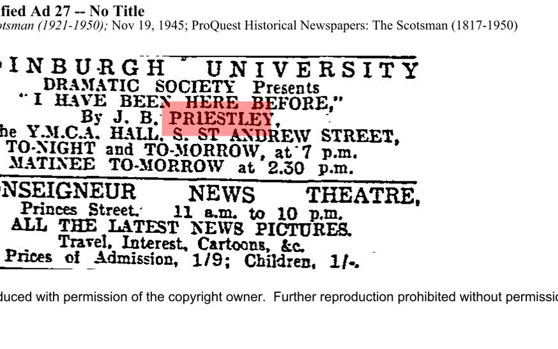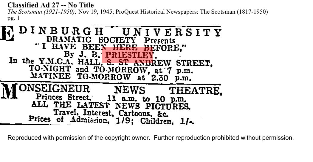 This show finished on Tuesday 20 November 1945, and this page is being kept for archival purposes only.