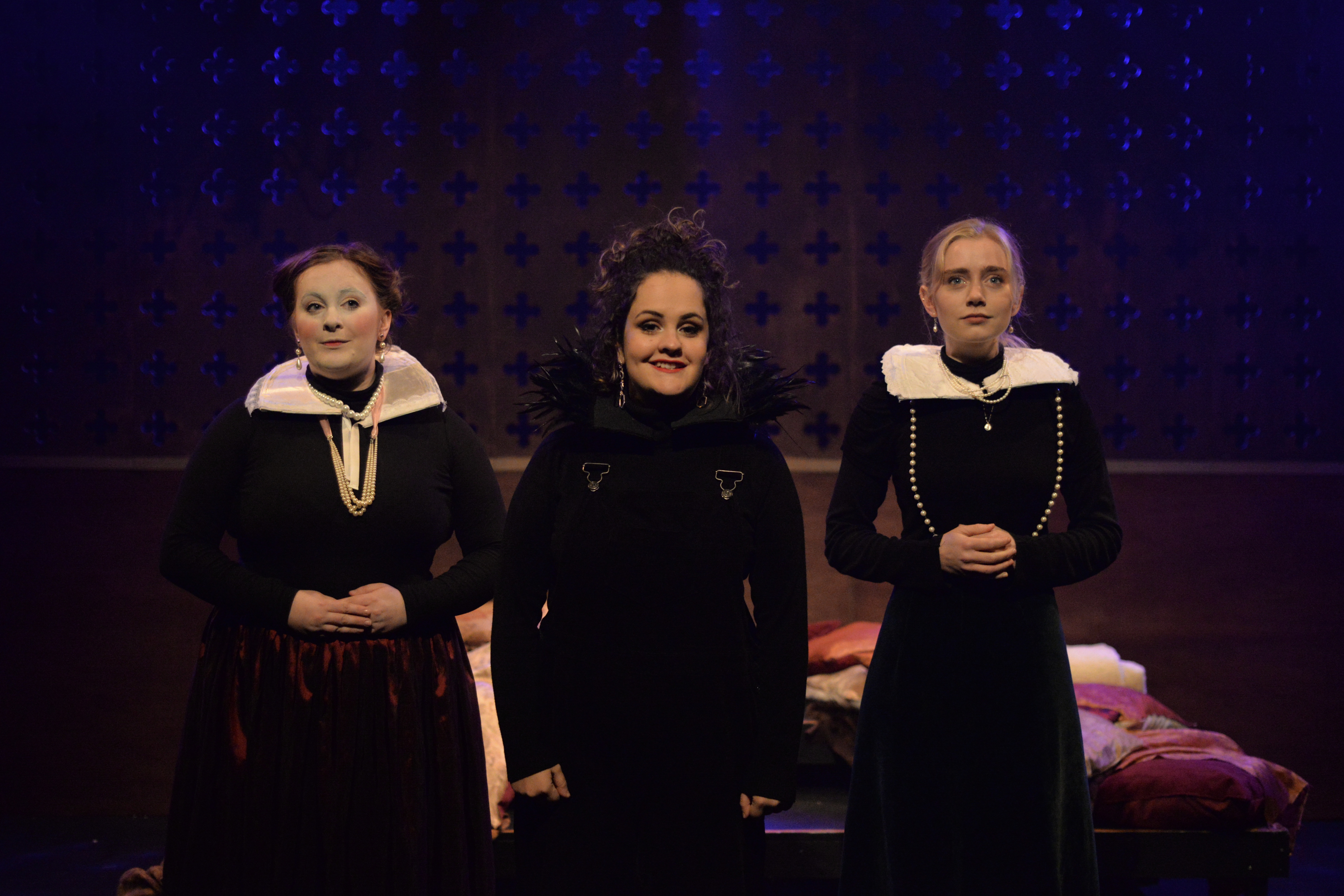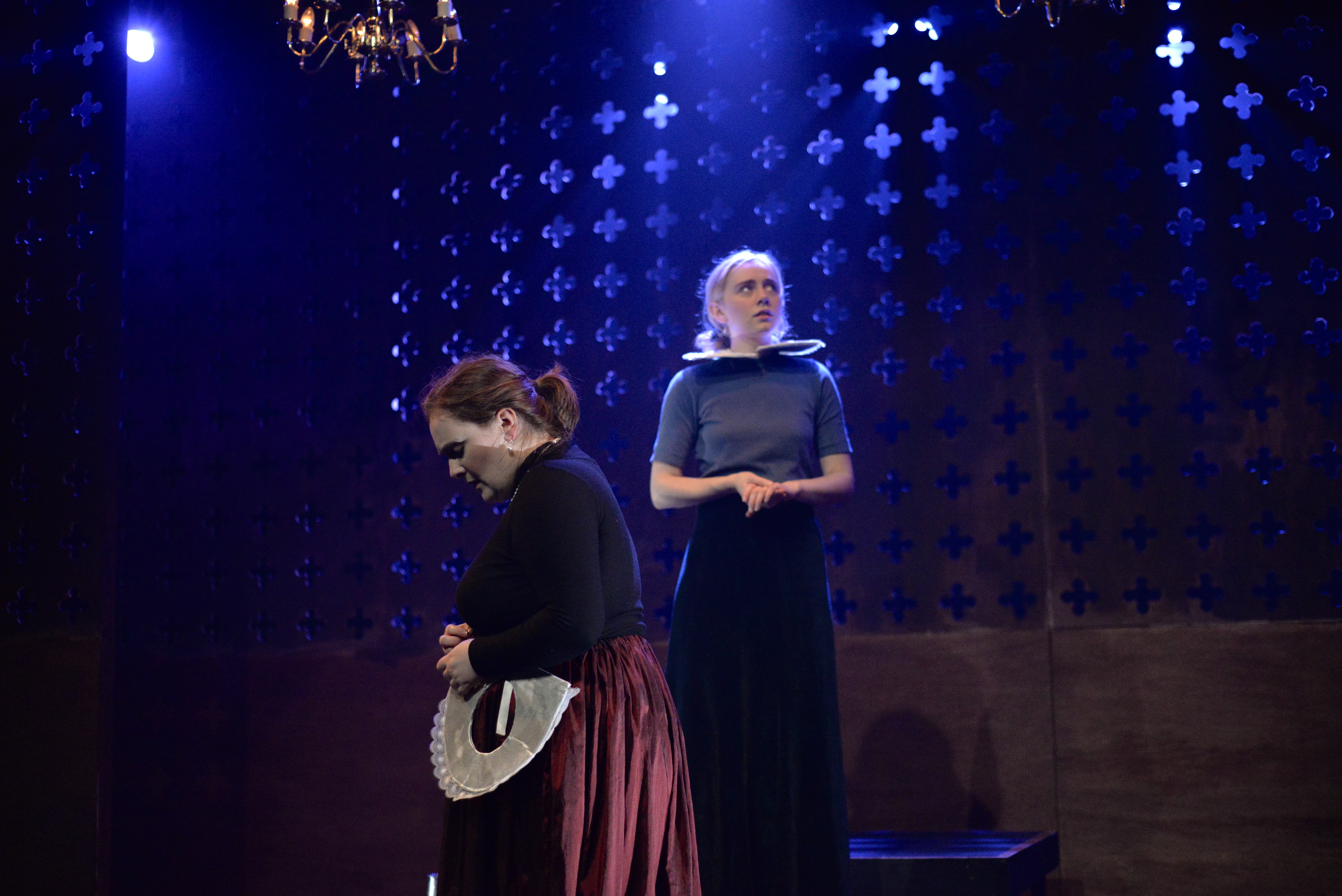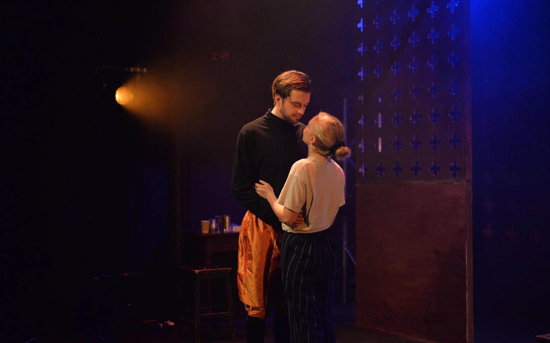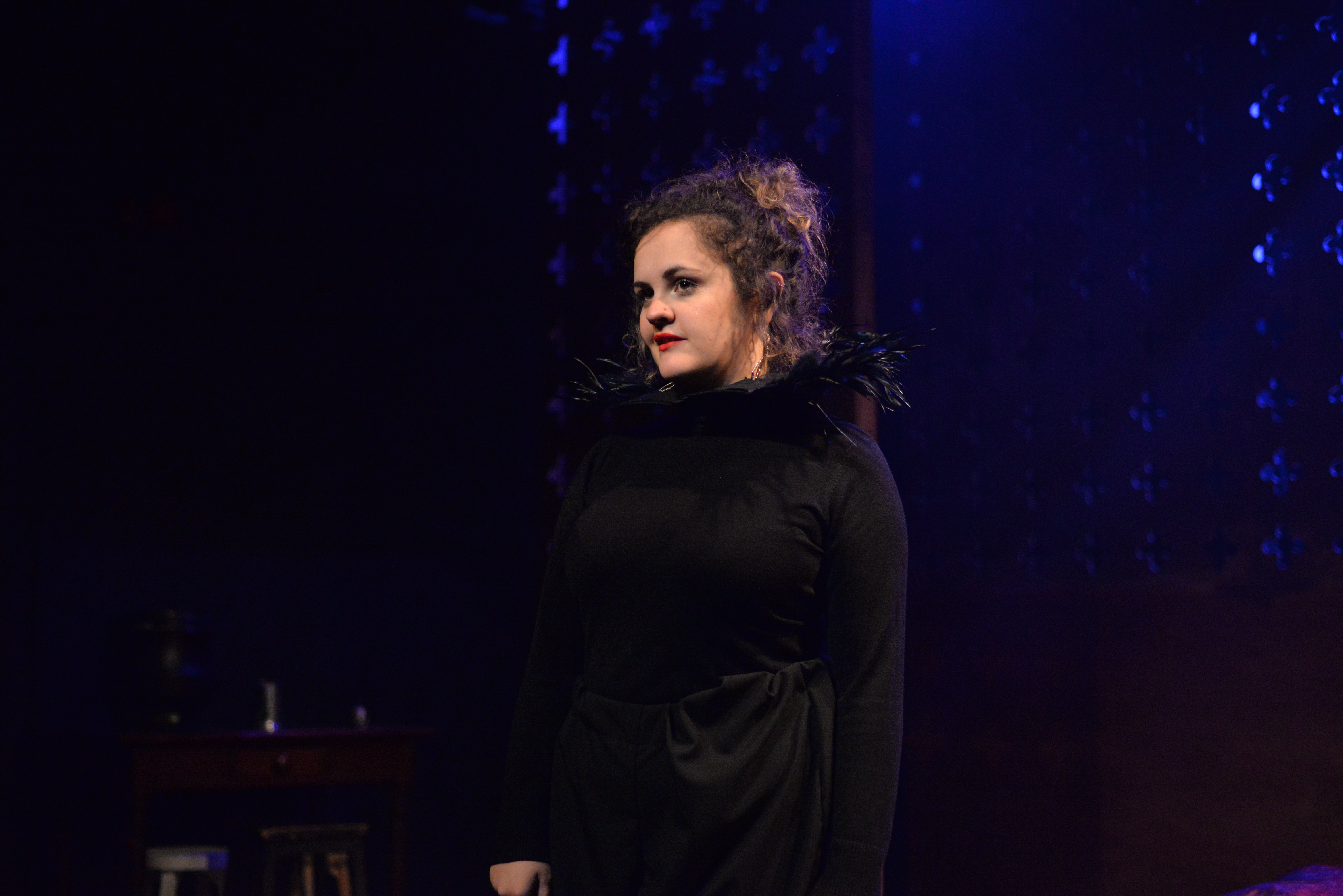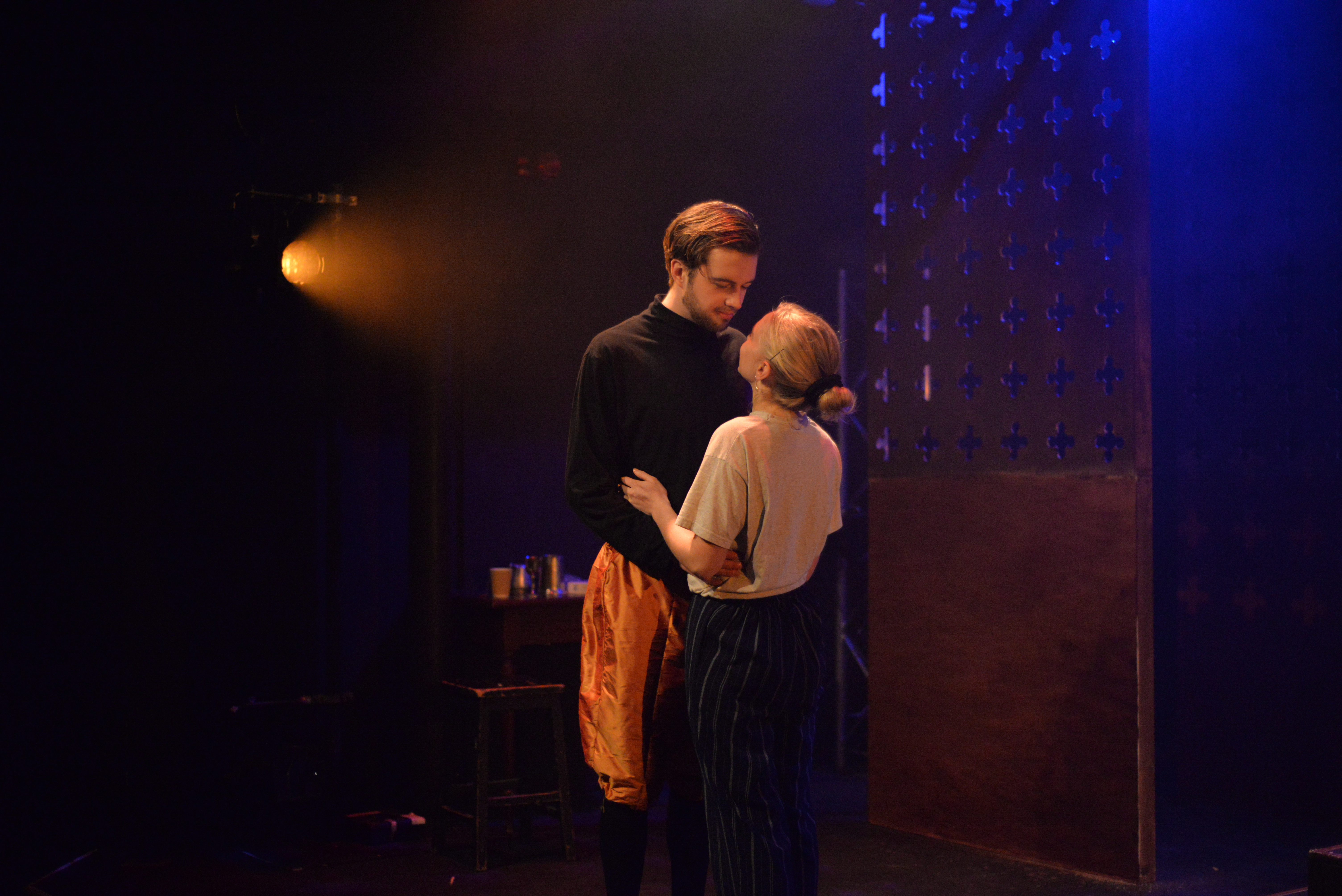 Indeed, Matthew Marshland’s clever design that makes great use of the Bedlam space, allowing the players to come right out into the audience so they are, at times, addressing them directly from the front row. It is lit with a great sense of atmosphere by Elissa Webb.