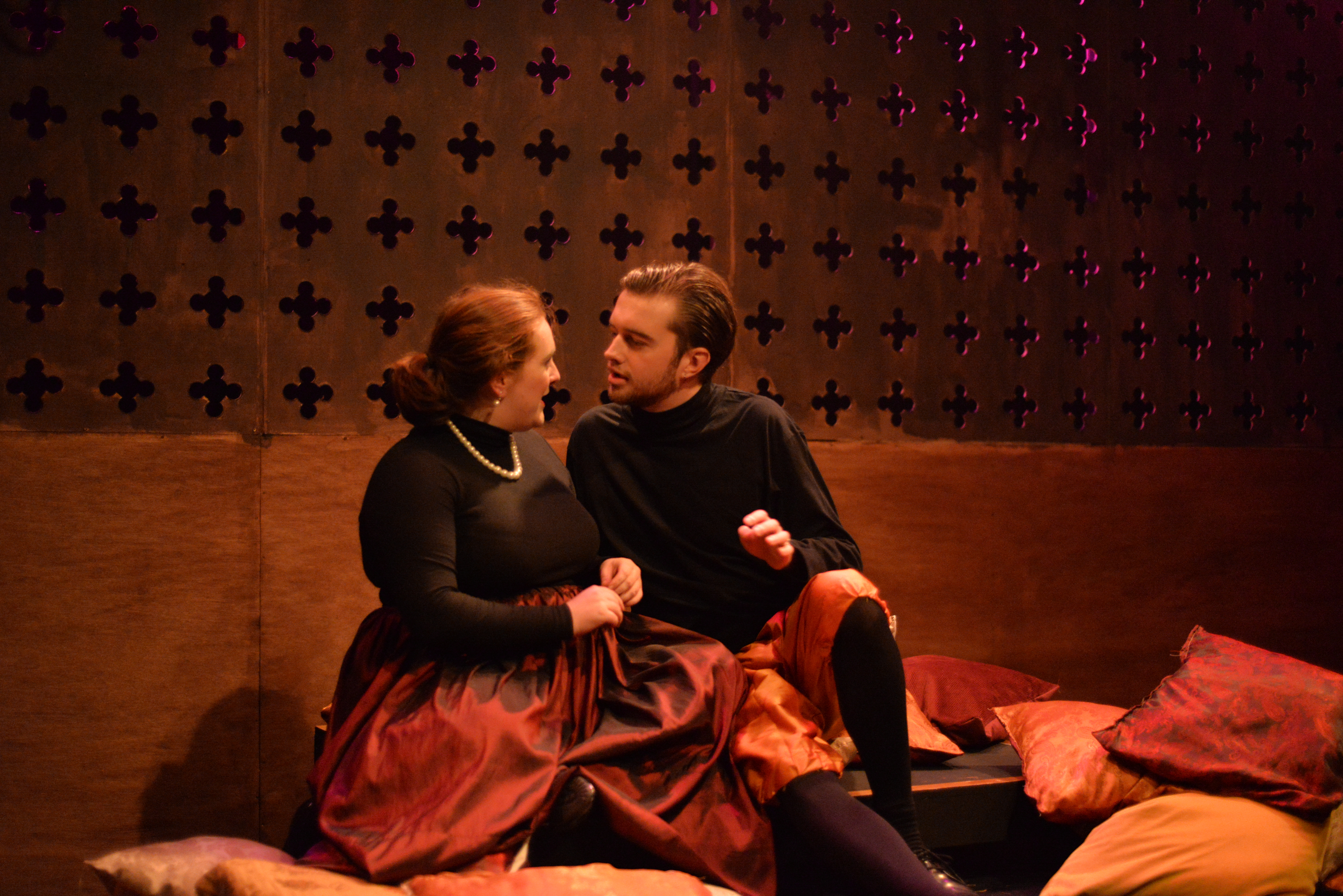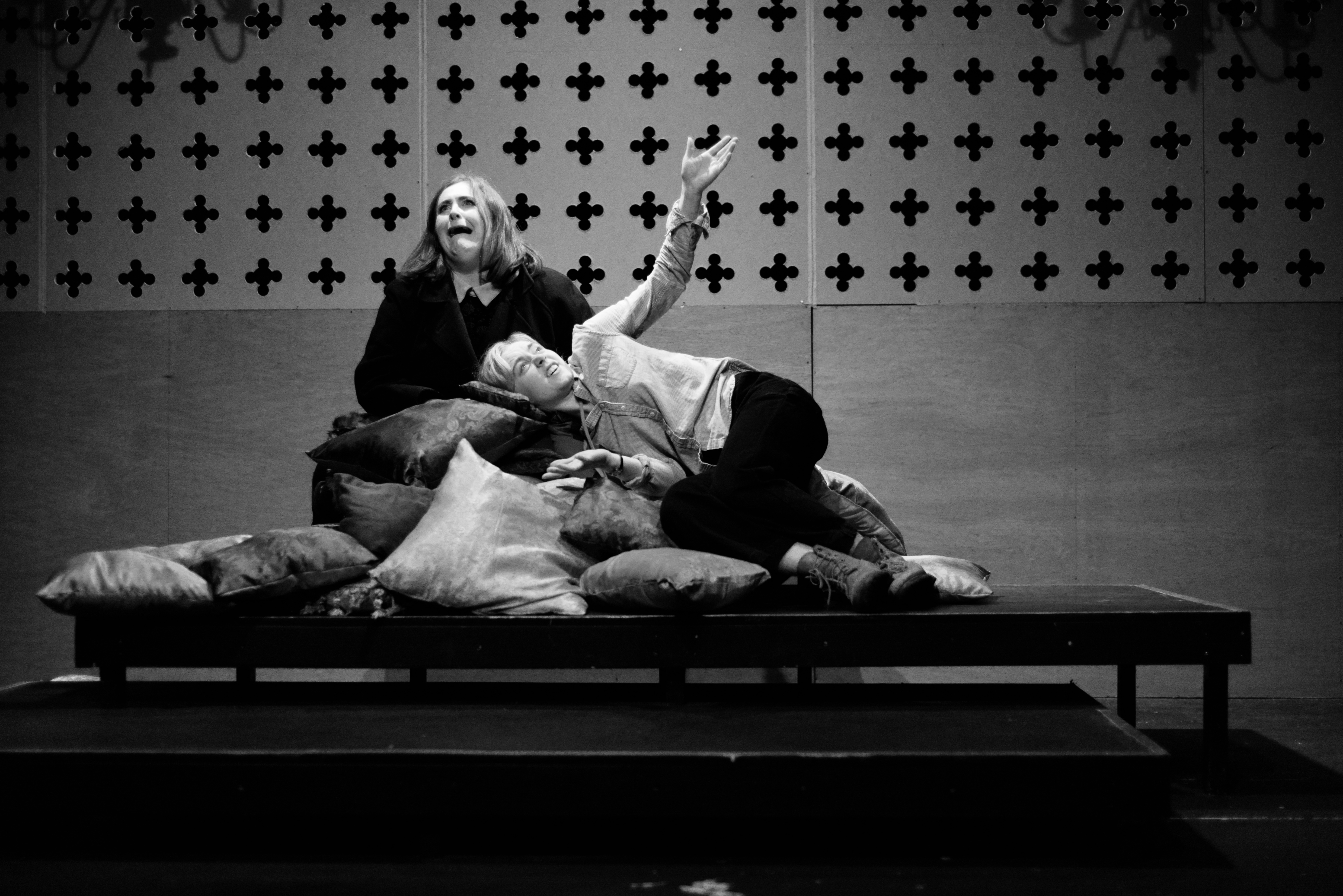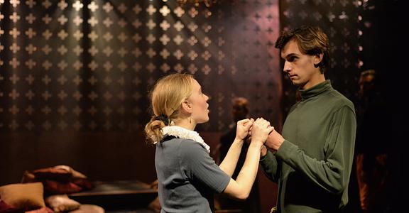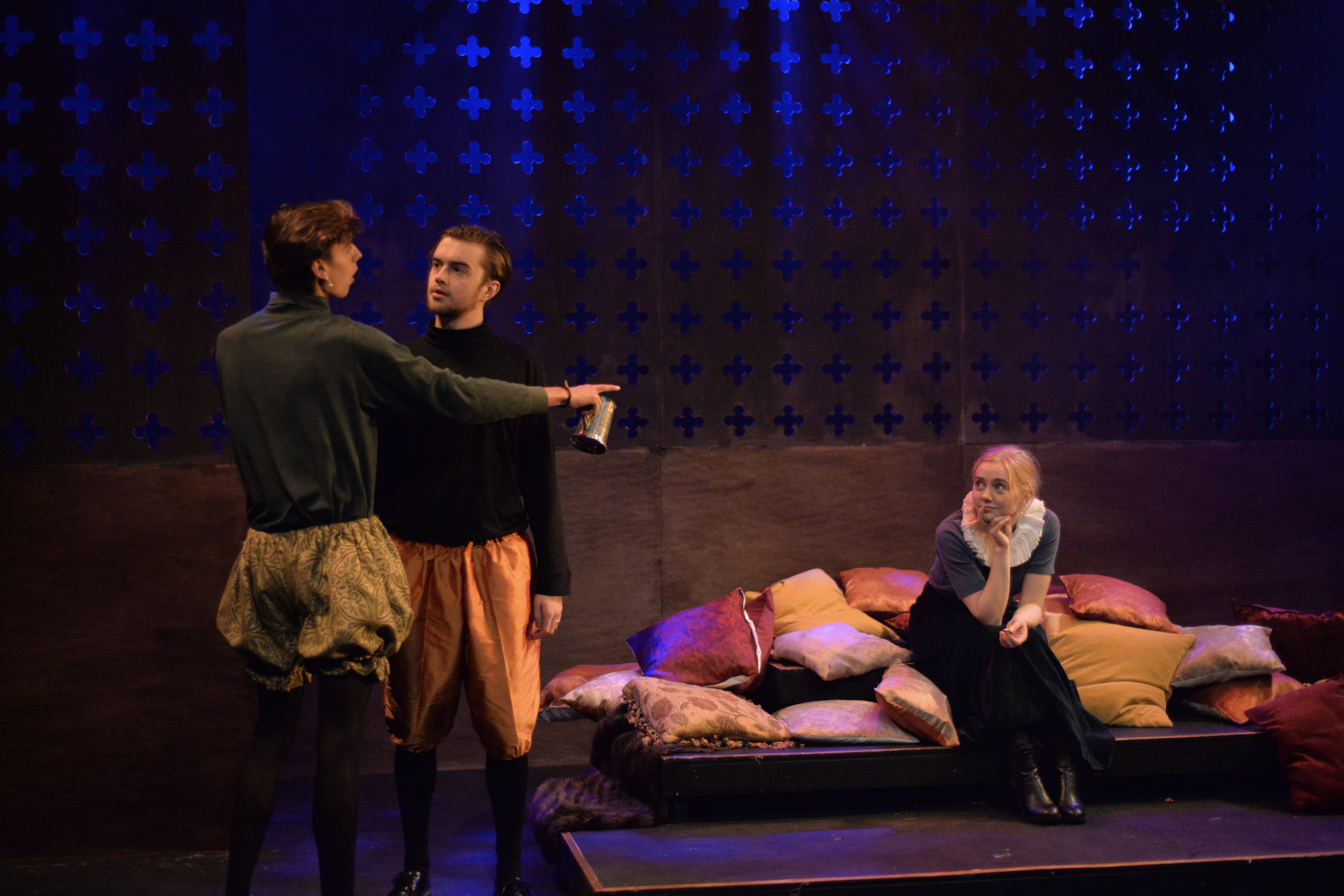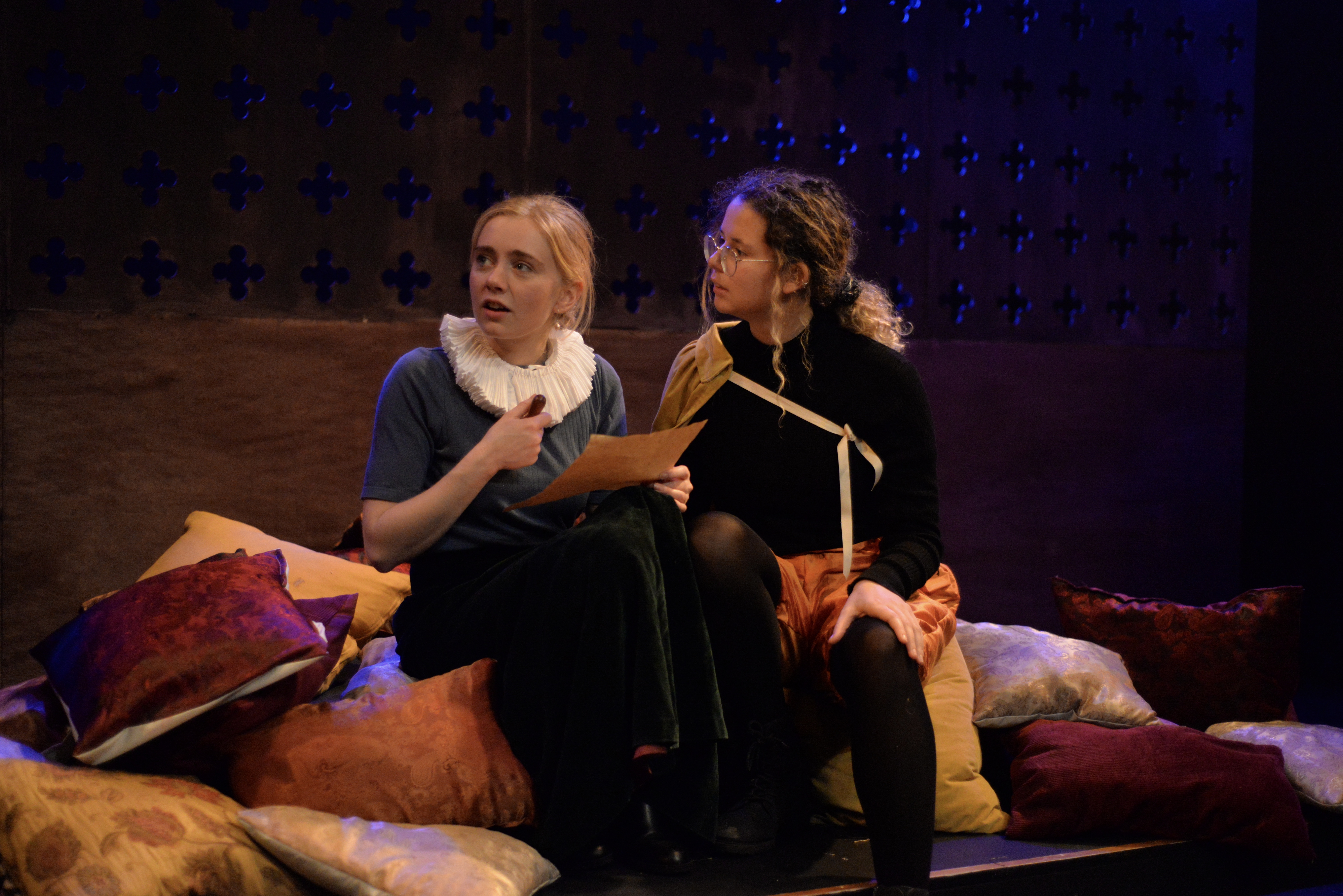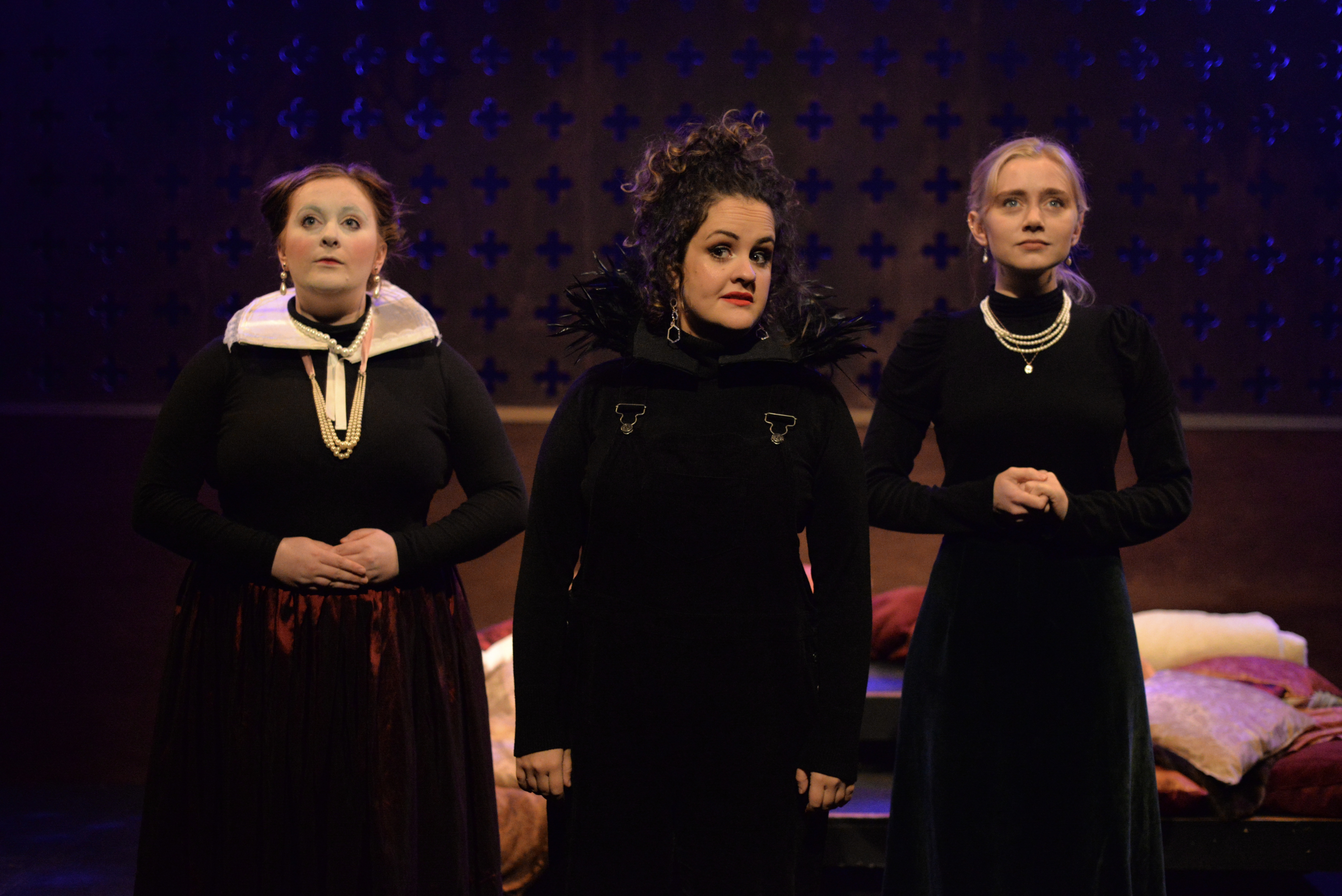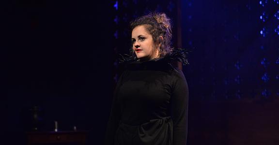 Indeed, Matthew Marshland’s clever design that makes great use of the Bedlam space, allowing the players to come right out into the audience so they are, at times, addressing them directly from the front row. It is lit with a great sense of atmosphere by Elissa Webb.