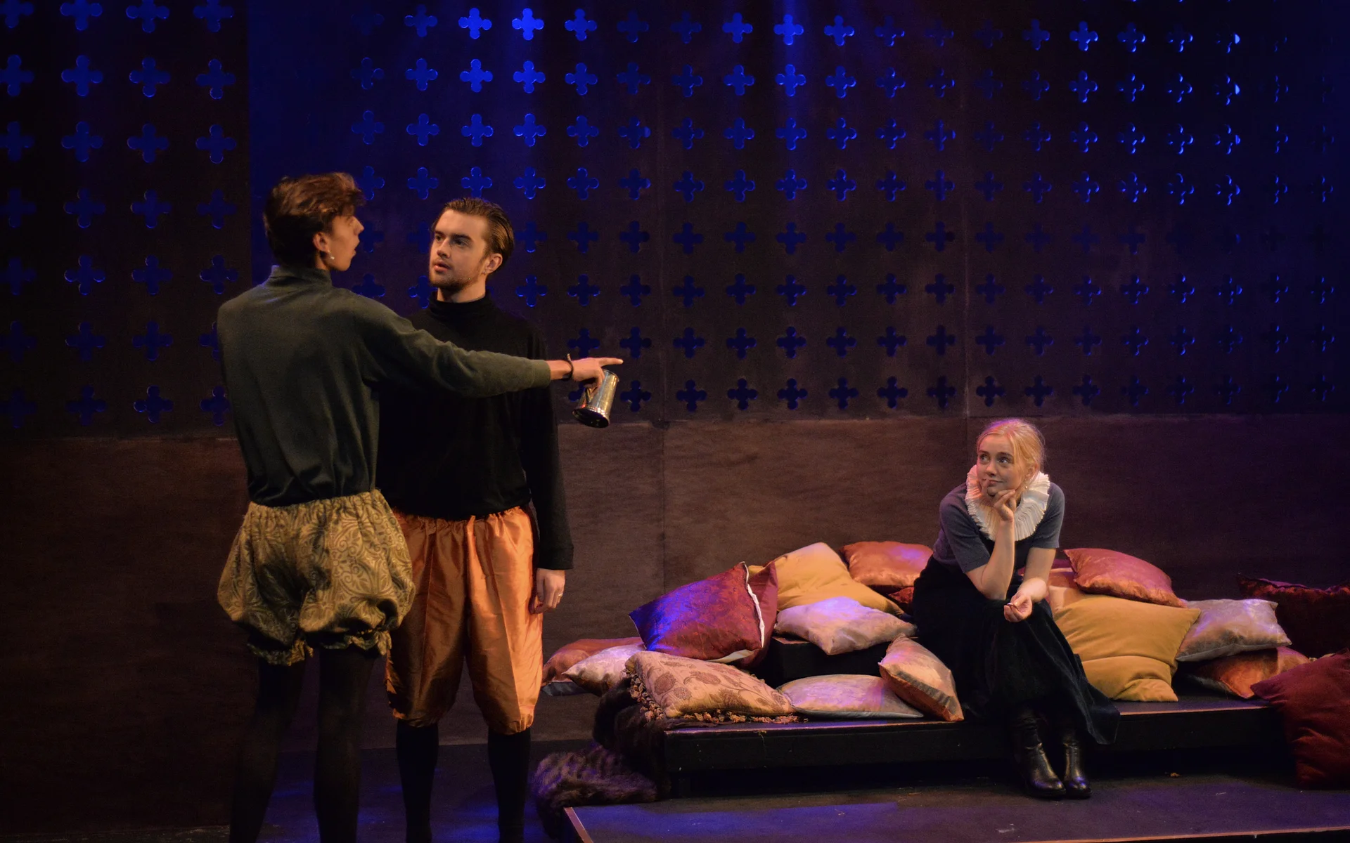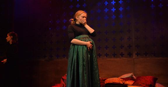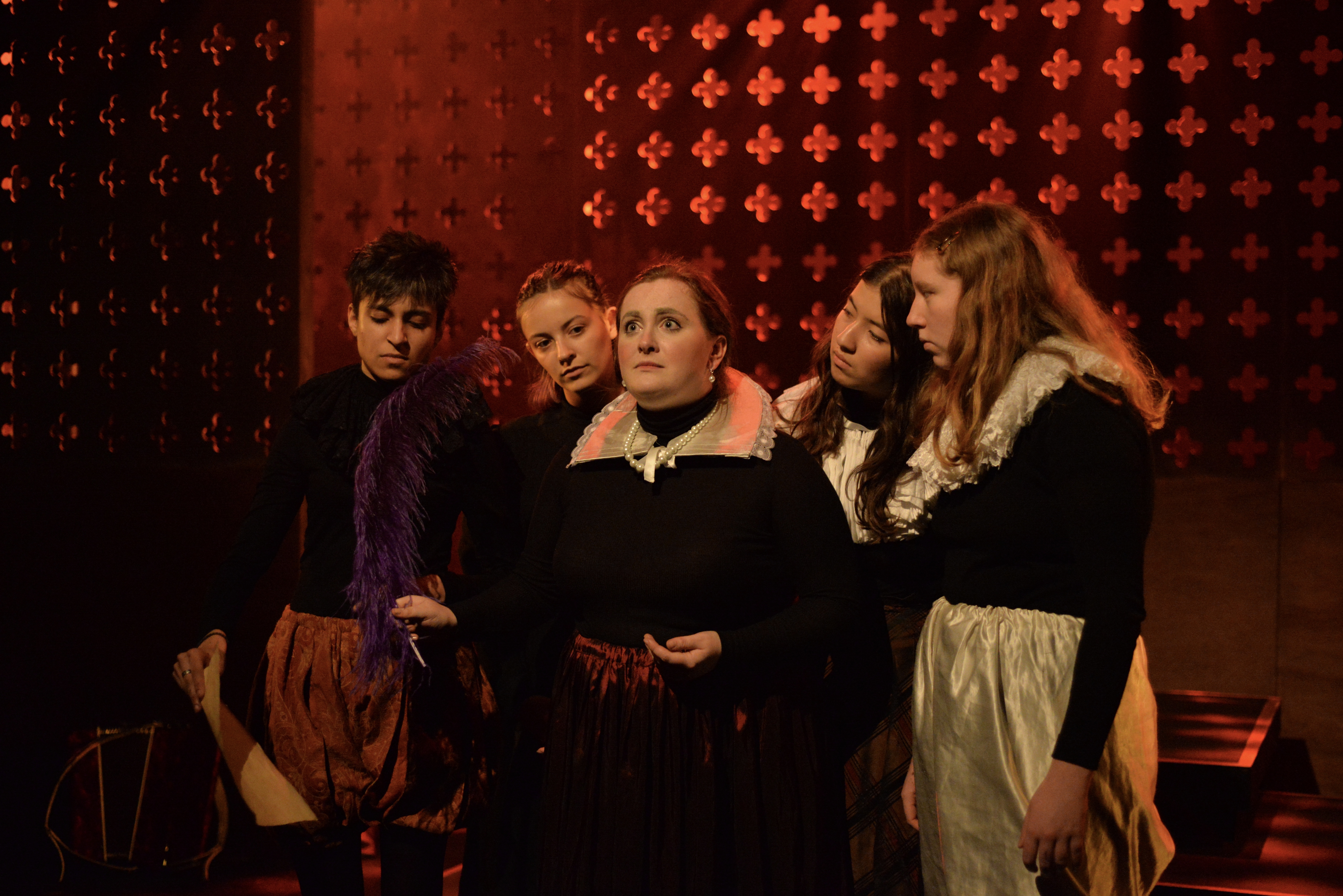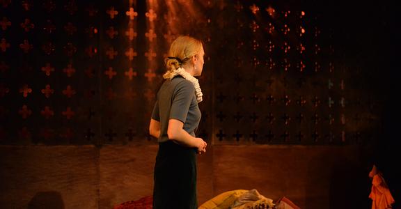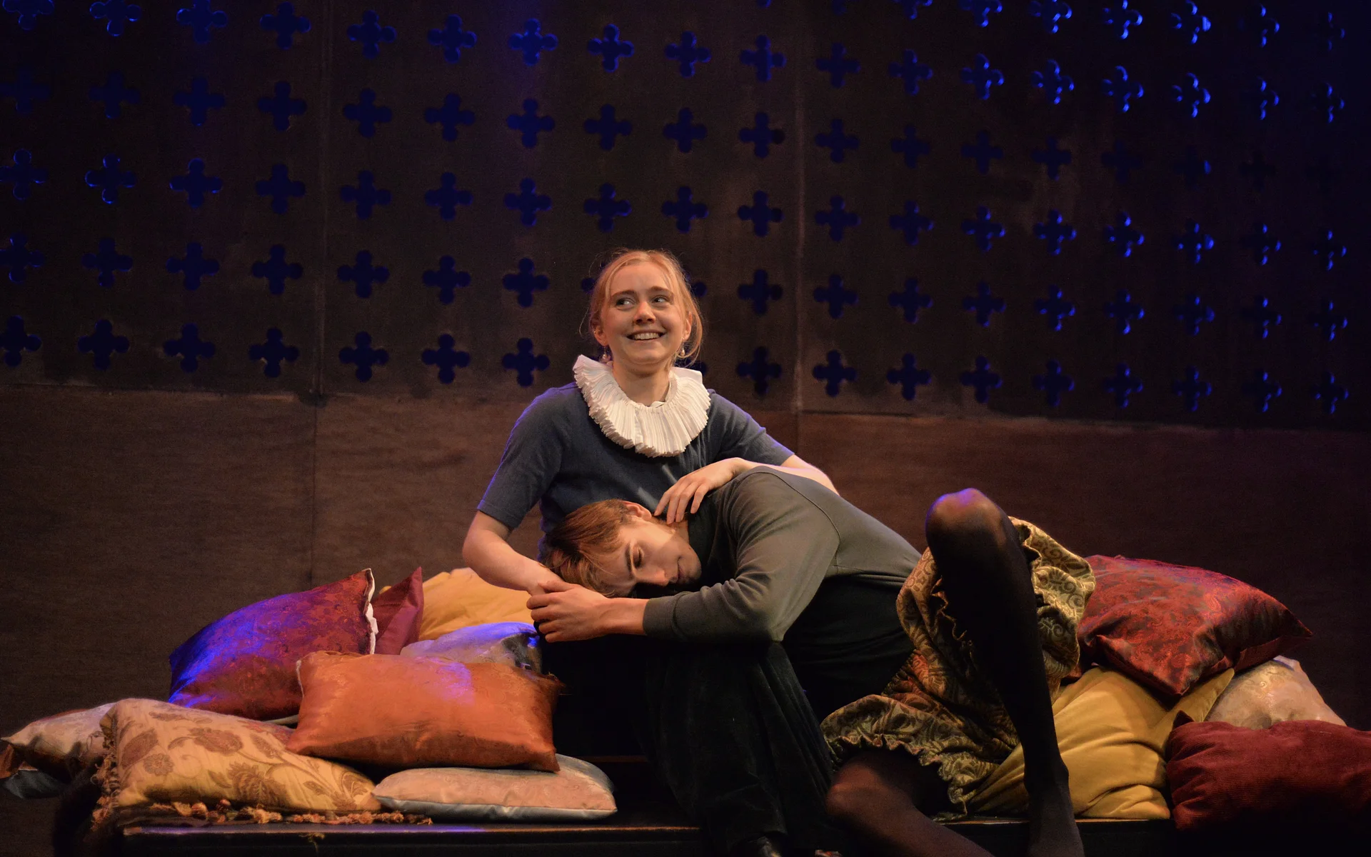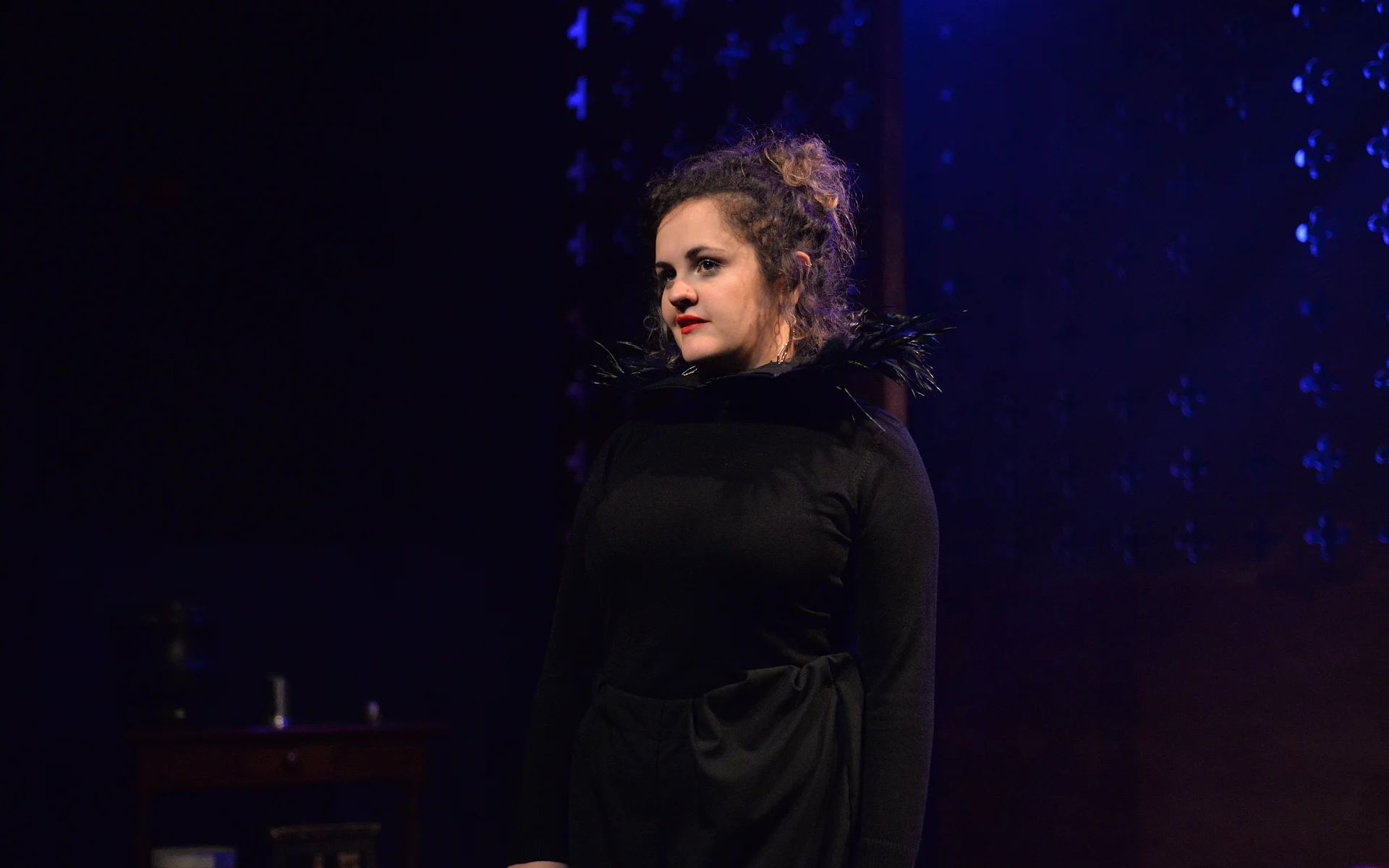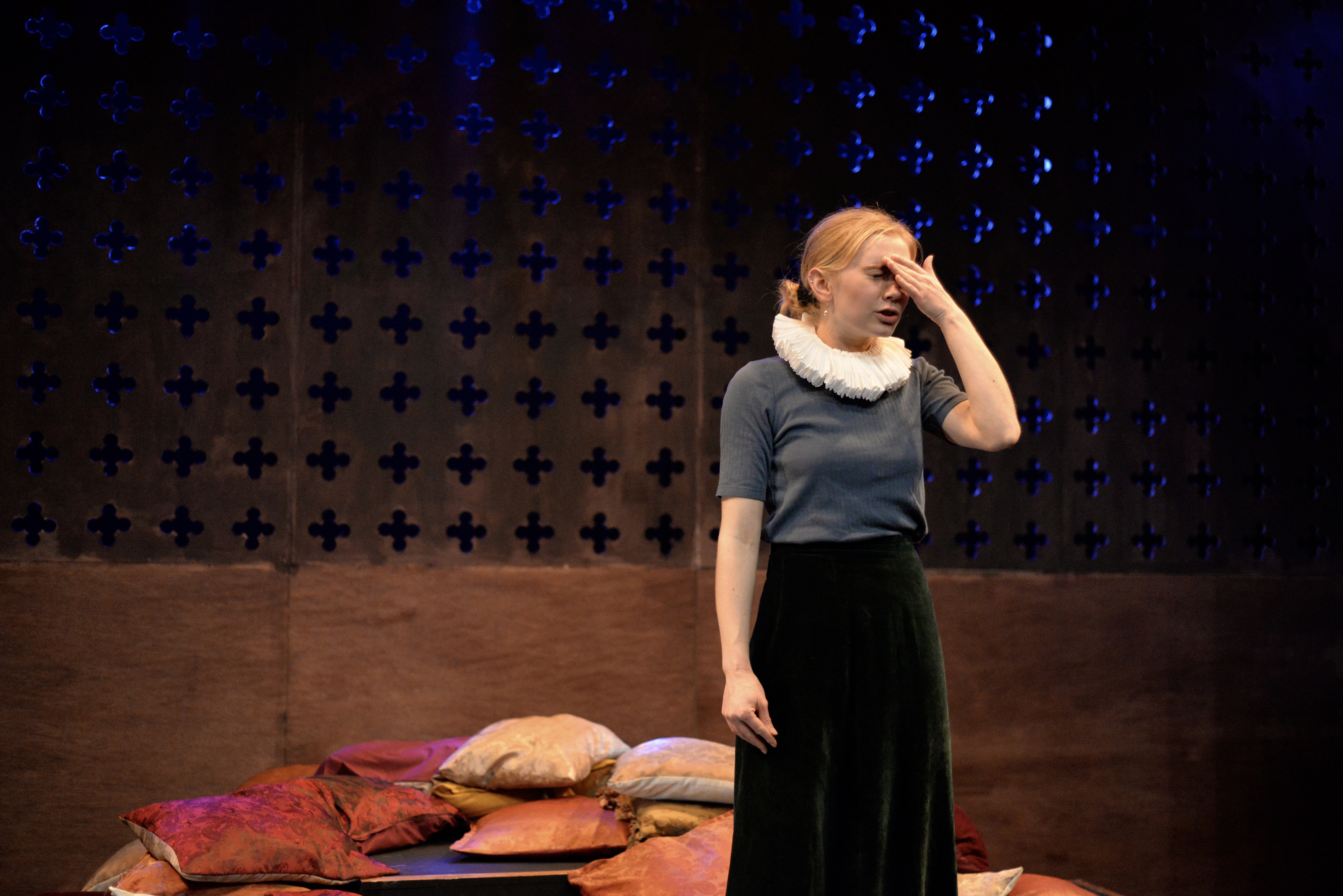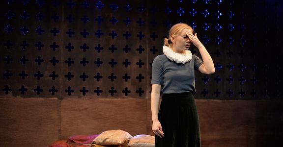 Indeed, Matthew Marshland’s clever design that makes great use of the Bedlam space, allowing the players to come right out into the audience so they are, at times, addressing them directly from the front row. It is lit with a great sense of atmosphere by Elissa Webb.