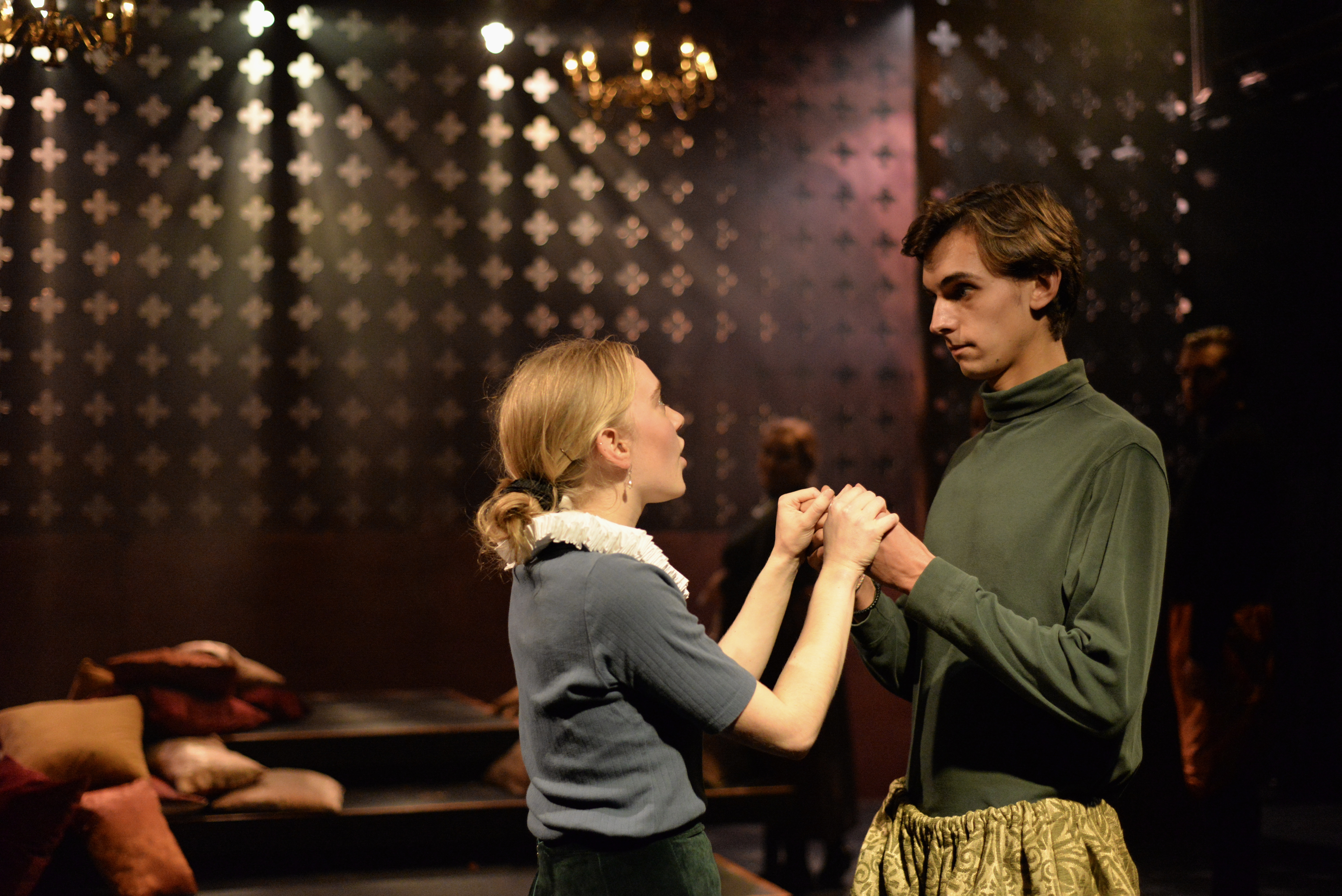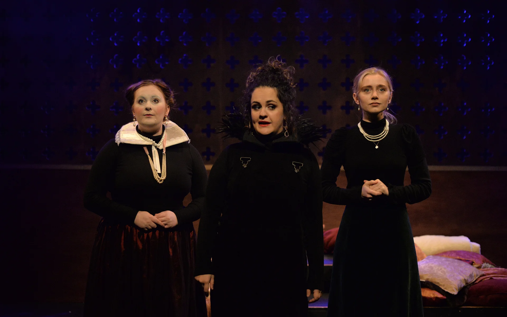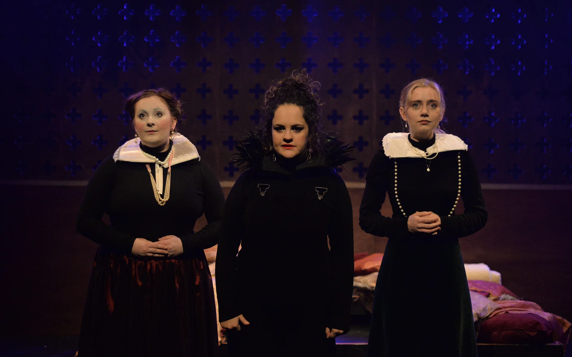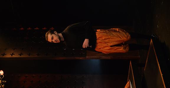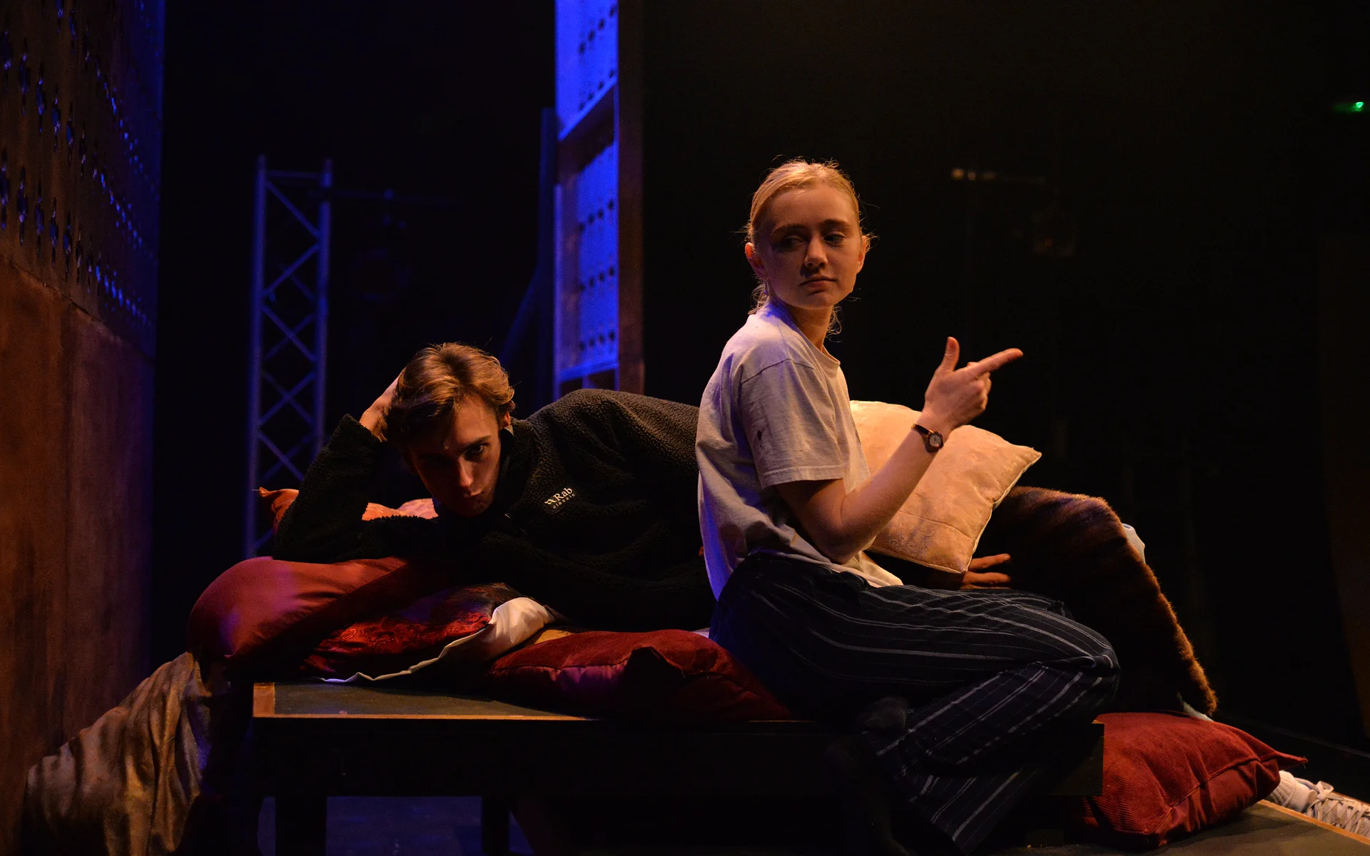Indeed, Matthew Marshland’s clever design that makes great use of the Bedlam space, allowing the players to come right out into the audience so they are, at times, addressing them directly from the front row. It is lit with a great sense of atmosphere by Elissa Webb.