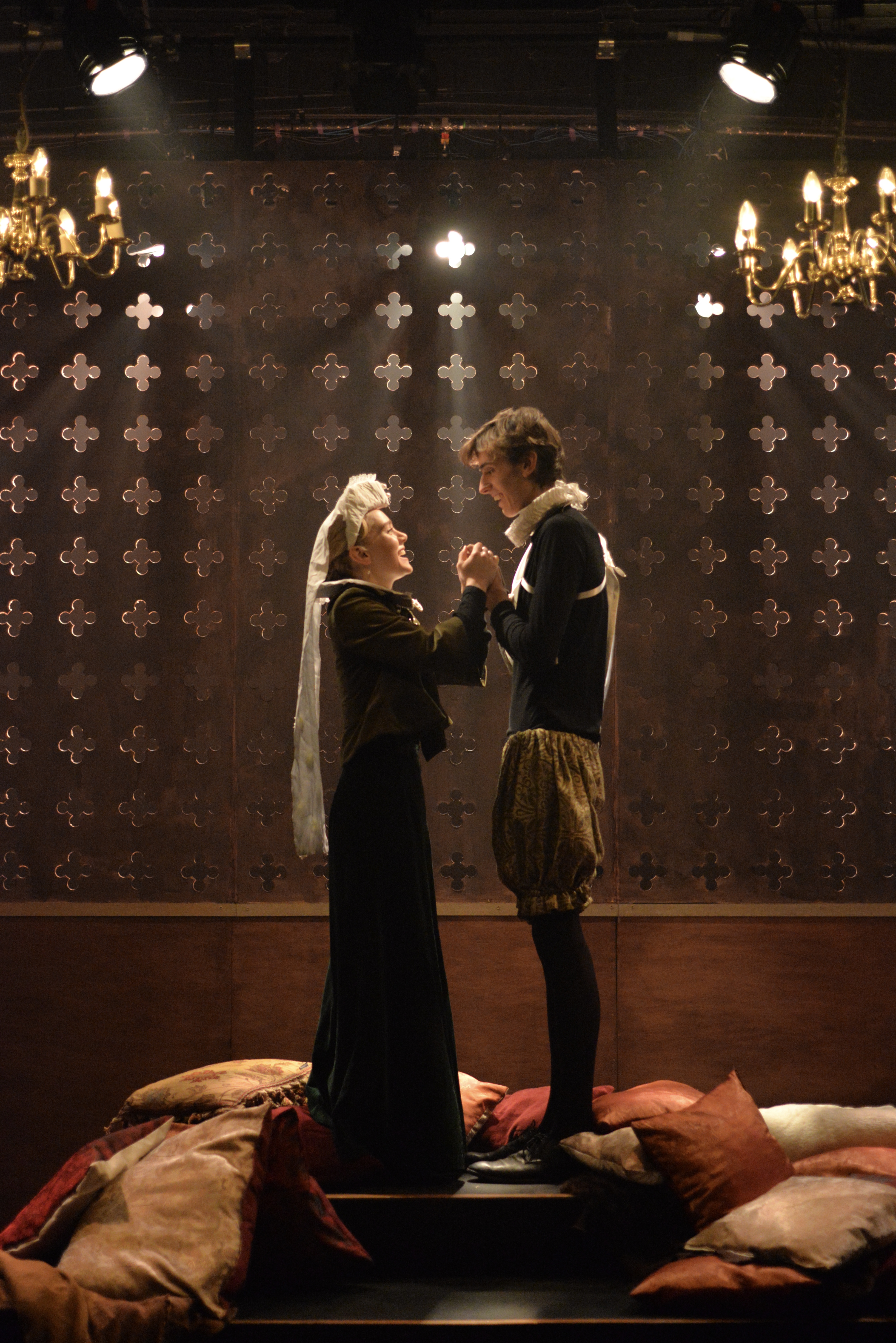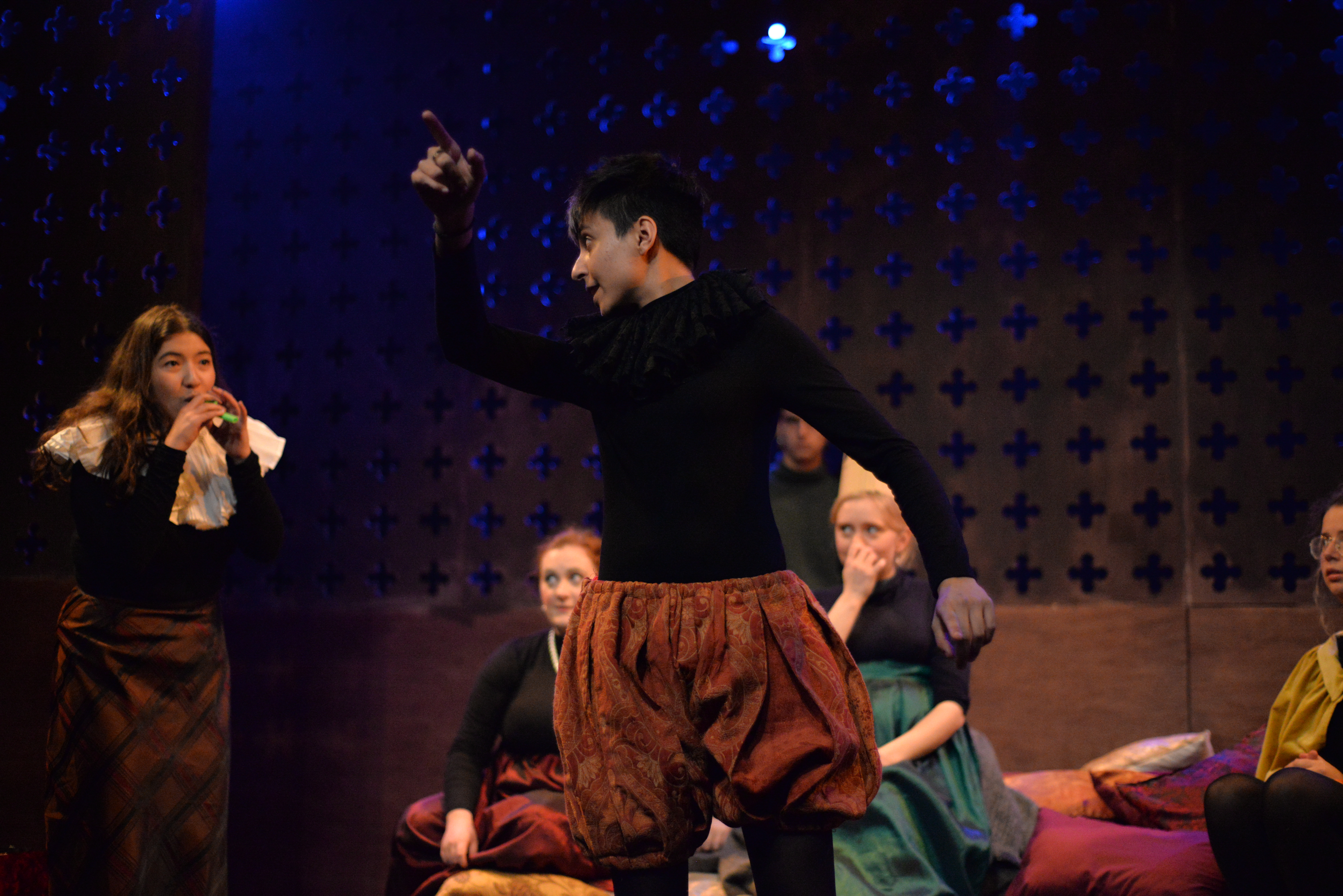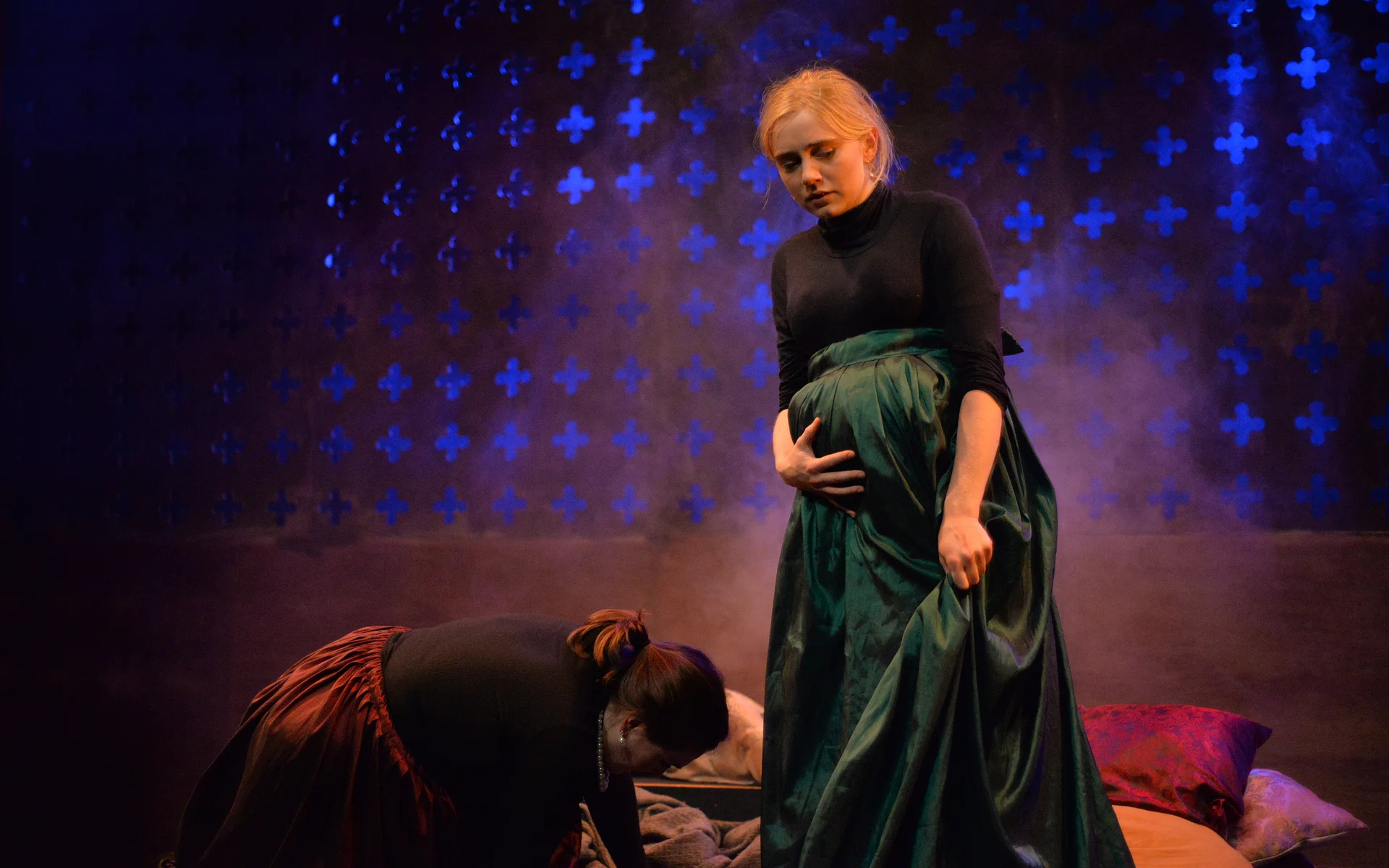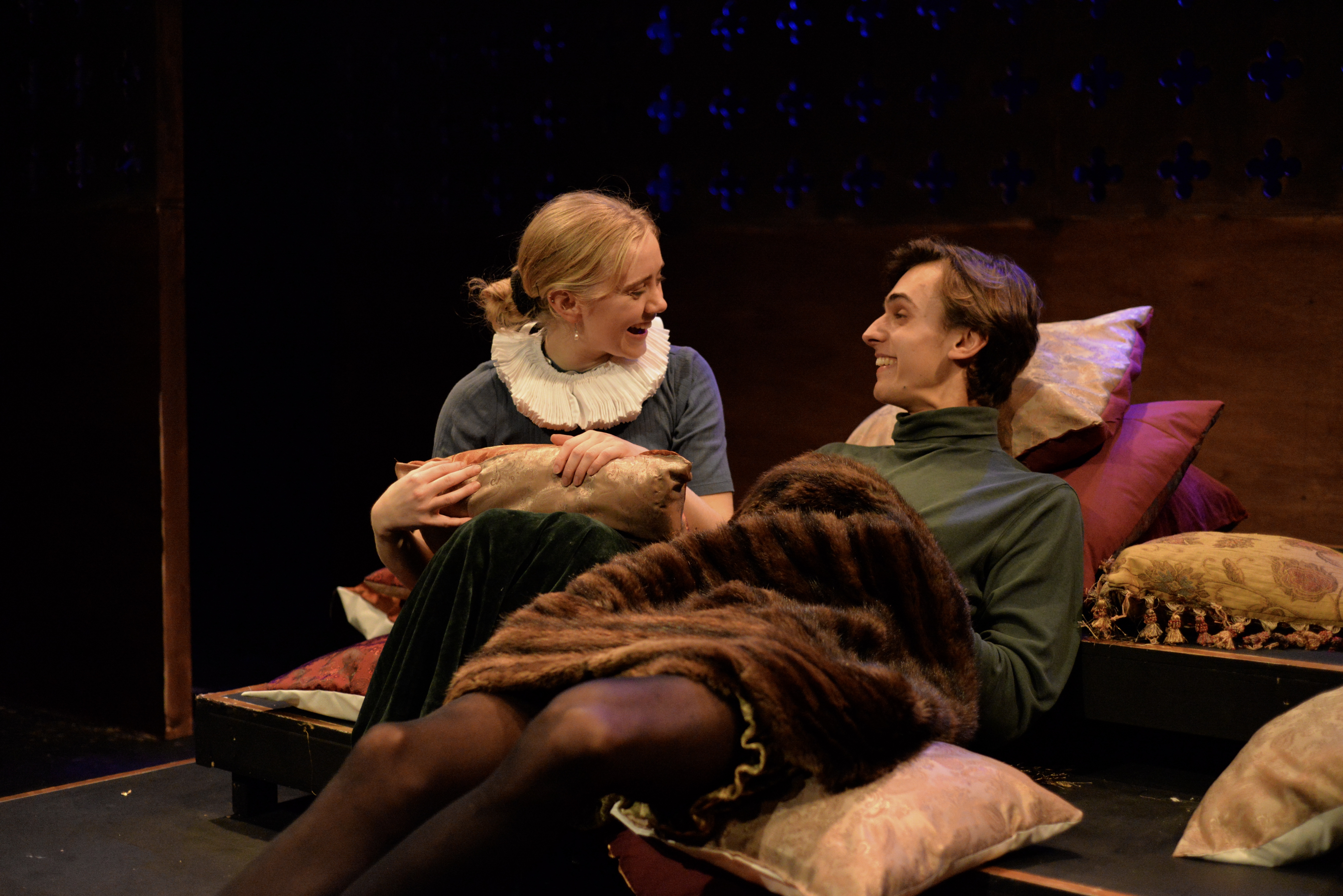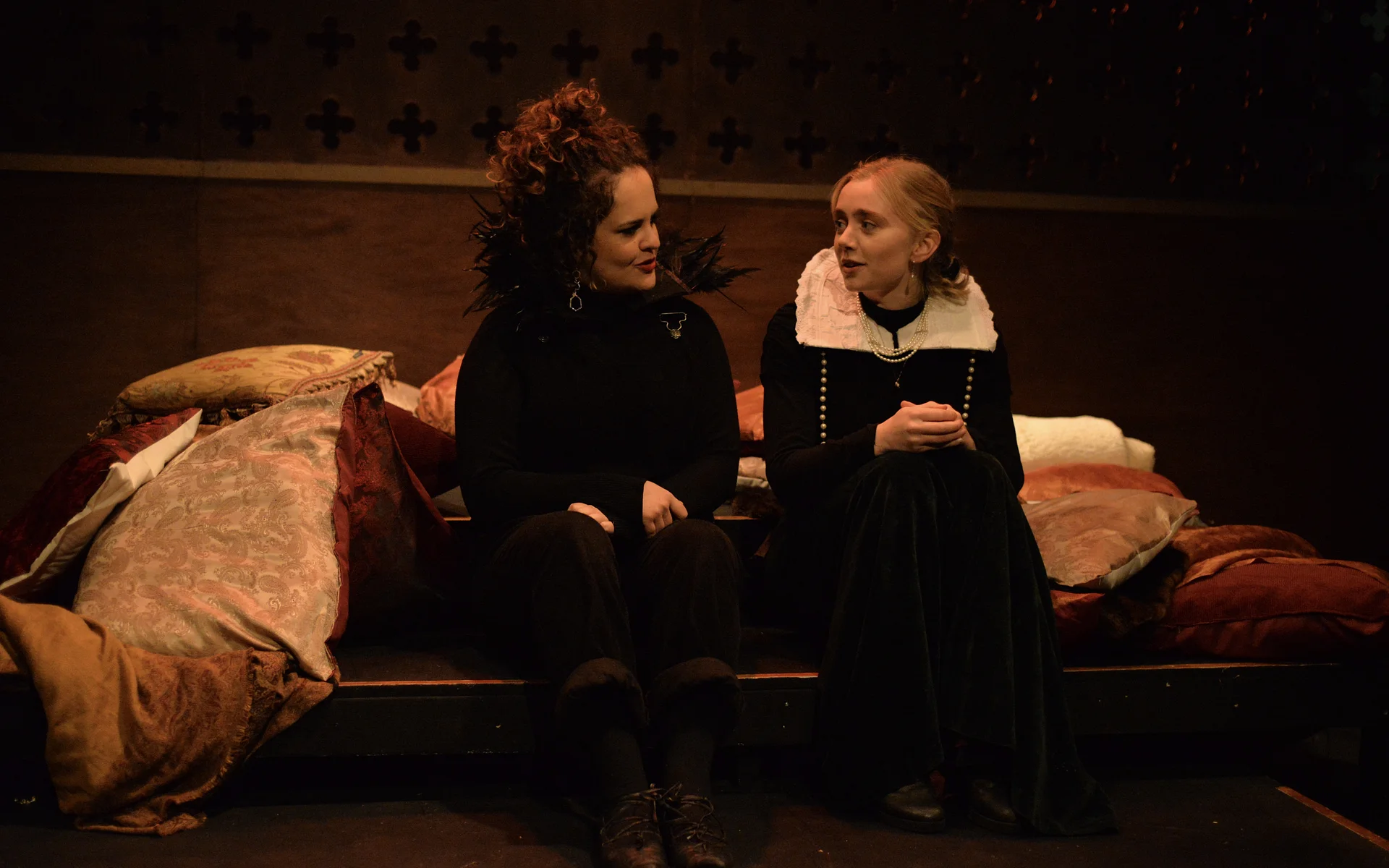 Indeed, Matthew Marshland’s clever design that makes great use of the Bedlam space, allowing the players to come right out into the audience so they are, at times, addressing them directly from the front row. It is lit with a great sense of atmosphere by Elissa Webb.