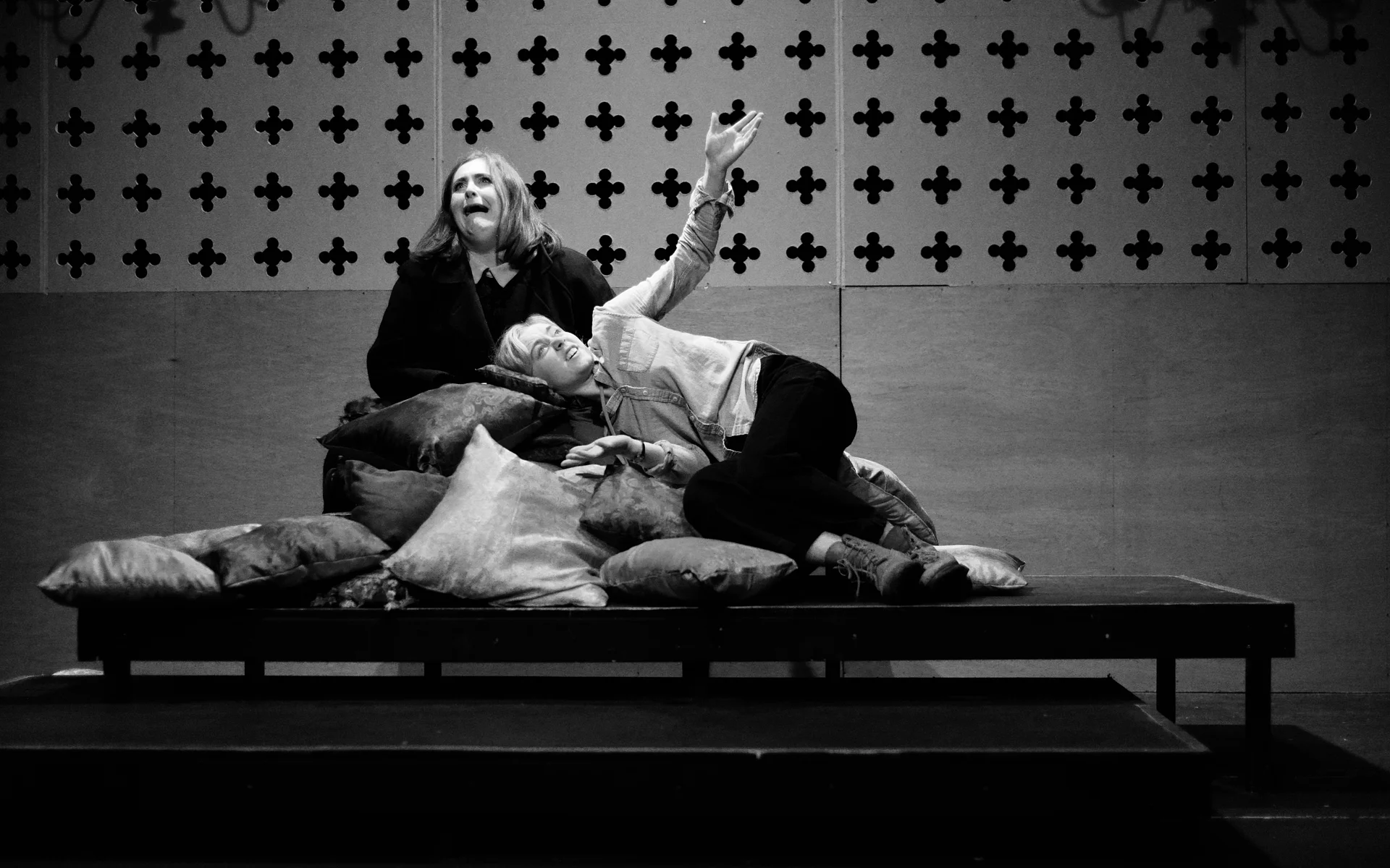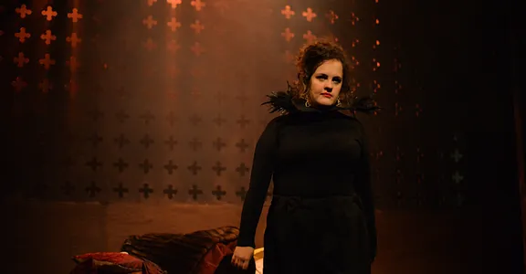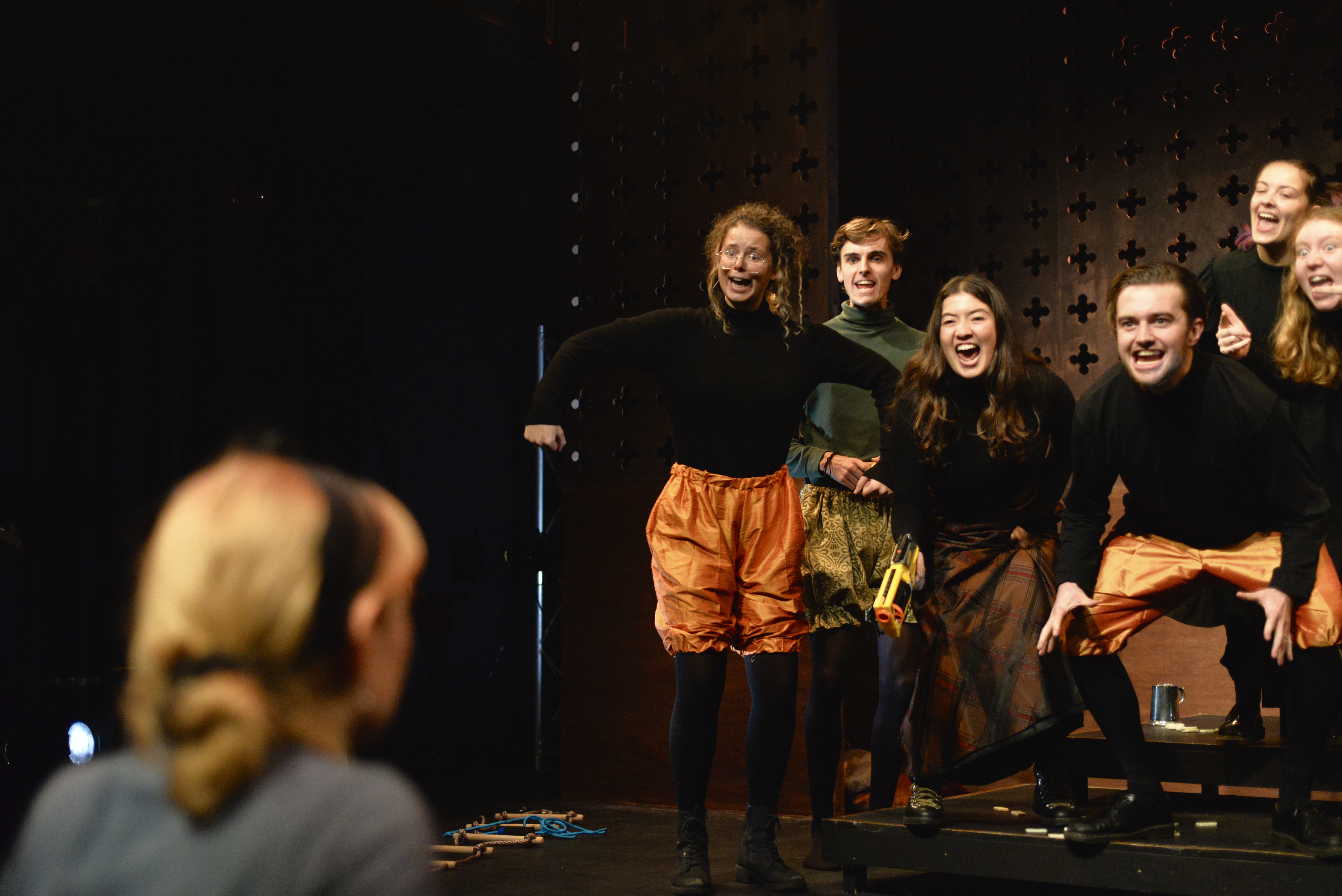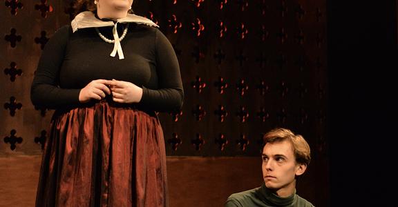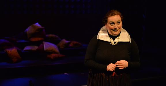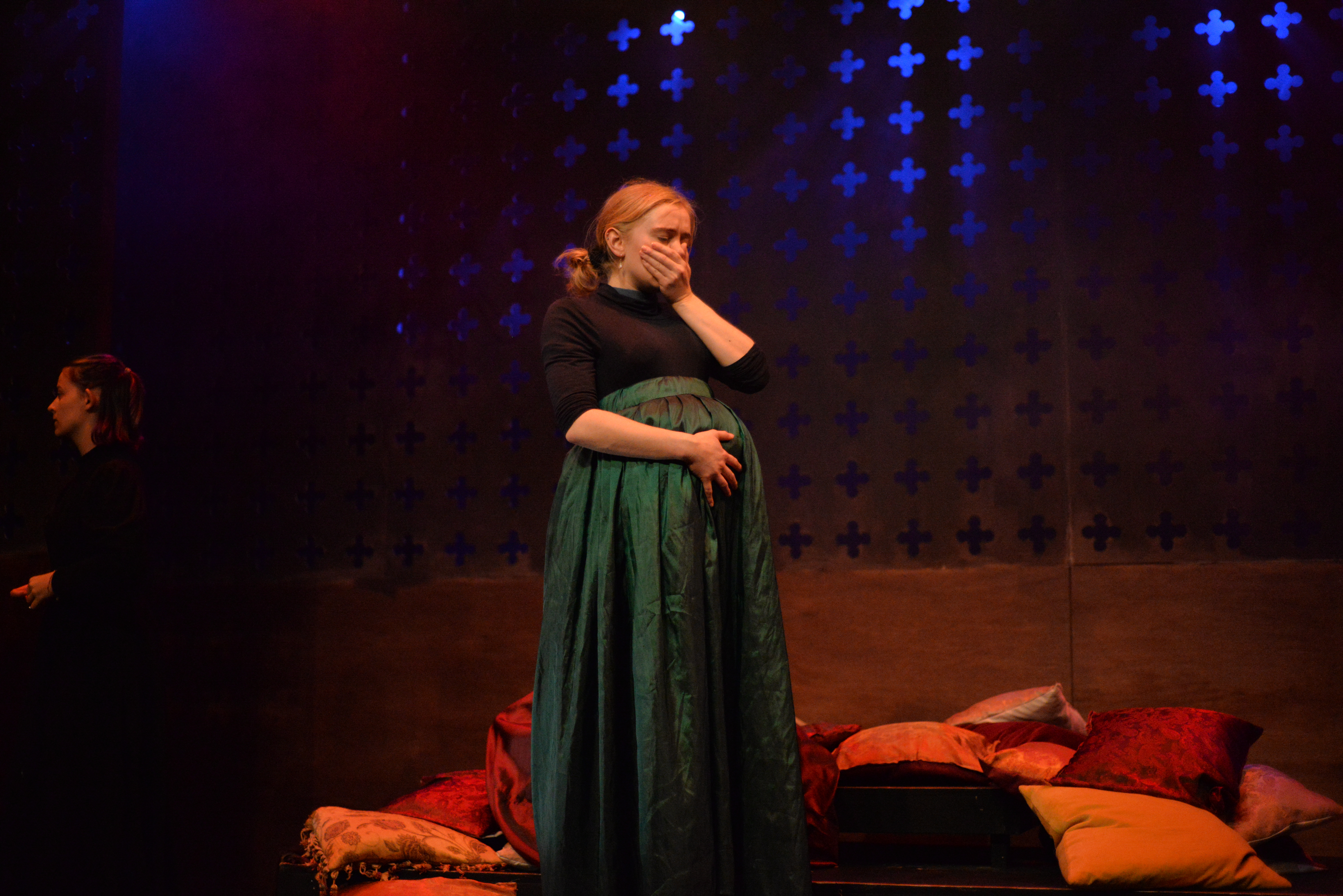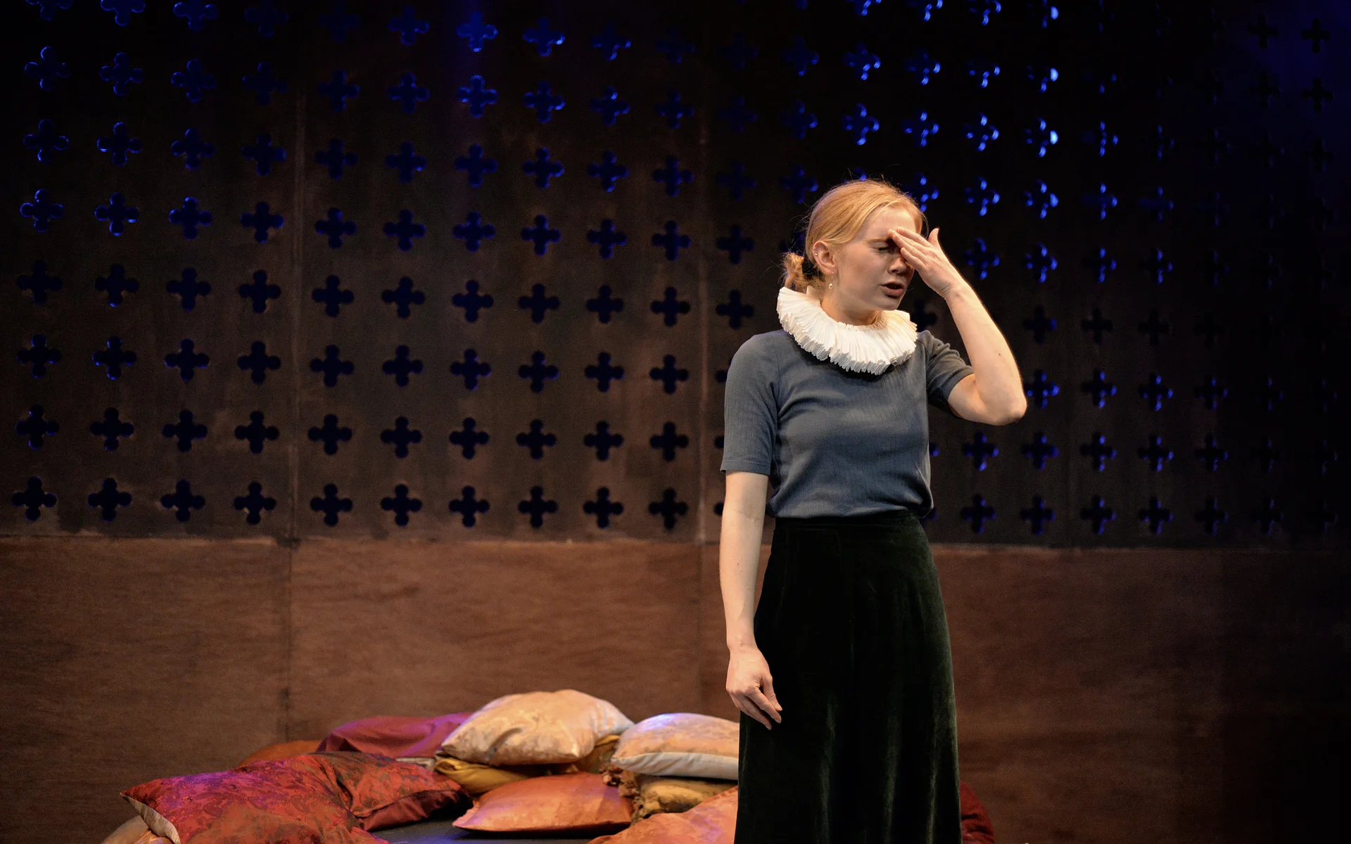Indeed, Matthew Marshland’s clever design that makes great use of the Bedlam space, allowing the players to come right out into the audience so they are, at times, addressing them directly from the front row. It is lit with a great sense of atmosphere by Elissa Webb.