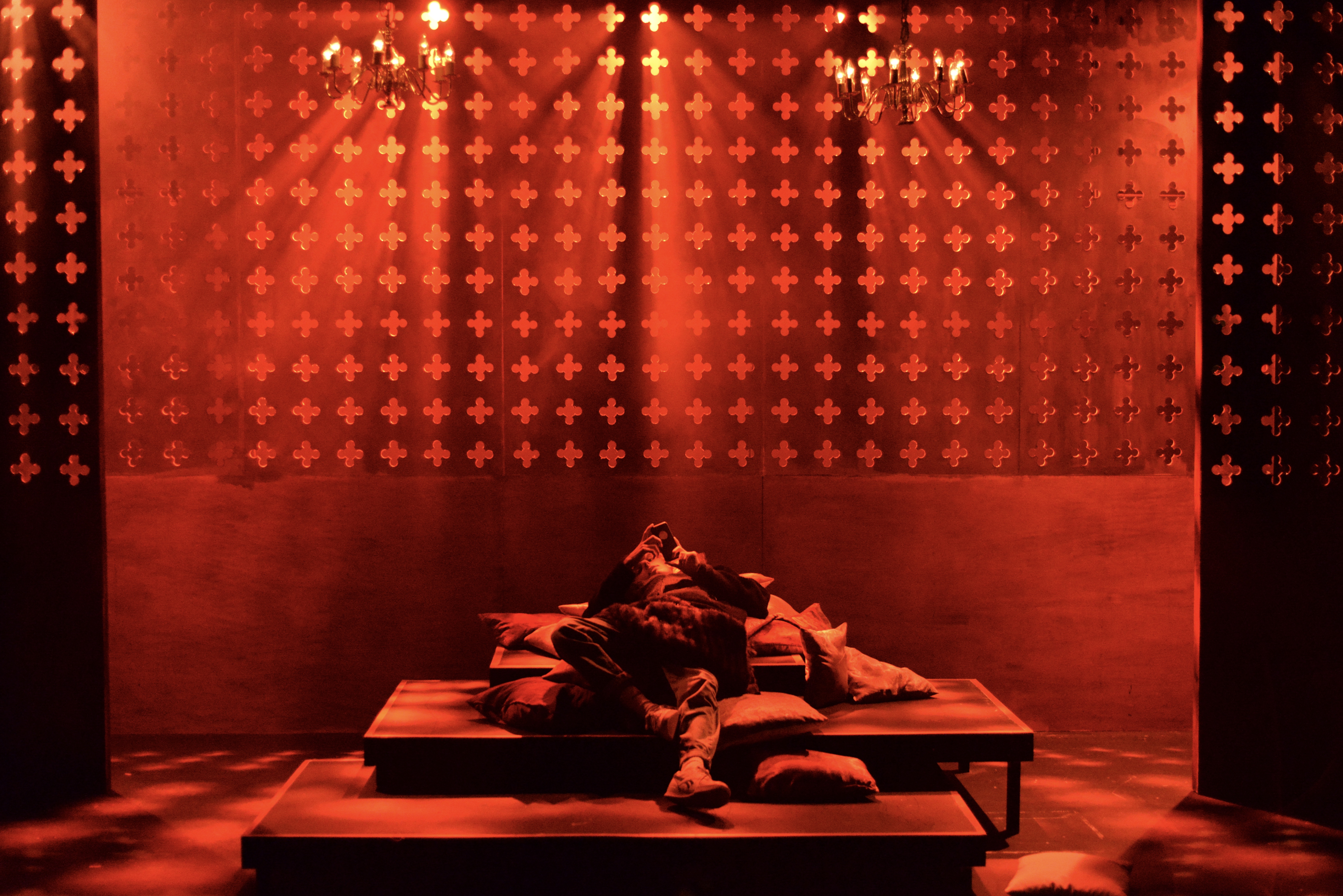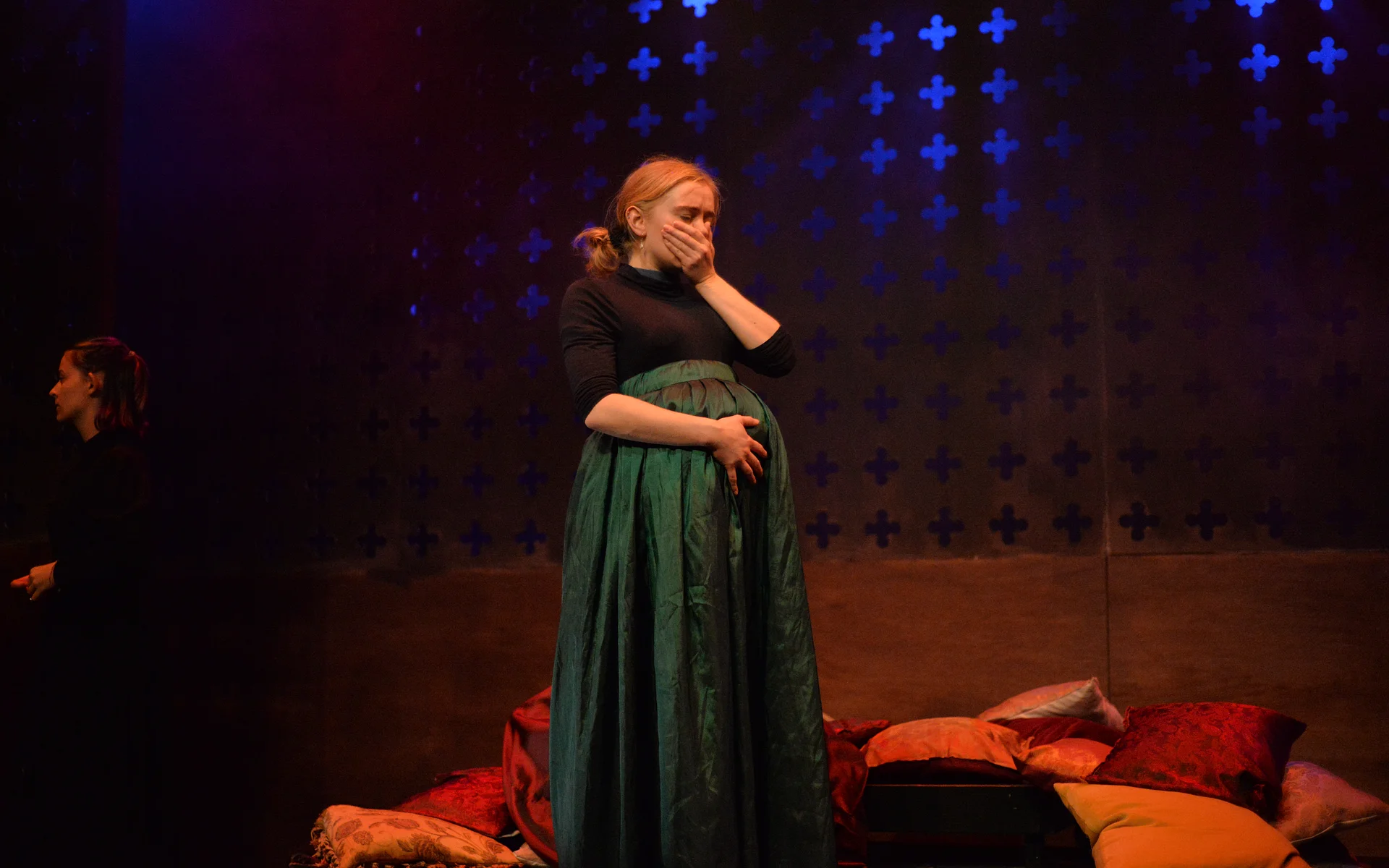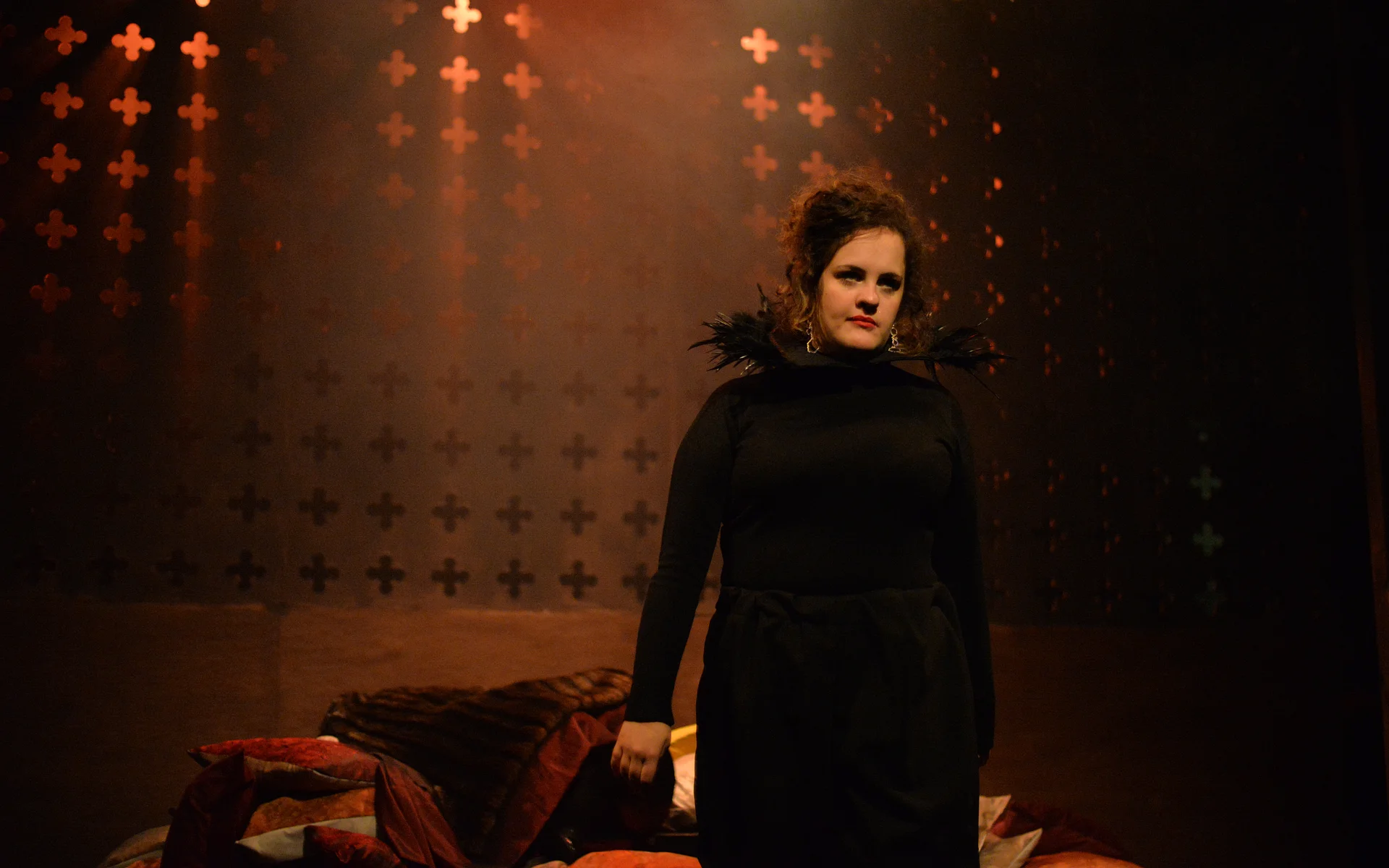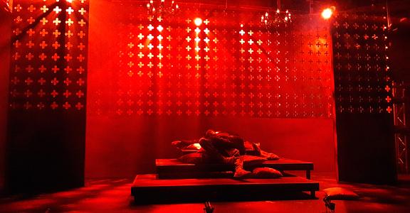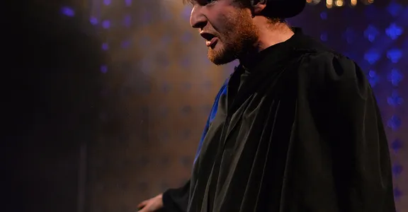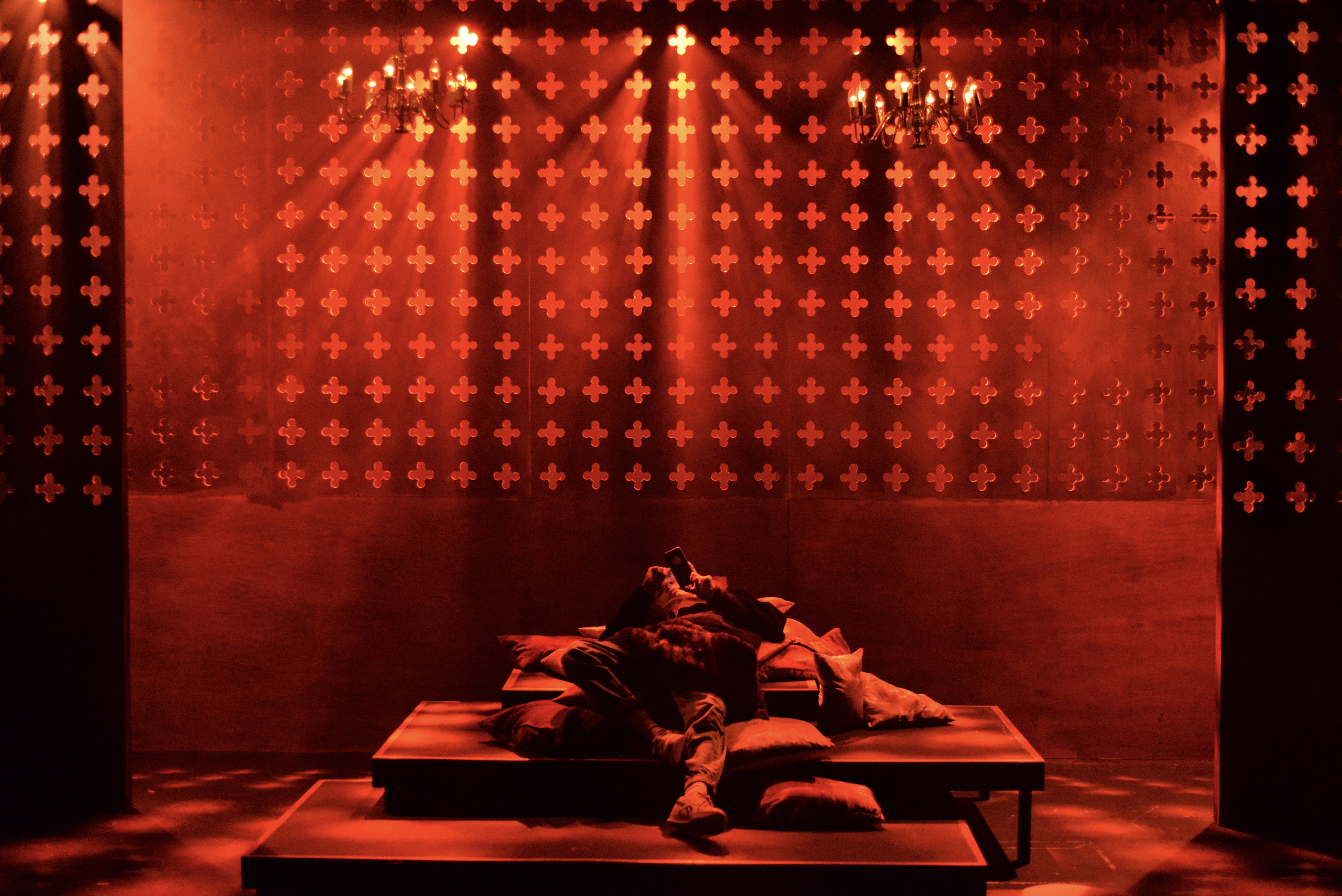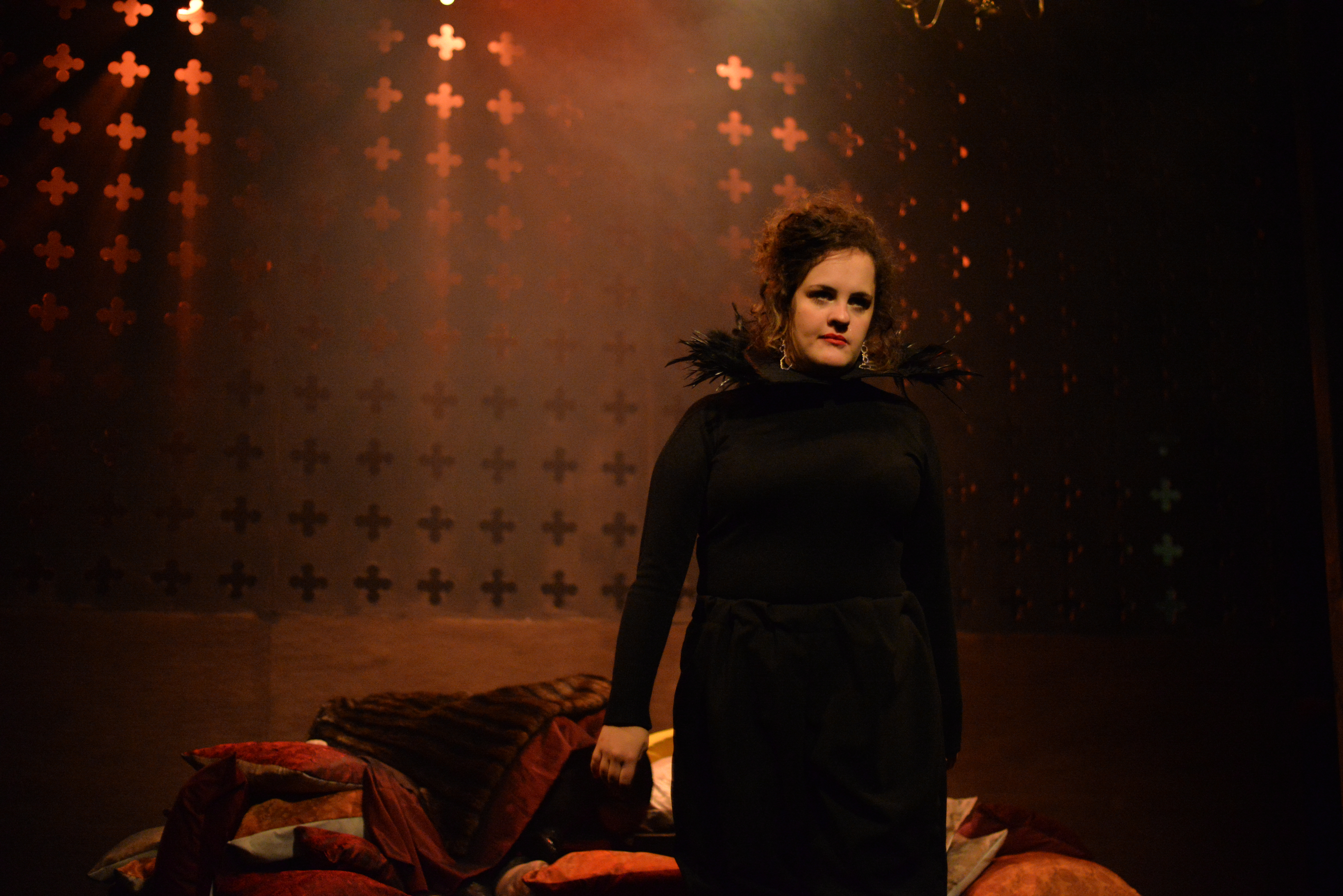 Indeed, Matthew Marshland’s clever design that makes great use of the Bedlam space, allowing the players to come right out into the audience so they are, at times, addressing them directly from the front row. It is lit with a great sense of atmosphere by Elissa Webb.