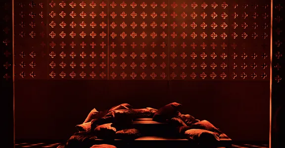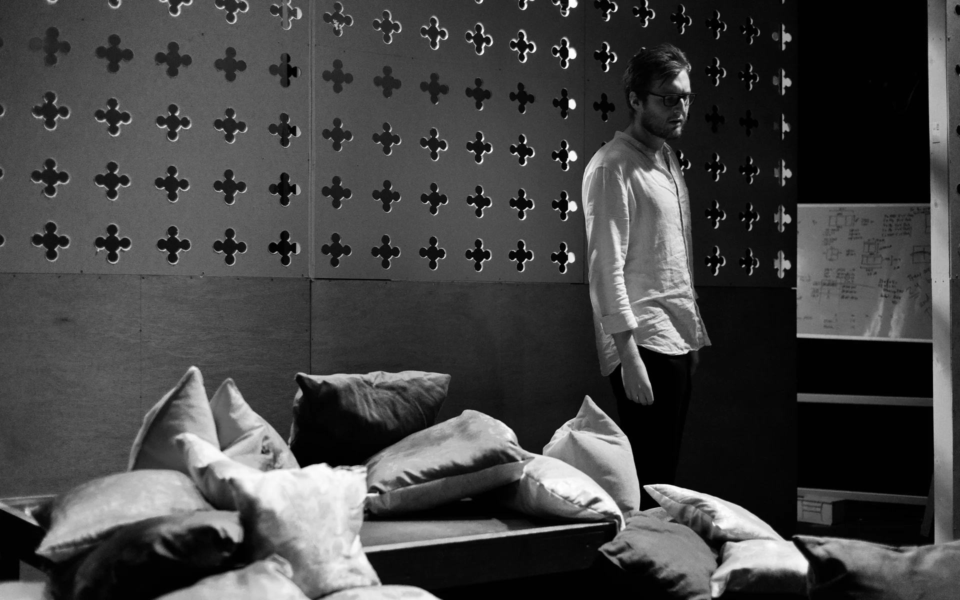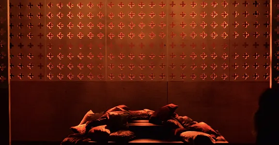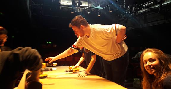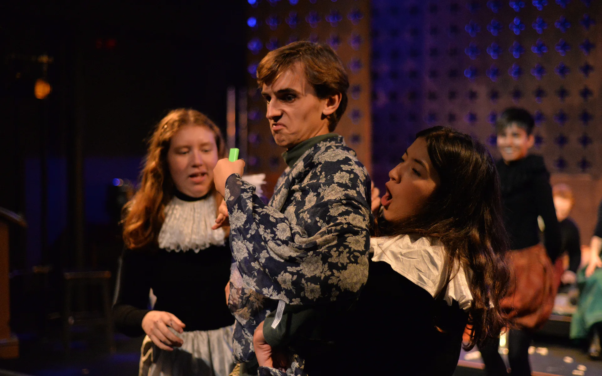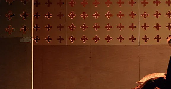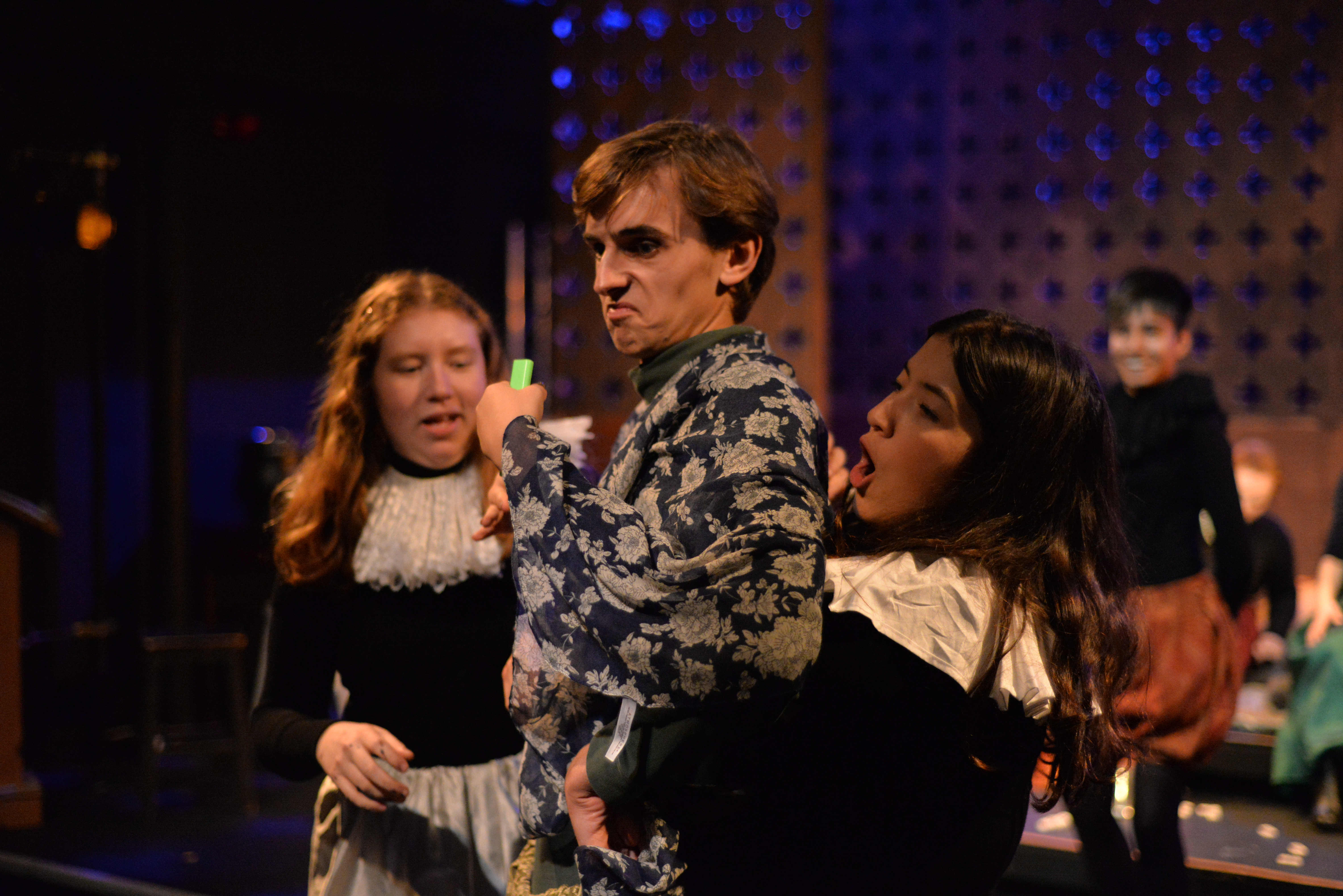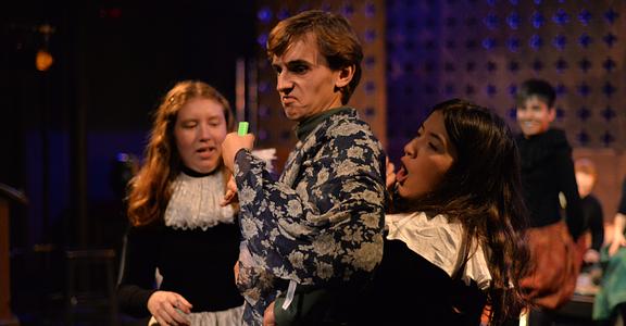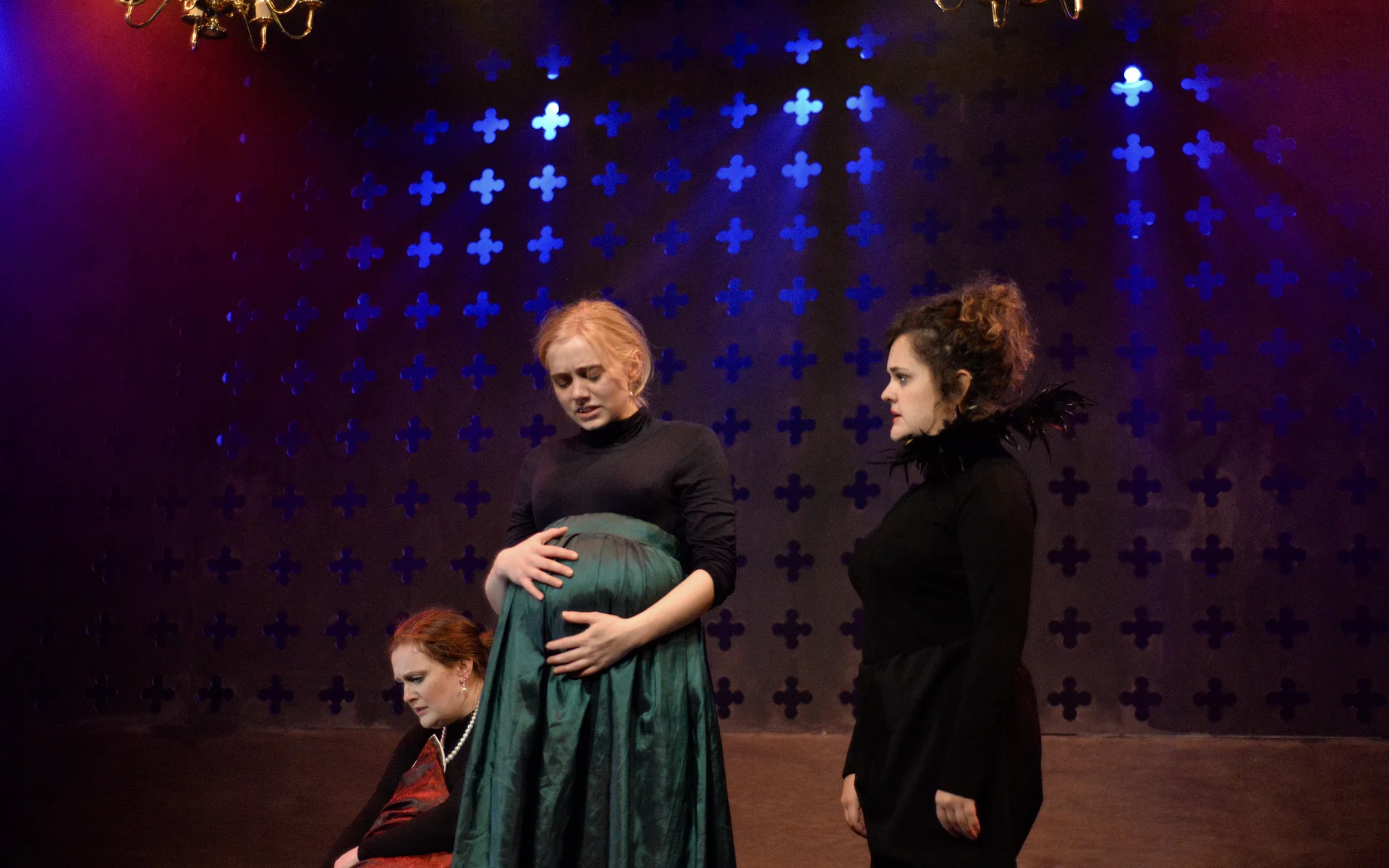 Indeed, Matthew Marshland’s clever design that makes great use of the Bedlam space, allowing the players to come right out into the audience so they are, at times, addressing them directly from the front row. It is lit with a great sense of atmosphere by Elissa Webb.