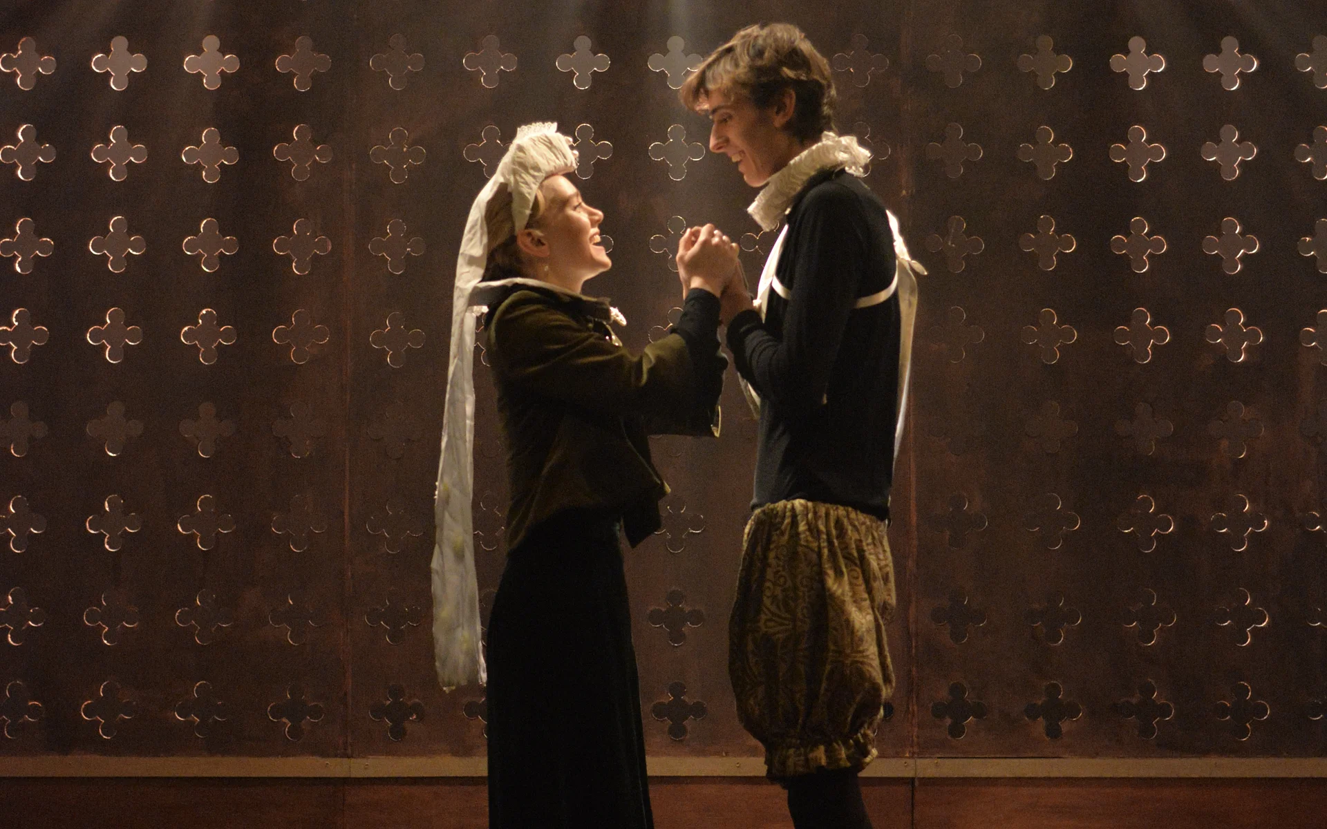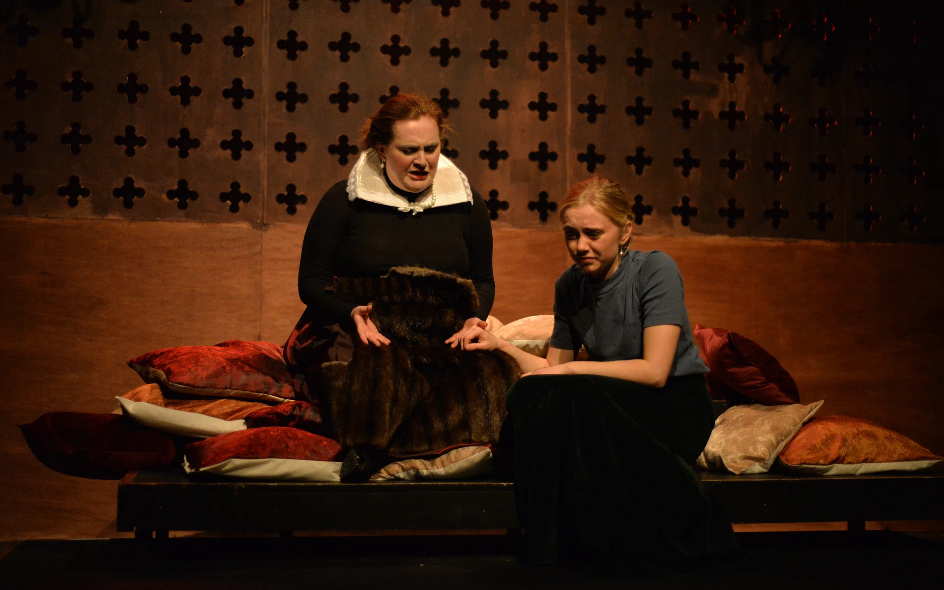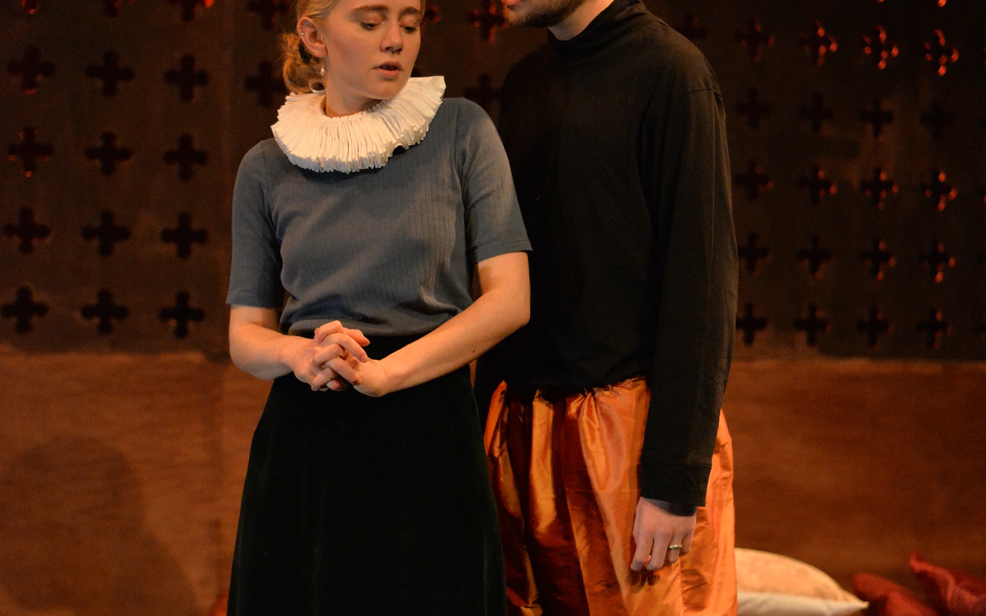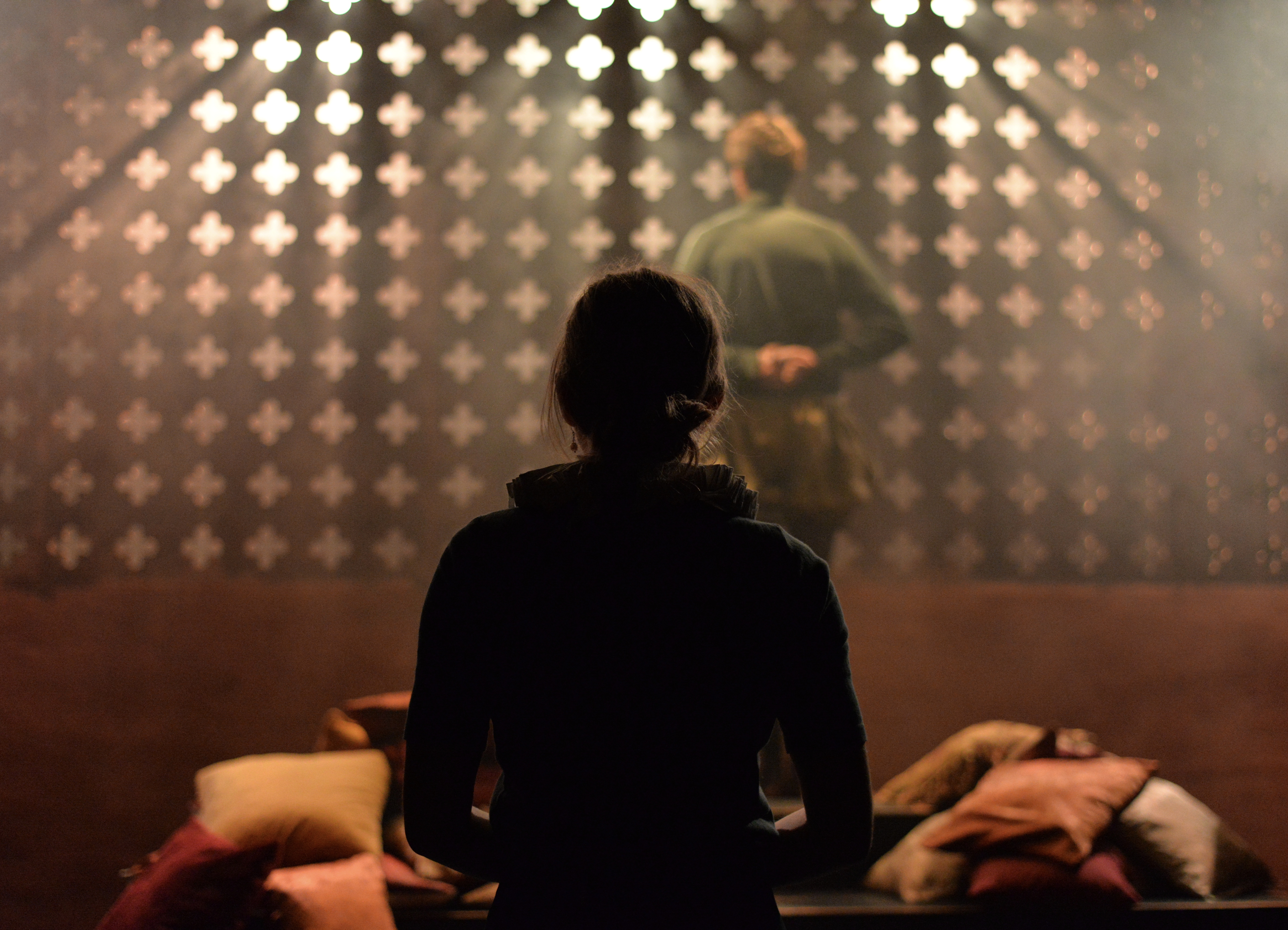 There’s a great sense of inclusion from the start – get there early to borrow a blanket or grab a cup of hot toddy and hang out with the cast as they listen to a few tunes on the fiddle. And the whole thing is played out in front of a backdrop that looks like a Rood screen