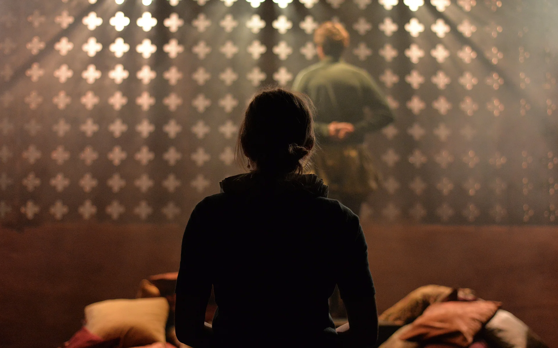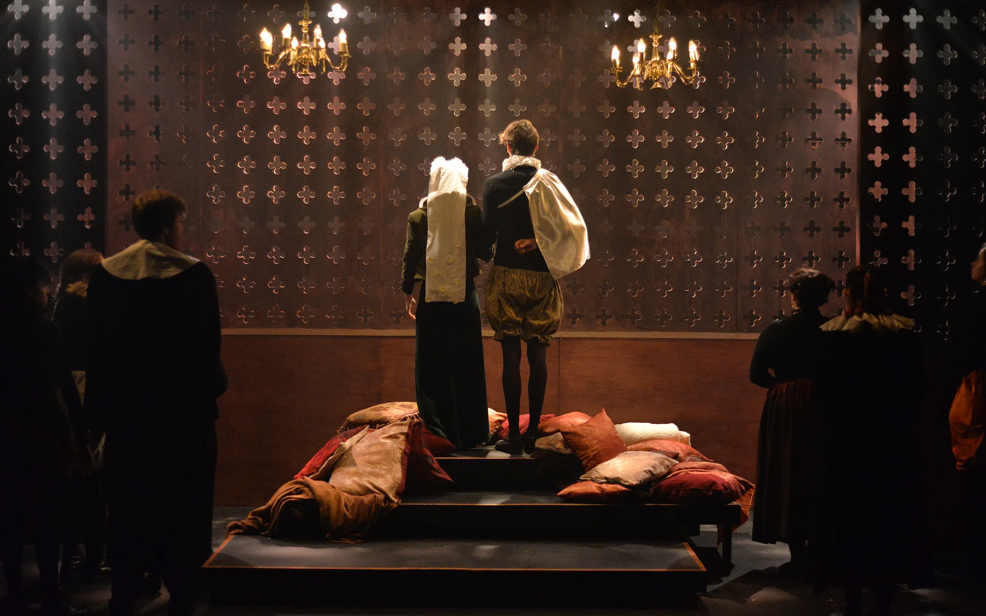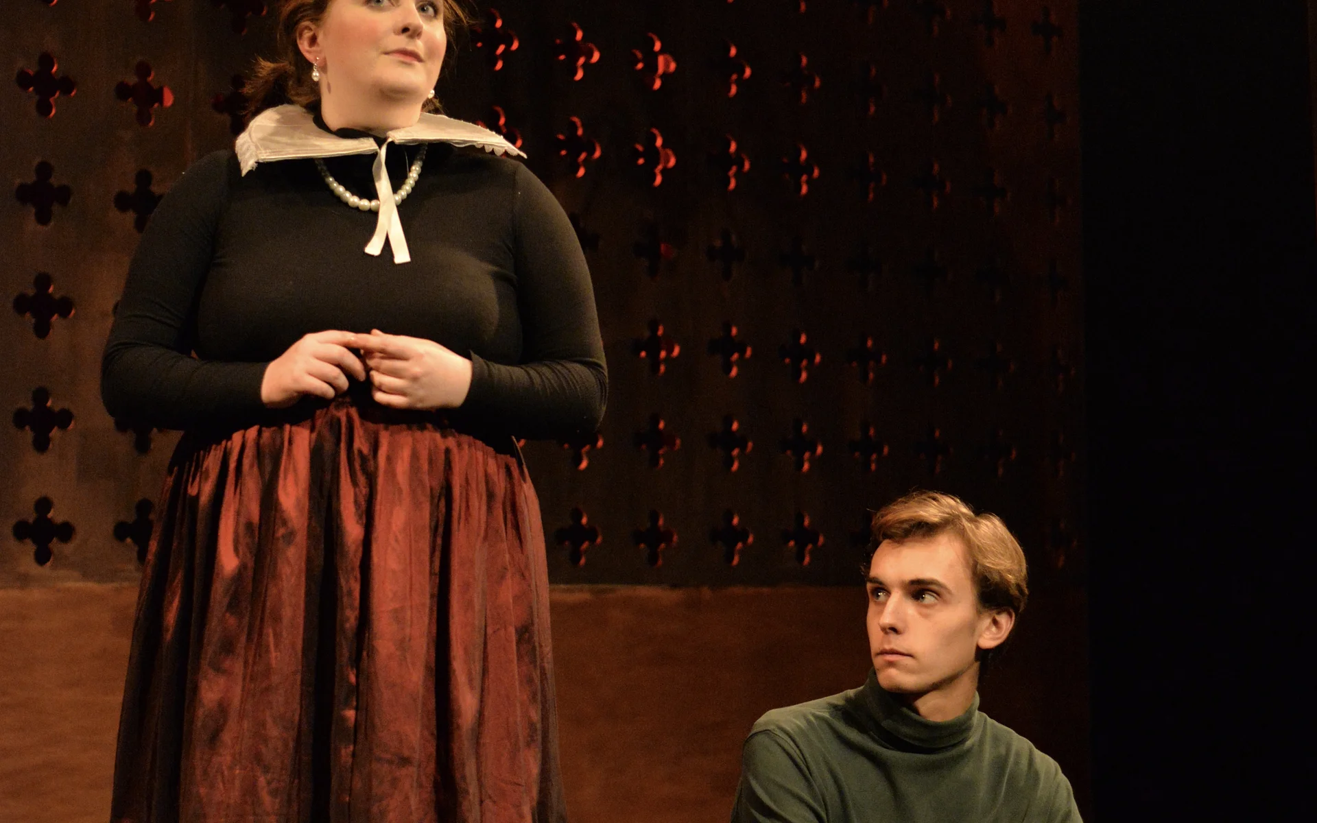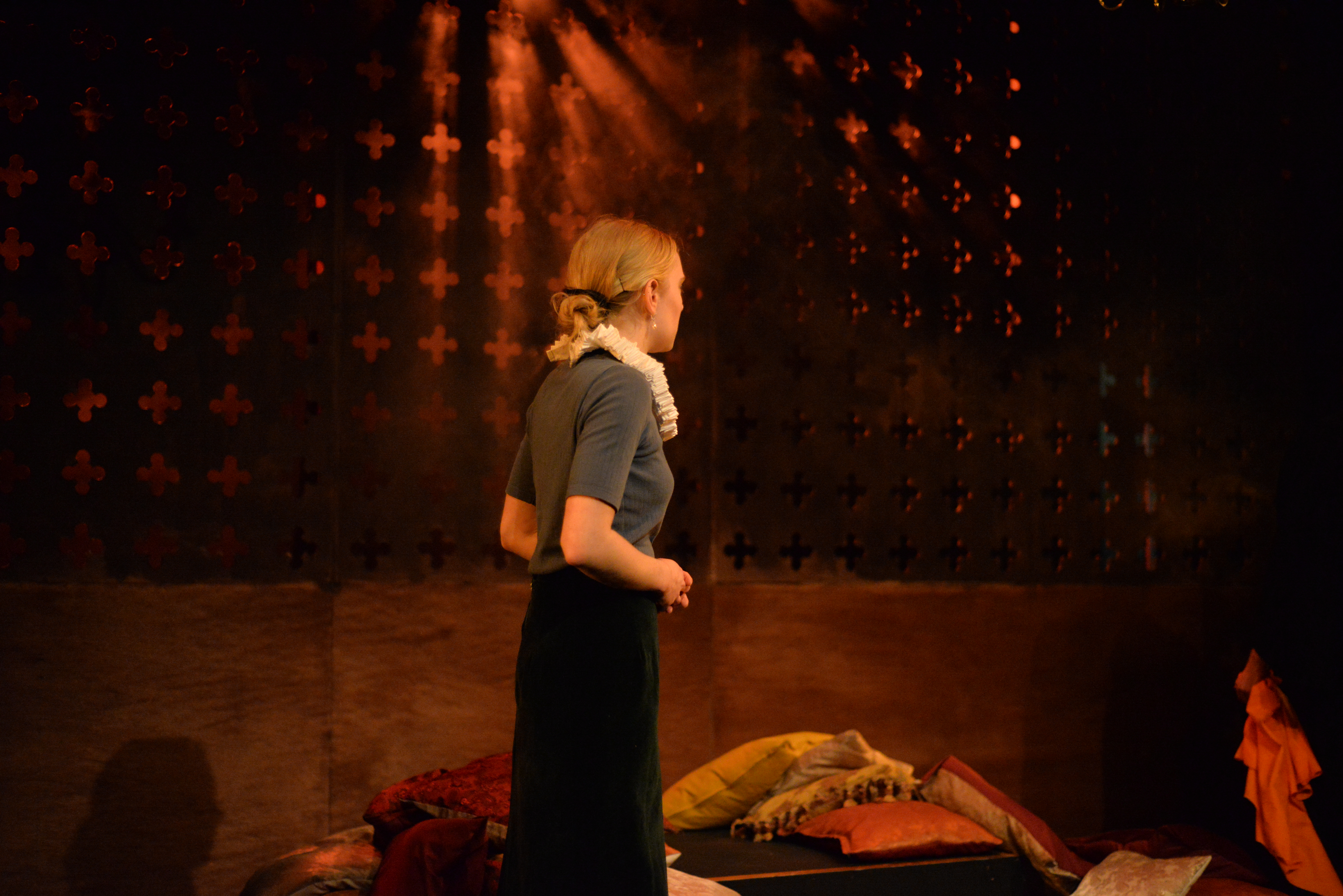 There’s a great sense of inclusion from the start – get there early to borrow a blanket or grab a cup of hot toddy and hang out with the cast as they listen to a few tunes on the fiddle. And the whole thing is played out in front of a backdrop that looks like a Rood screen