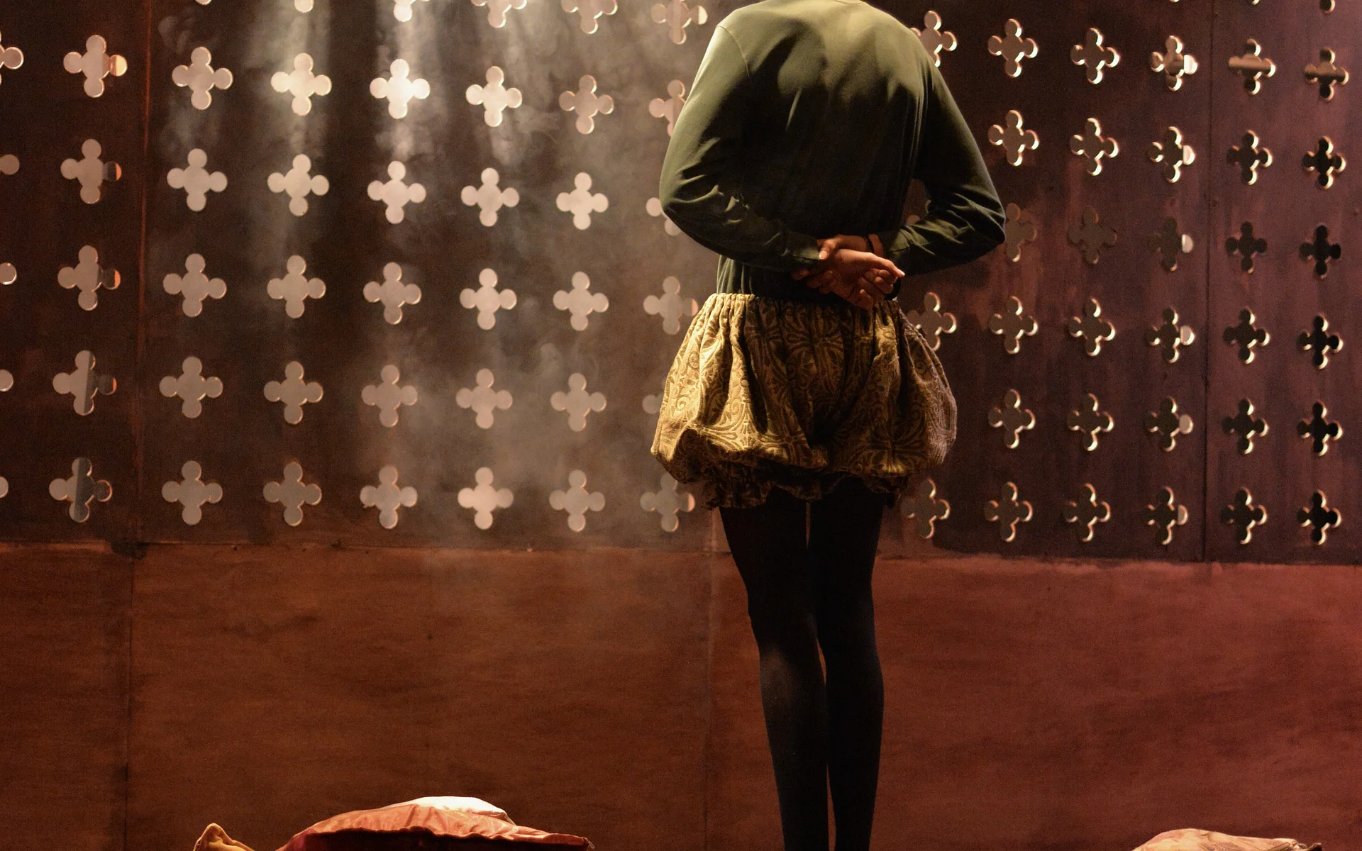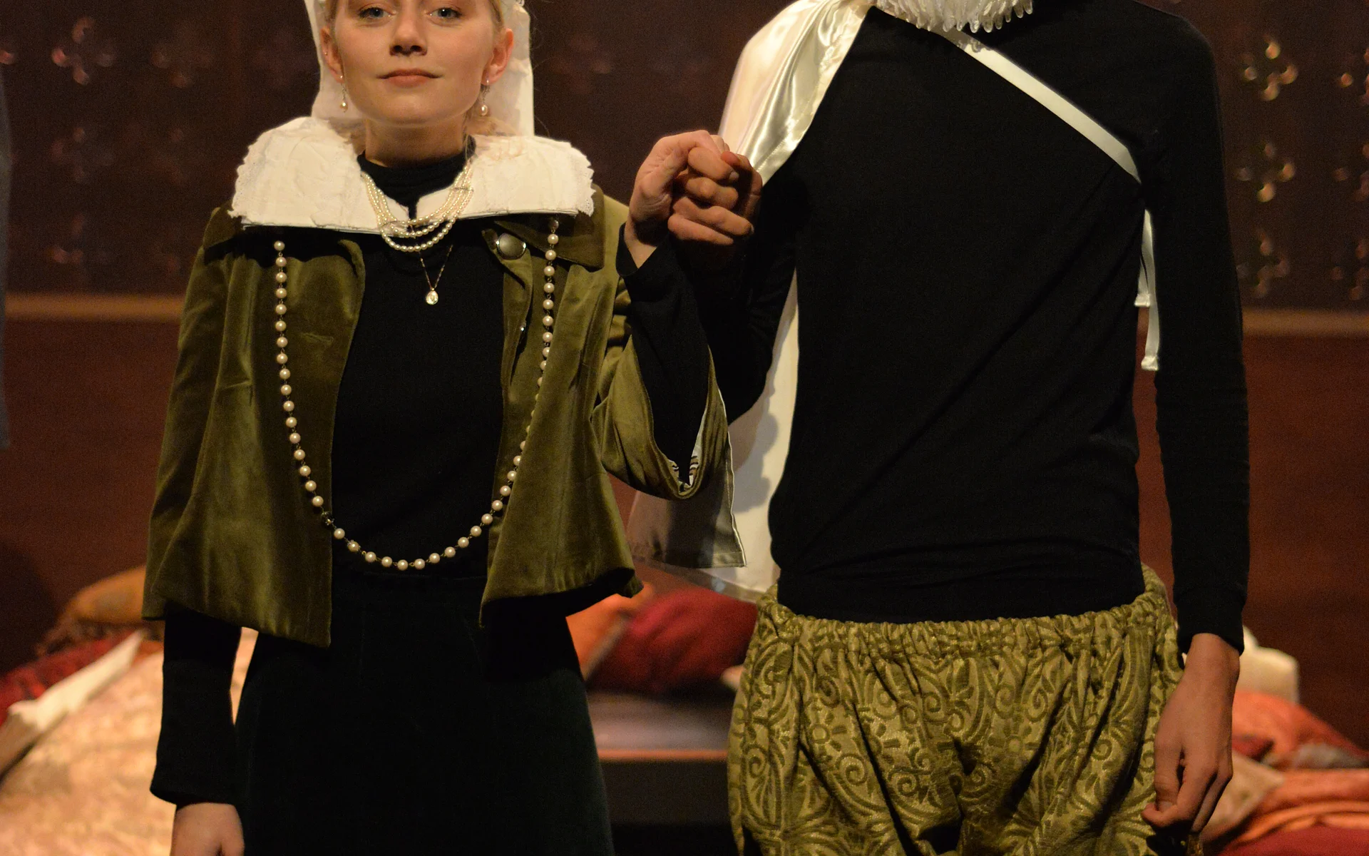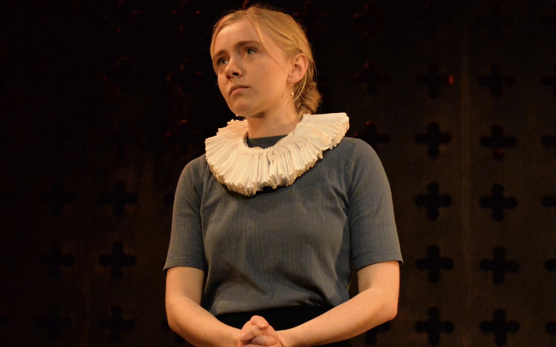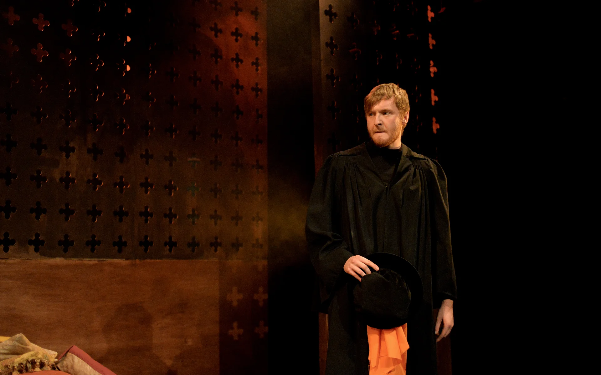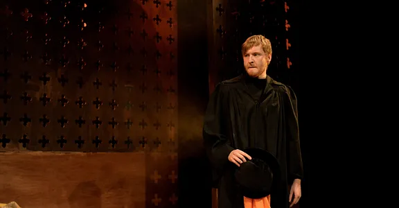 There’s a great sense of inclusion from the start – get there early to borrow a blanket or grab a cup of hot toddy and hang out with the cast as they listen to a few tunes on the fiddle. And the whole thing is played out in front of a backdrop that looks like a Rood screen