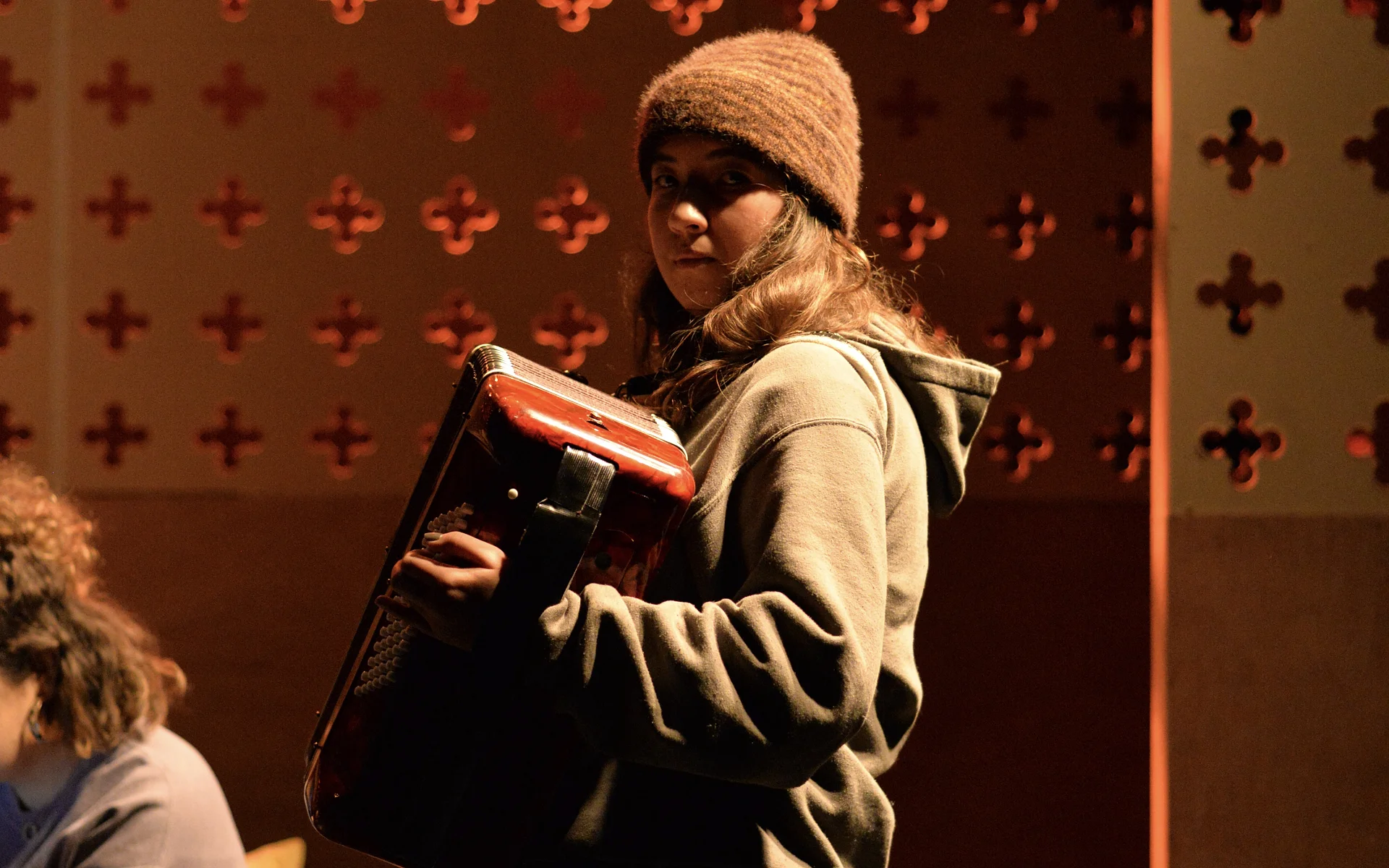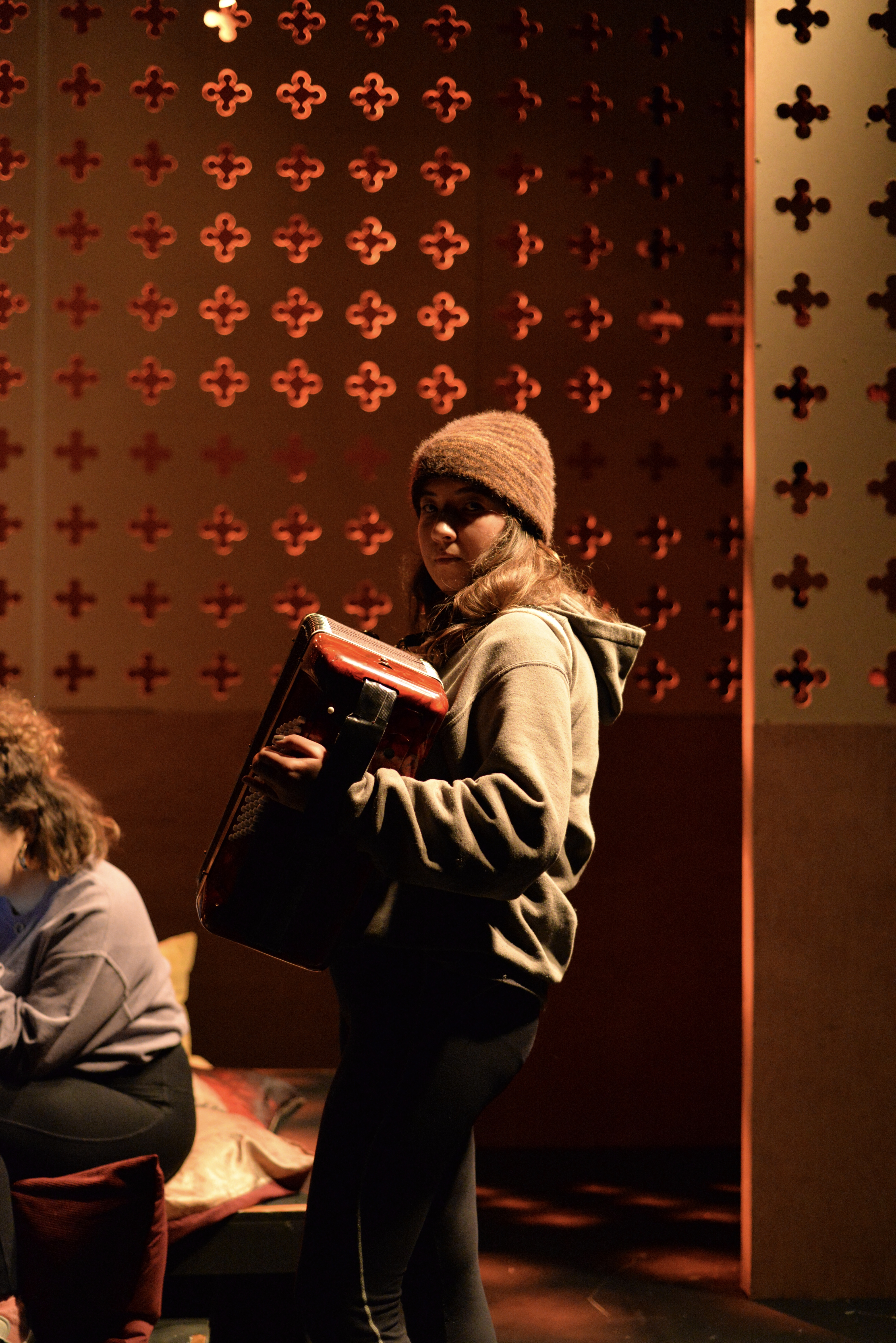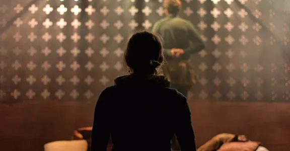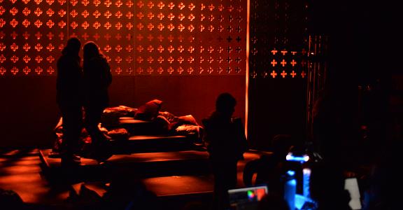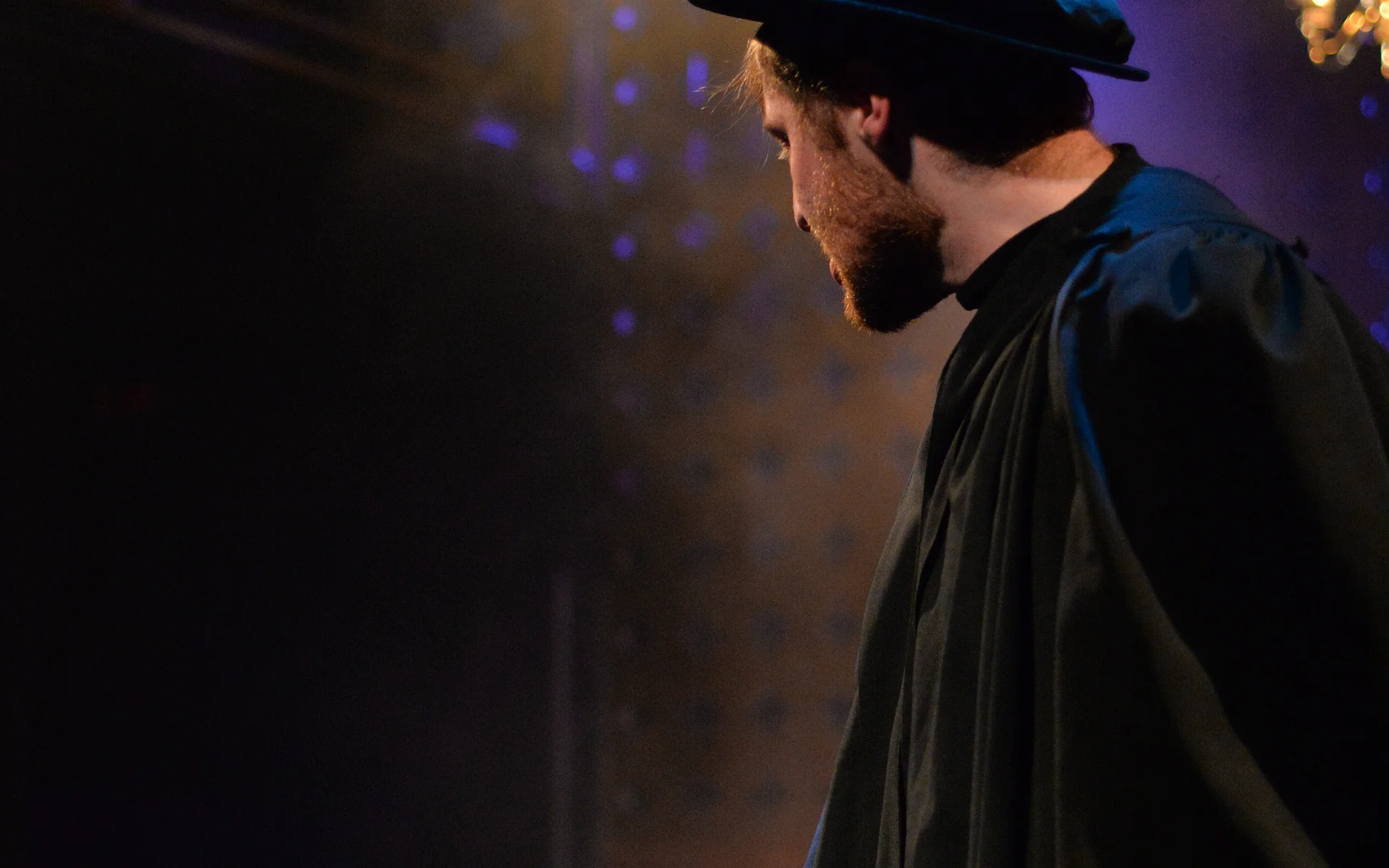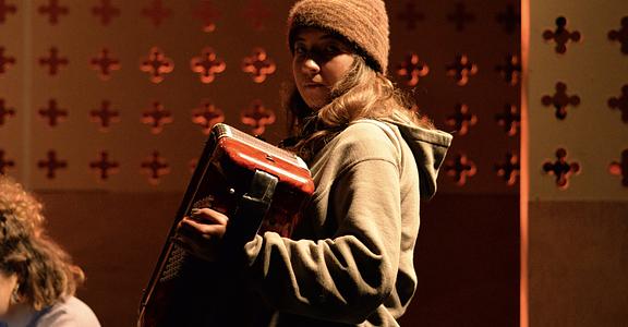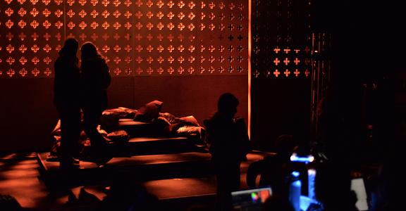 There’s a great sense of inclusion from the start – get there early to borrow a blanket or grab a cup of hot toddy and hang out with the cast as they listen to a few tunes on the fiddle. And the whole thing is played out in front of a backdrop that looks like a Rood screen