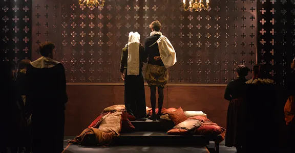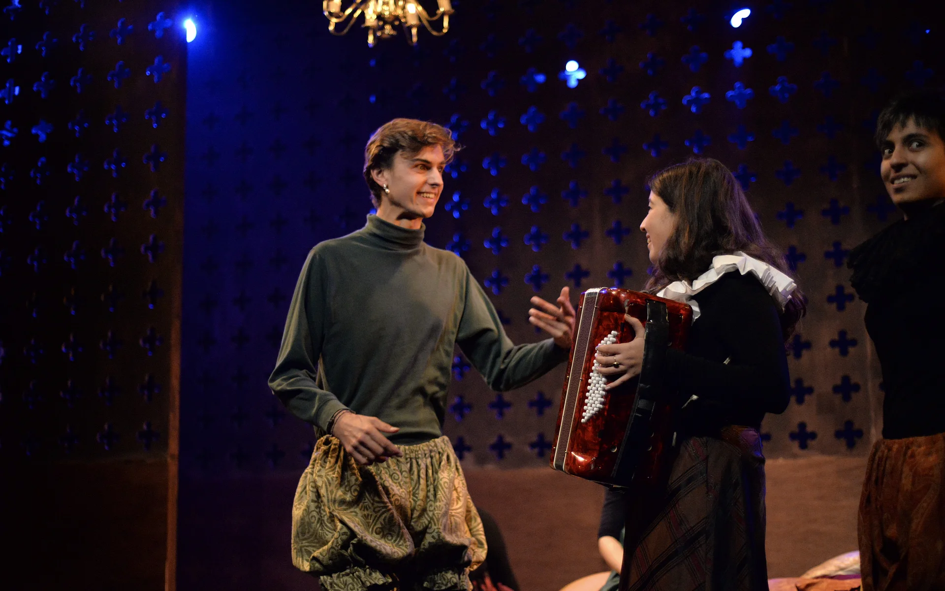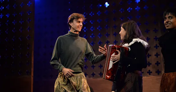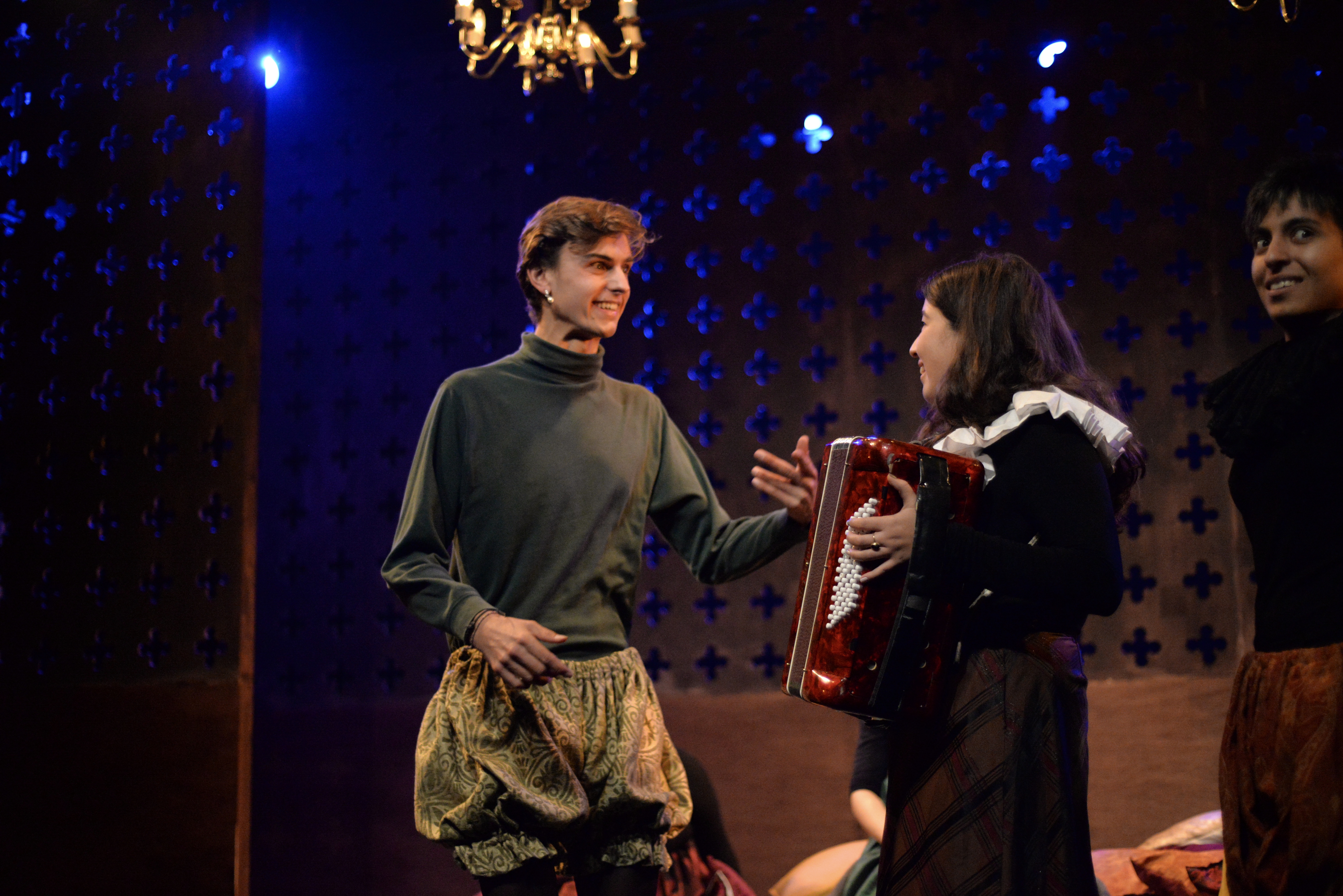 Ally Shilson’s music, performed live by Camilla Makhmudi and Robin Gage, adds a sense of the ceilidh to the show, while Priya Basra, Aude Naudi-Bonnemaison and Bella Charlton provide extra depth – and a pleasing play-within-a-play for the murder of Riccio.