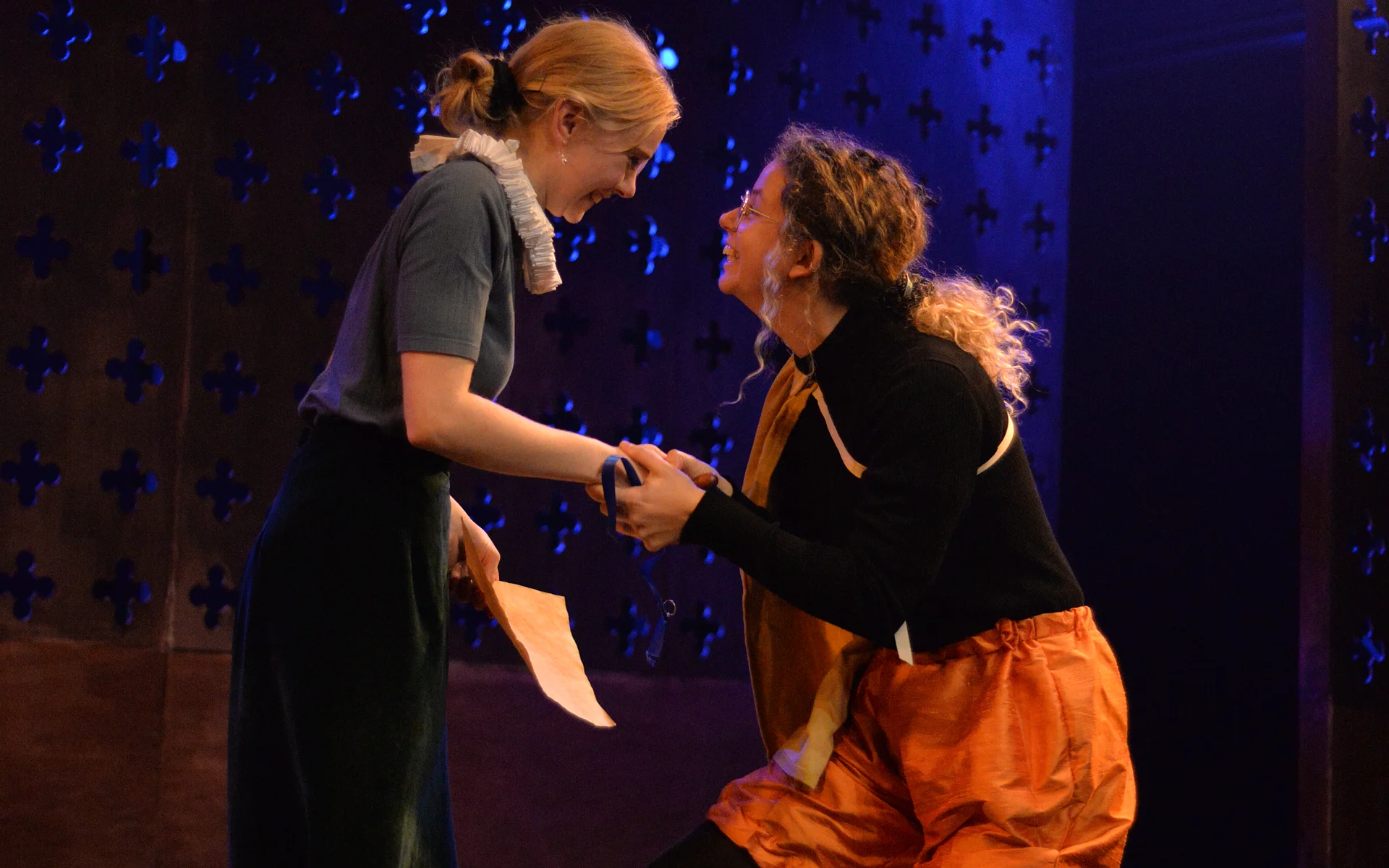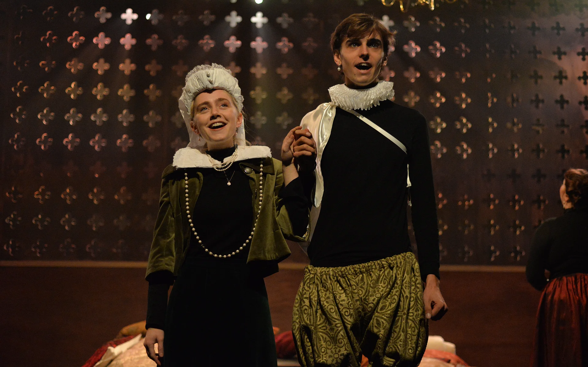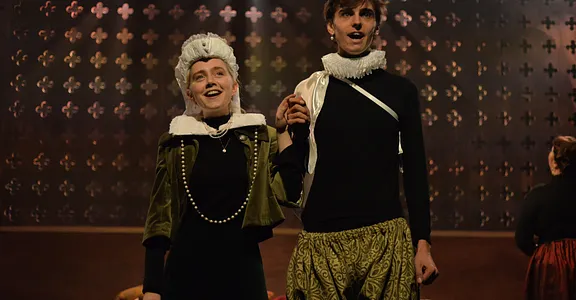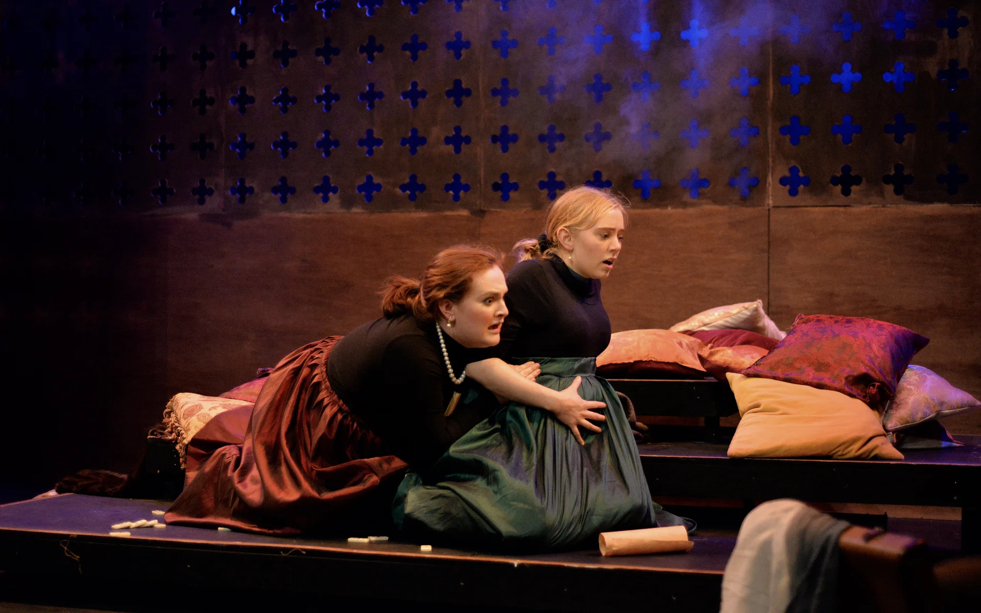 Ally Shilson’s music, performed live by Camilla Makhmudi and Robin Gage, adds a sense of the ceilidh to the show, while Priya Basra, Aude Naudi-Bonnemaison and Bella Charlton provide extra depth – and a pleasing play-within-a-play for the murder of Riccio.