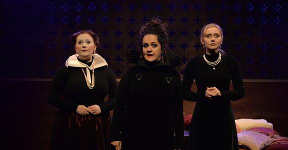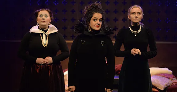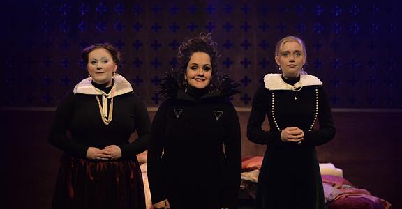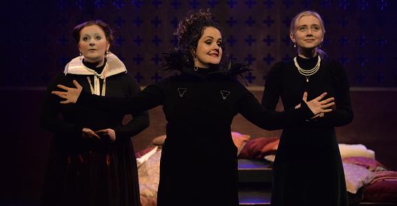 Key to the whole production is Kirsten Millar’s bright Corbie, the crow, commenting with mocking sincerity on the brief passage of the cousins Mary and Elizabeth, queens of the two nations of a divided island.