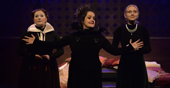 A poetic and passionate retelling of the parallel reigns of Mary Queen of Scots and Elizabeth 1st. Our ambitious production promises joy and tragedy; monumental history embellished with playful wit, poetry, music and food to tell the story of these two formidable Queens.