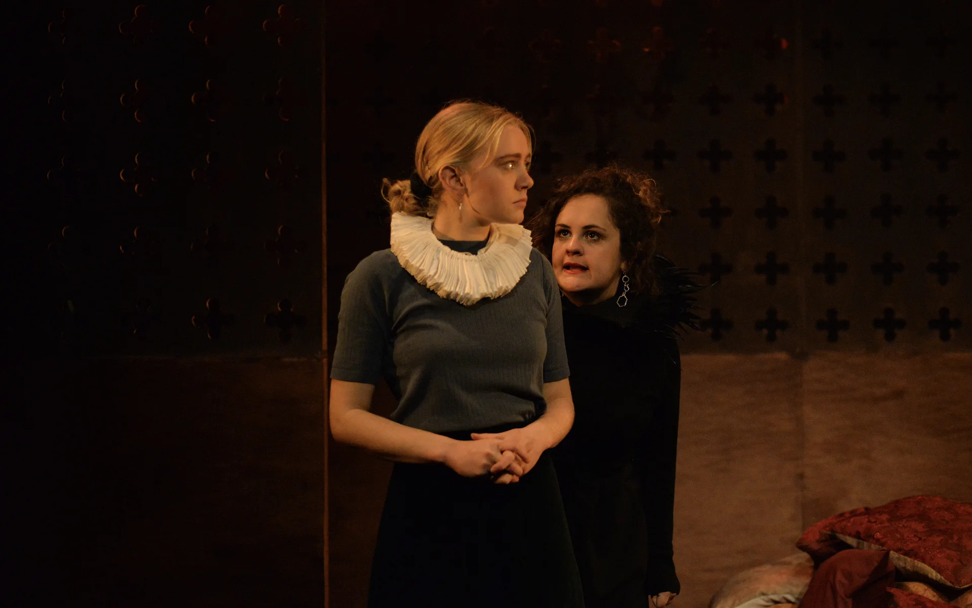Both Lambie and Northridge also play the role of each other’s trusted maid-servant, which they succeed in doing seamlessly thanks to a neat trick with easily removable collars. In reality the cousins never met, but Lochhead’s doubling allows their ideas to be much closer in their conflict.