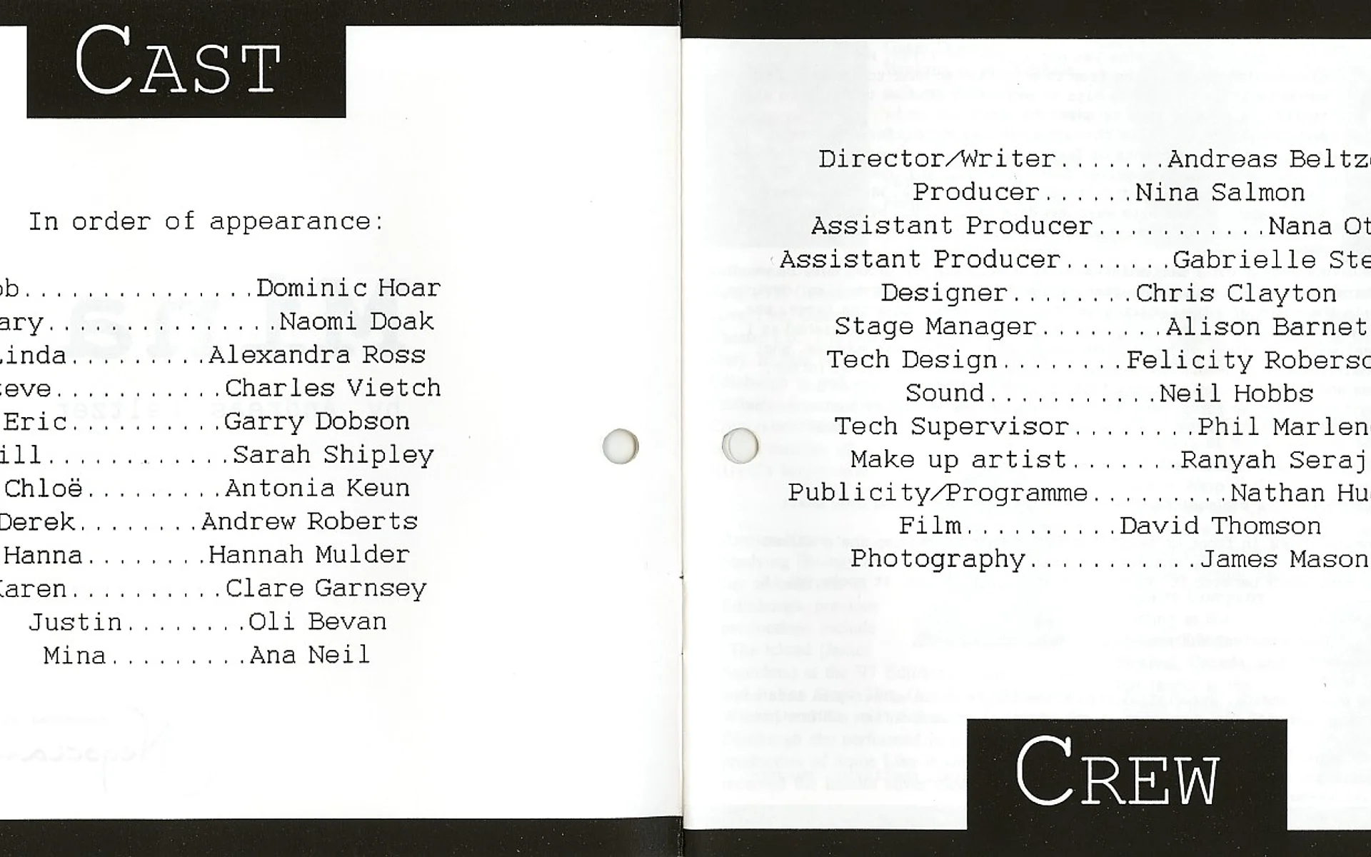 Publicity/Programme Nathan Hughes
