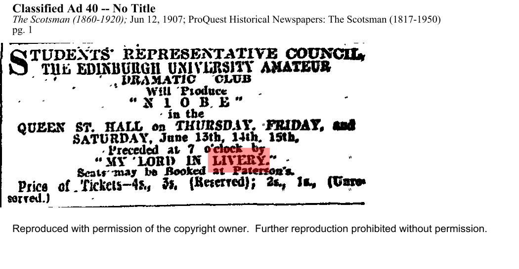 Preceded by 'My Lord in Livery'