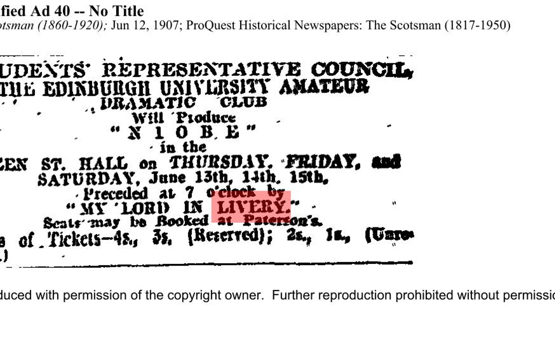 This show finished on Saturday 15 June 1907, and this page is being kept for archival purposes only.