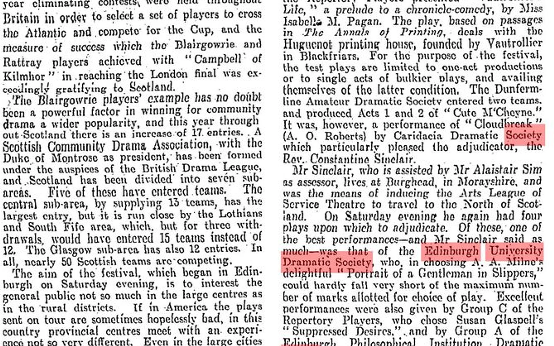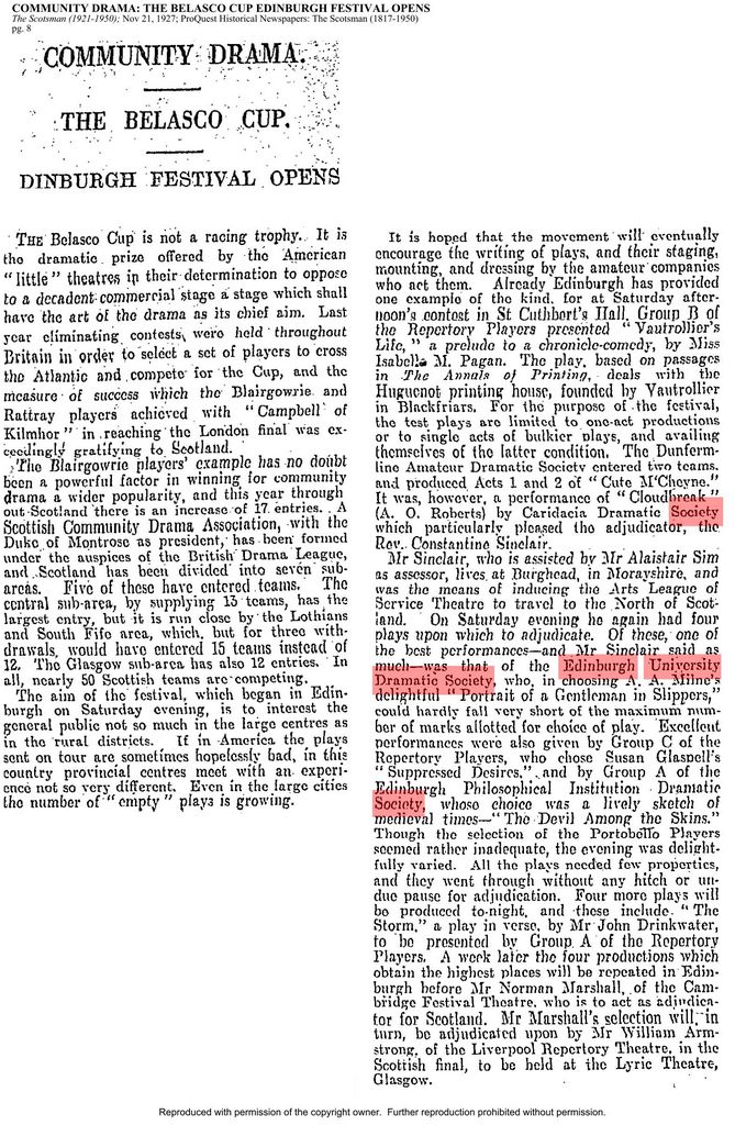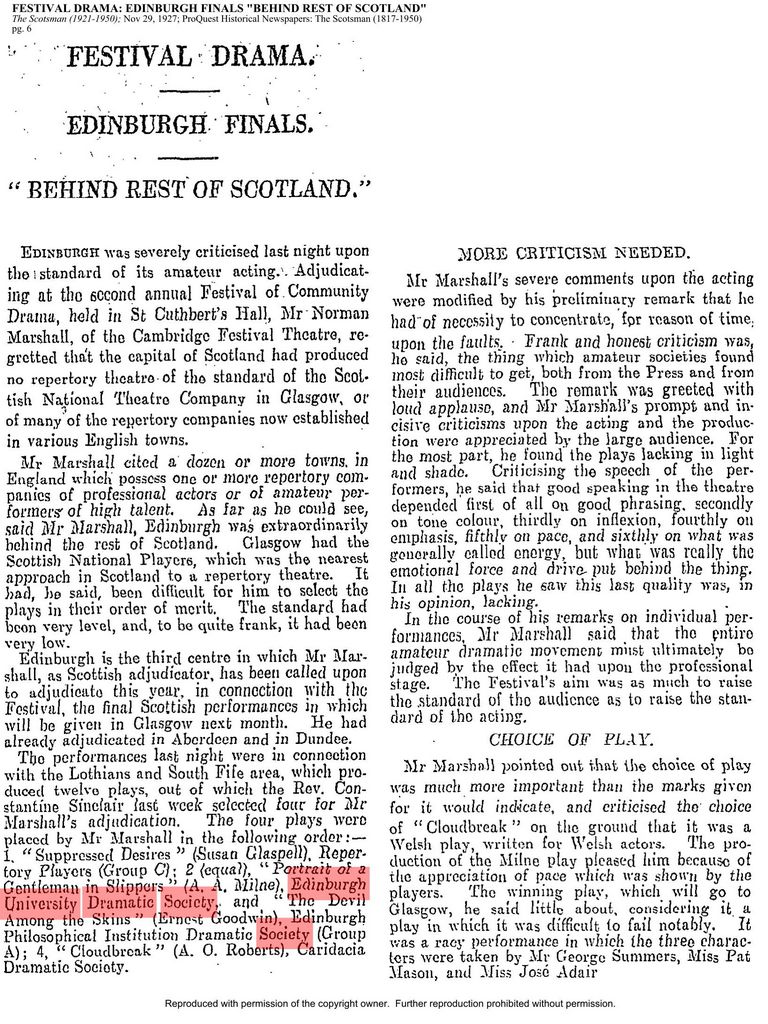 This show was our SCDA Festival submission in 1927, performed in St Cuthbert’s Hall.