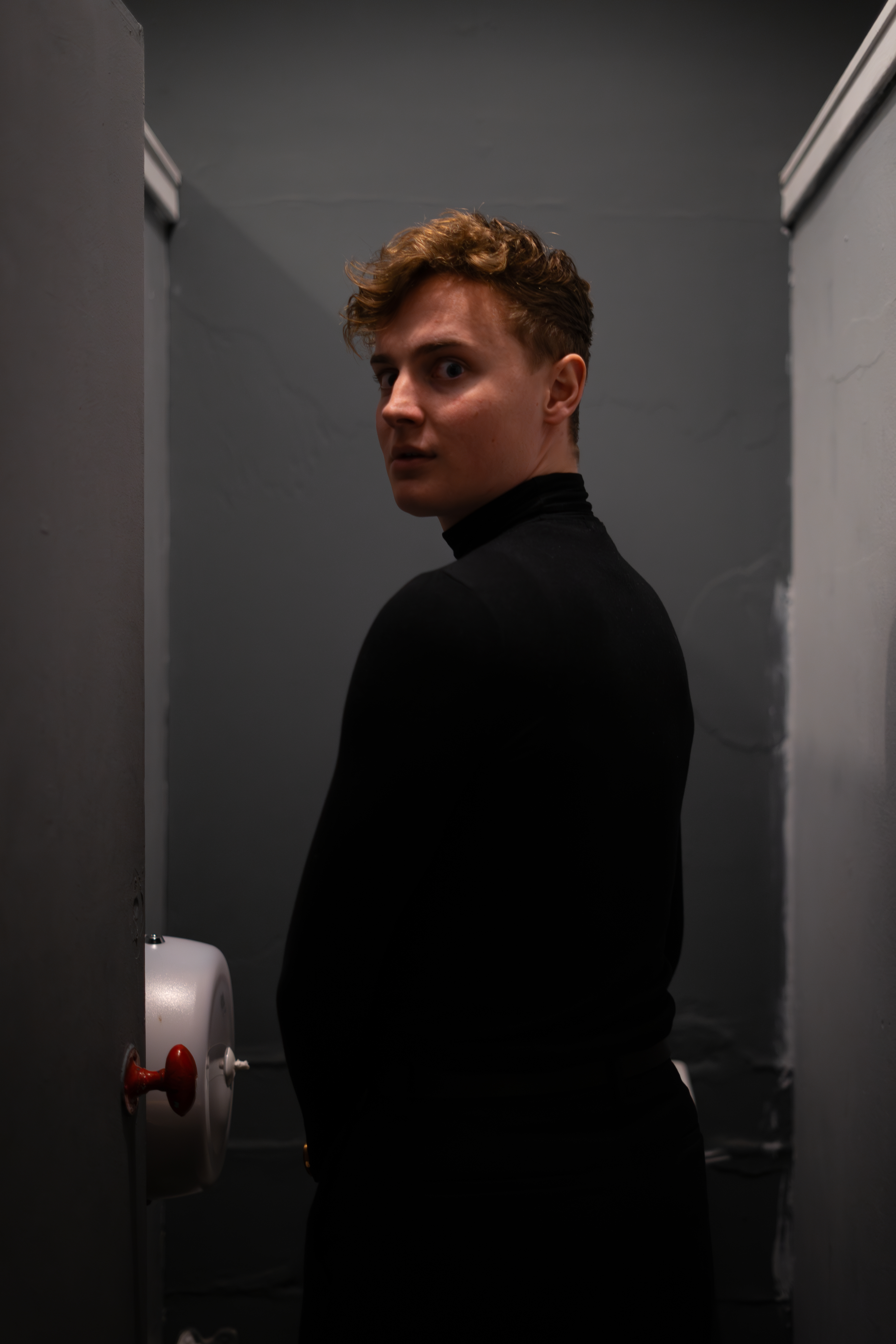 Slash is a stylised pressure cooker black comedy that draws upon the tropes of dark academia, murder mysteries, horror and highschool movies, to explore themes of friendship, secrecy, and revenge. The play follows three friends and one stranger, Danny, Tom, Billie and Alex, who find themselves locked into the boys’ toilets at a school reunion. What initially seems like an amusing coincidence quickly turns into something sinister, when the foursome discover the murdered body of another of their school friends, along with a clue to a dark and hidden event from their past. Realising it is no accident that they have all been trapped, the only way to unravel the mystery of the present is to delve into one from their past. As they are forced to dig up things that they had long since tried to bury, tensions rise and lifelong friendships are tested. It might not just be their relationships that do not survive the experience.
