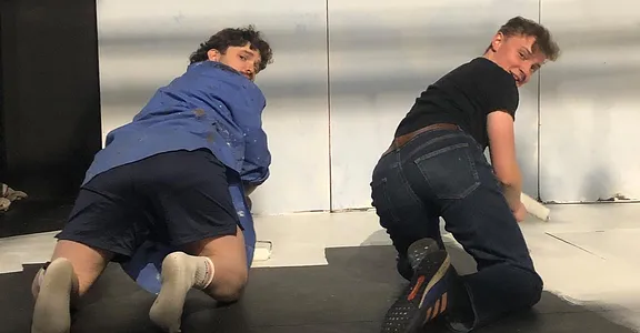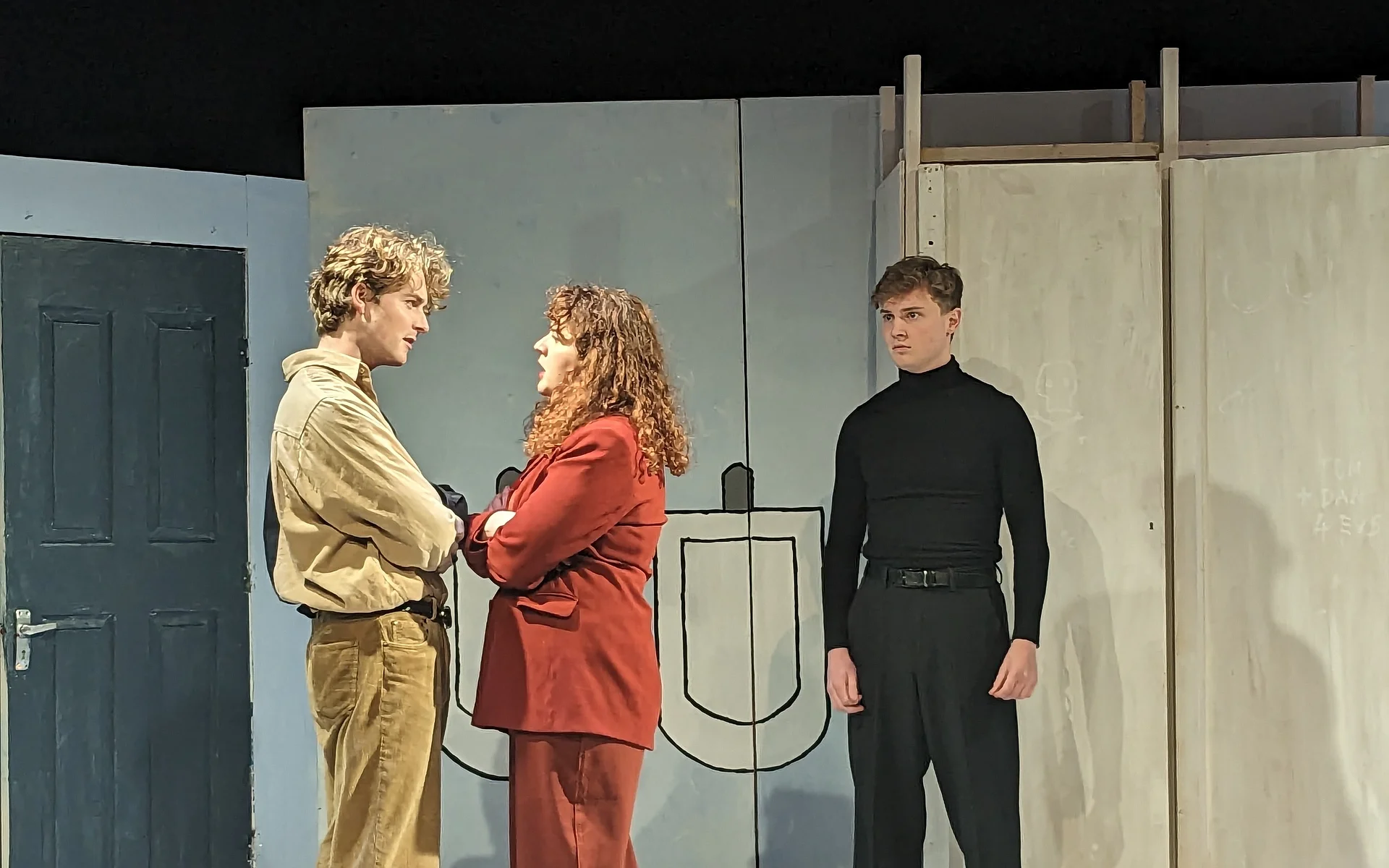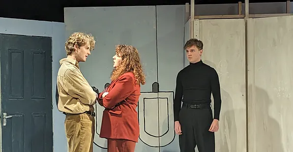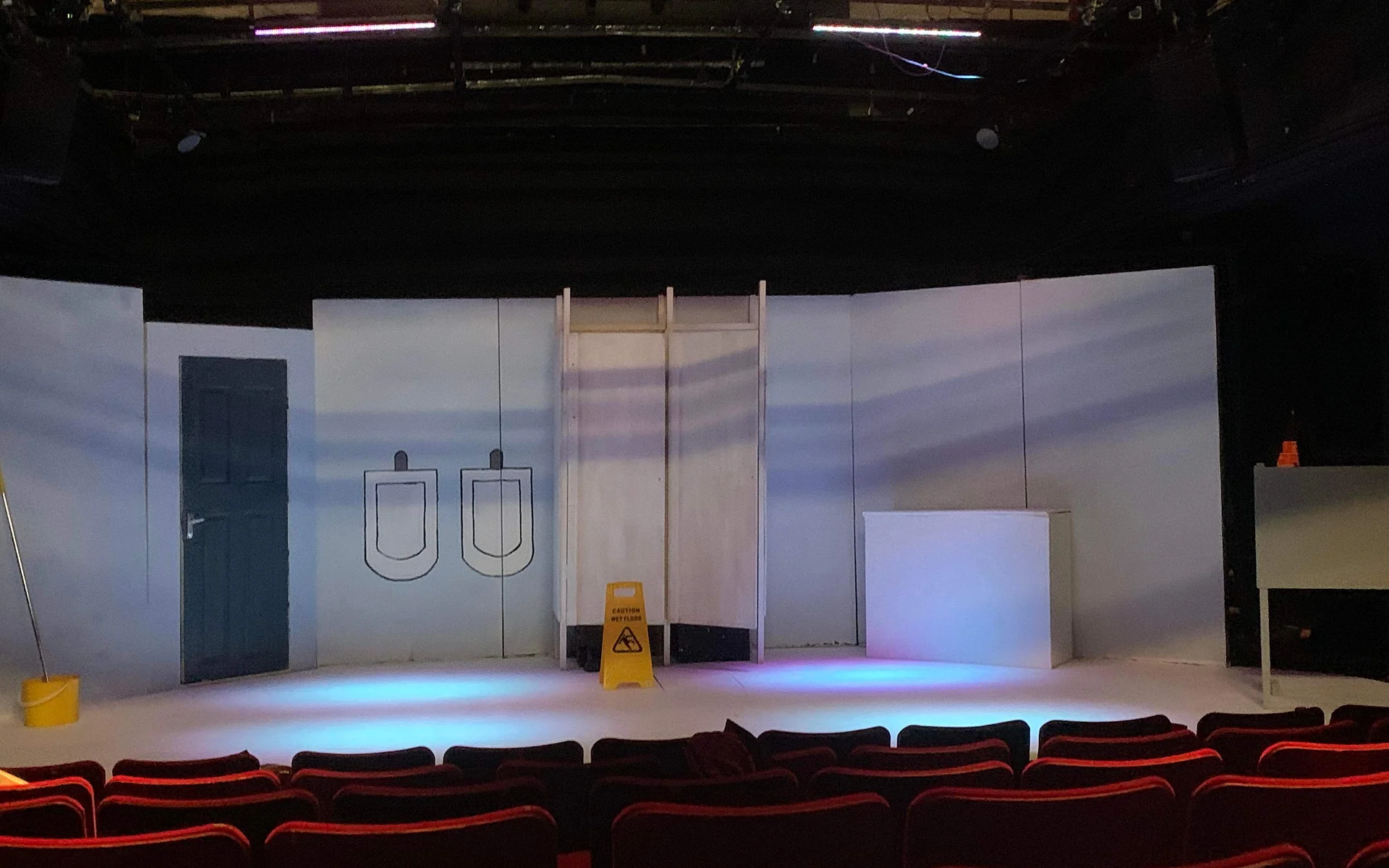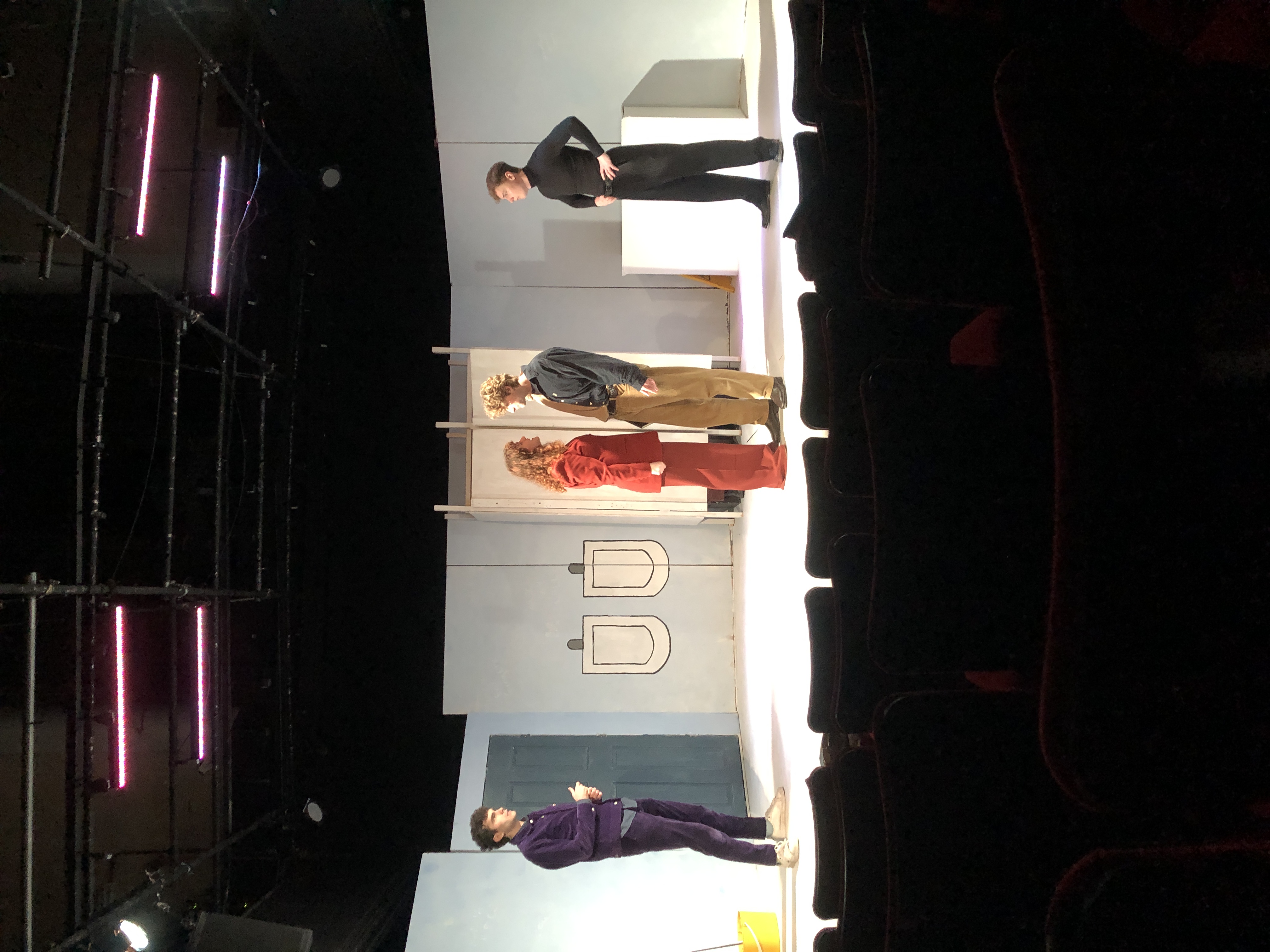 The quippy remarks paint a family portrait gone wild; Danny is the slightly air-headed, abandonment-fearing youngest; Tom is the attention-seeking middle child, and Billie, the oldest, is the pragmatic ringleader. Despite some unsuccessful attempts to add sexual tension between Billie and Tom, there is an anchored dynamic which all three characters seem to exist and grow from. Not forgetting the apparently high, stolid voice of Owen, the fourth, tragic component of the group, locked in the cubicle adjacent to Billie’s. Despite Owen’s impassive groaning, the setting comes to life when all three reminisce, with Maley’s characters’ backstory proving the most surprising, and the most interesting, having used the boy’s bathroom as a means of hiding from her mother, the headmistress, not much is done with this plot point, which is a shame, as it may have proven useful in connecting elements of wider relationships, and plot.