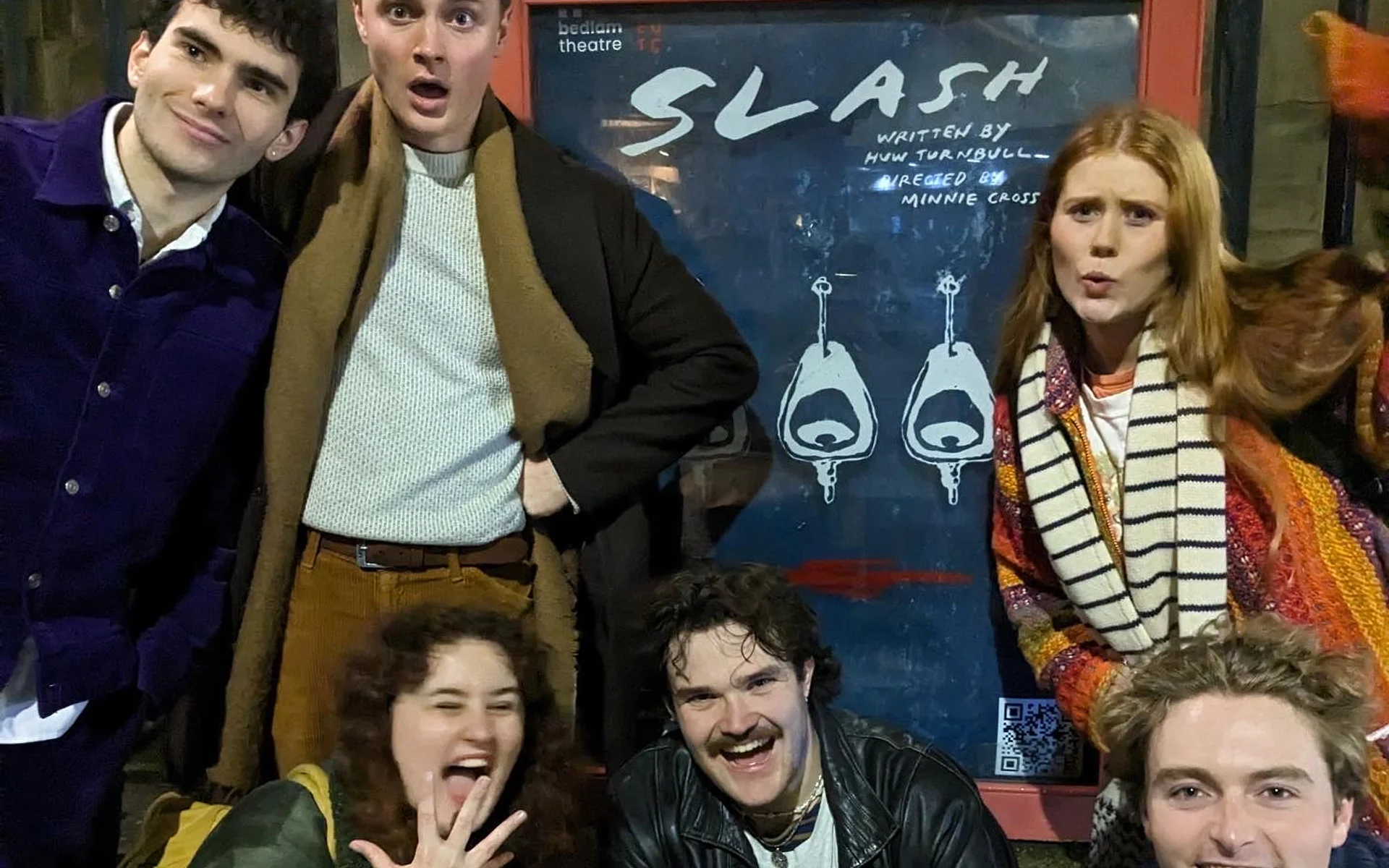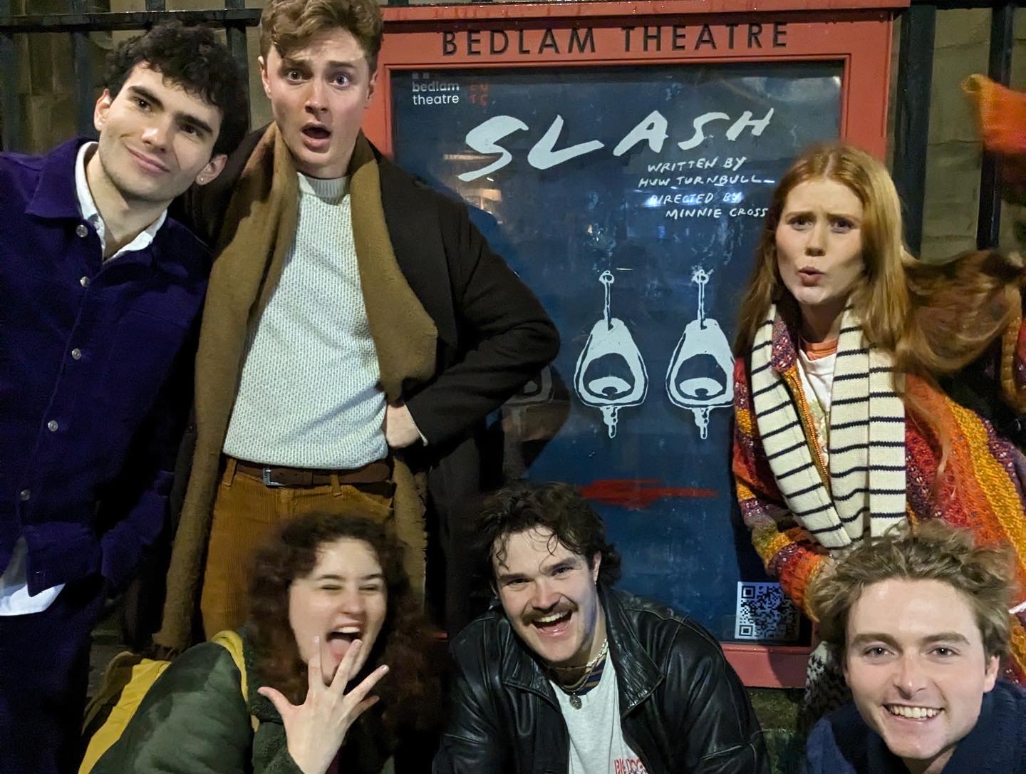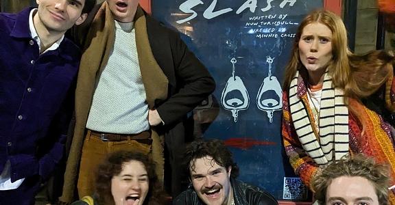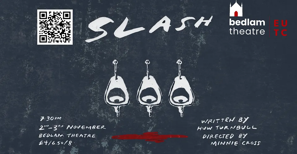 Set in a boy’s bathroom littered with smutty glow-in-the-dark vandalisms, Slash emerges as a play which seeks to reveal the inner etchings of what is locked away, the goings-on behind closed doors. Brilliant in its originality, Turnbull’s writing disentangles to leave a train of questions which, though answered at points in arbitrary and seemingly sensationalist ways, nevertheless, challenge the conversational parameters which a school public toilet tends to lend itself to. Blending relationships reminiscent of Donna Tartt’s Secret History, a sense of Pinteresque claustrophobia, directed meticulously by Minnie Cross, and acting modelled off figures like Natasha Lyonne, if there’s anything to be noted about Slash, is its entertainment value.