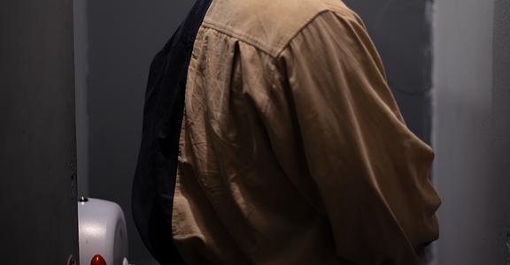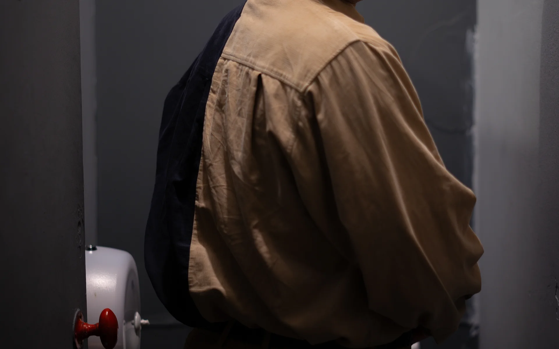 The use of set was key to achieving this dualistic ‘penis politics’ arena; in a play built between urinals, Tom, Danny and Alex, as expected, urinate at different points of the play in humorously characteristic, though sometimes provoking, styles. With the aid of a strategically sized board, the act is performed practically full frontal. However, though certainly performed with comedic effect during the opening duologue, wherein Billie’s presence is still withheld, by Alex’s entrance, it is hard to overlook the gender dynamics of the room; Maley’s Billie doesn’t flinch at the supposed sight of Alex’s penis, which, considering his identity as an enigmatic stranger, is surprising. Mitchell pulls down his trousers, in a declarative, peremptory act of exposure, which seems self-indulgent, especially when announcing ‘nothing to see here’.