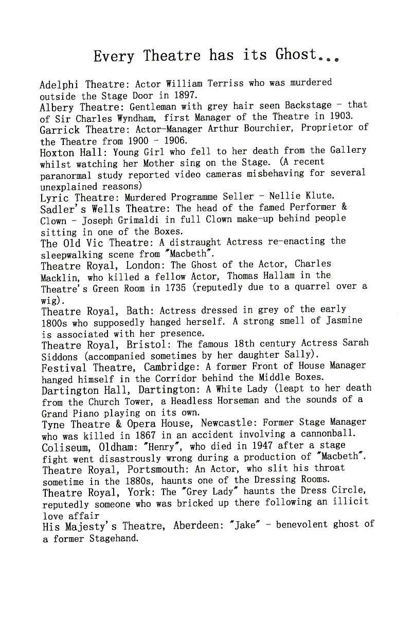 Urban Legends, Ouija boards and things that go bump in the night. A group of unsuspecting teenagers have to spend the night in an abandoned theatre. During the course of the evening, events begin to take a phantom turn. Because, as everybody knows… every theatre has its ghosts…